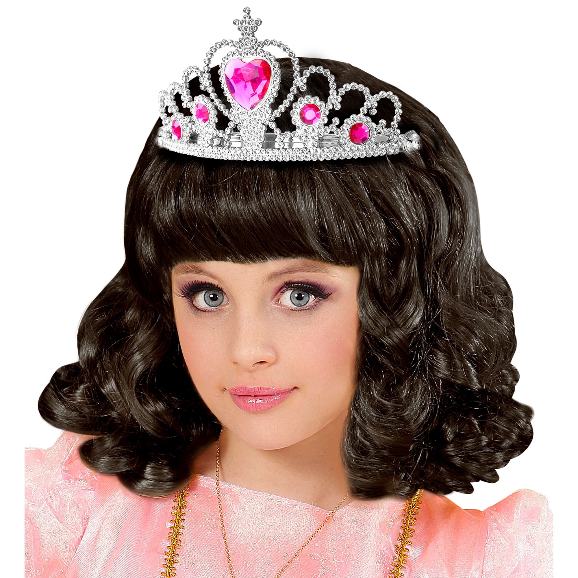 Deze tiara in het zilver is voorzien van roze steentjes.