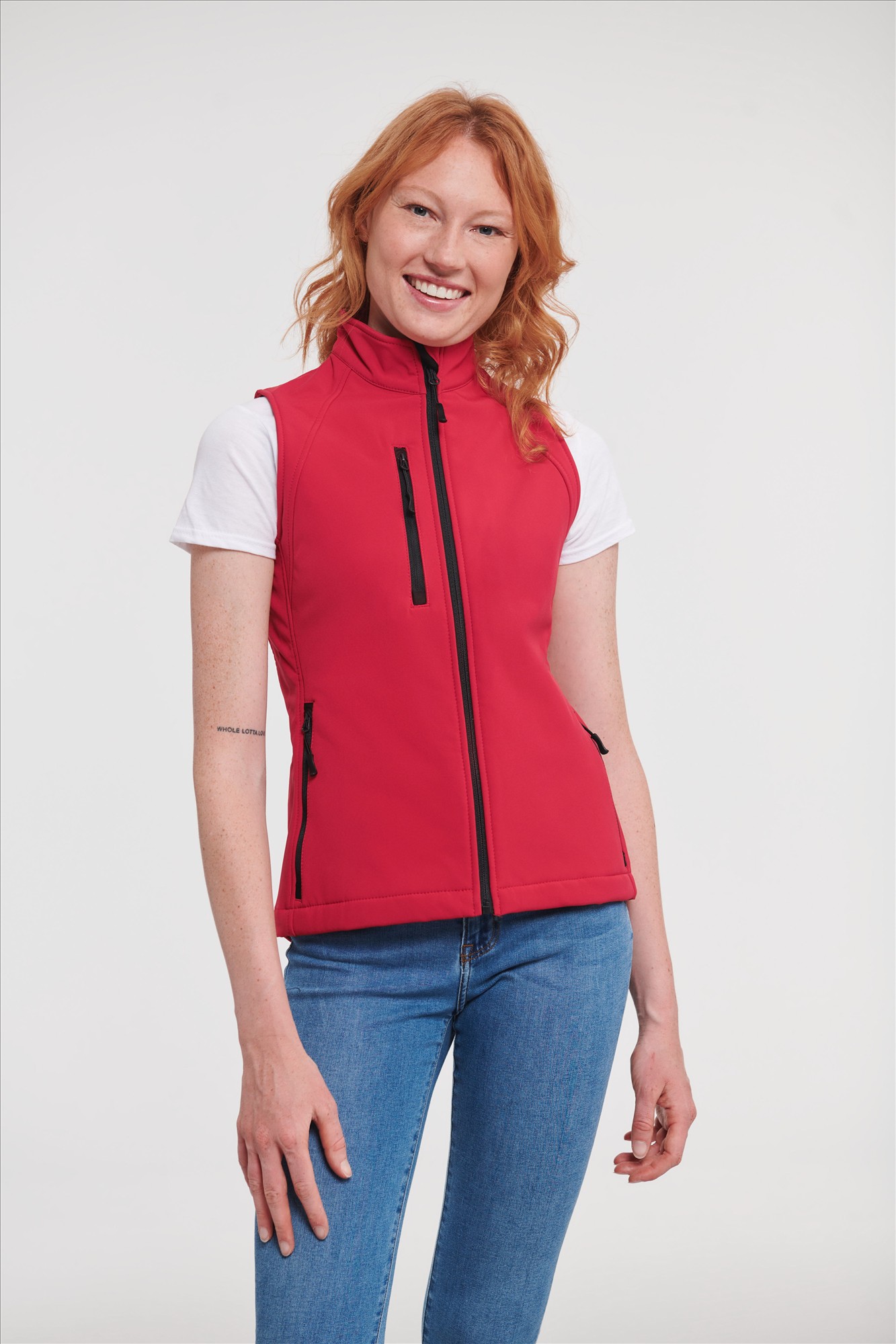Softshell dames gilet donkerblauw, gemaakt van 100% polyester met een voering van microfleece. Het is ademend, winddicht en waterafstotend. Deze trendy dames bodywarmer is ideaal voor dagelijks gebruik en is ontworpen met een stijlvolle, vrouwelijke pasvorm. Het heeft een verlengd achterpand en een kinbeschermer voor extra comfort. Let op: gebruik geen wasverzachter bij het wassen van dit gilet. Materiaal:92% Polyester - 8% Elastane. Land van herkomst:China Dikte: 340 g/m2. Merk: Russel. De foto van het model dient ter illustratie van de sfeer. Gelieve geen aandacht te besteden aan de kleur.