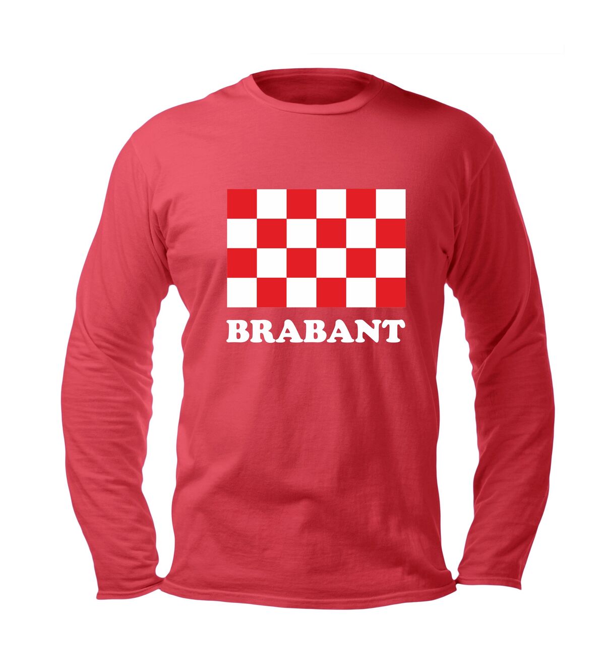 Ben jij trots op Brabant en laat je dat graag zien? Met deze stoere longsleeve met de Brabants vlag draag je jouw liefde voor de mooiste provincie overal uit! Het opvallende design met de rood-witte blokken maakt dit shirt een echte blikvanger en hét perfecte kledingstuk voor iedere trotse Brabander.