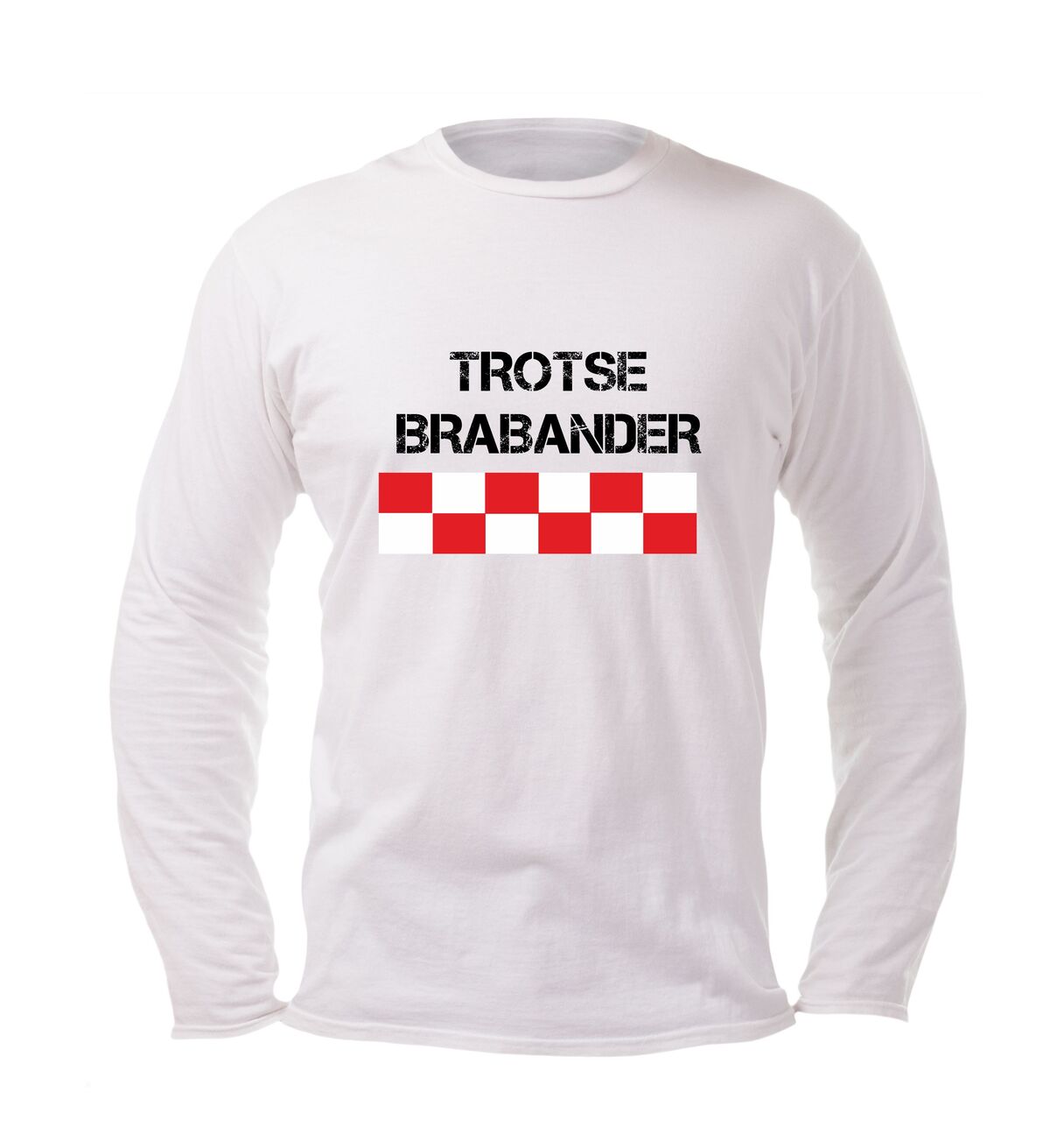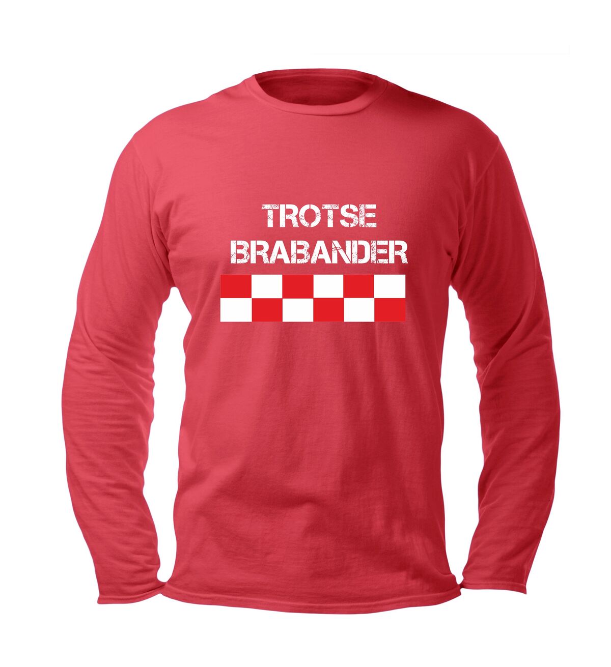 Deze unisex longsleeve met de trotse tekst "TROTSE BRABANDER" en het herkenbare rood-wit geblokte design is een echte must-have voor iedereen die zijn roots met liefde én stijl wil laten zien.