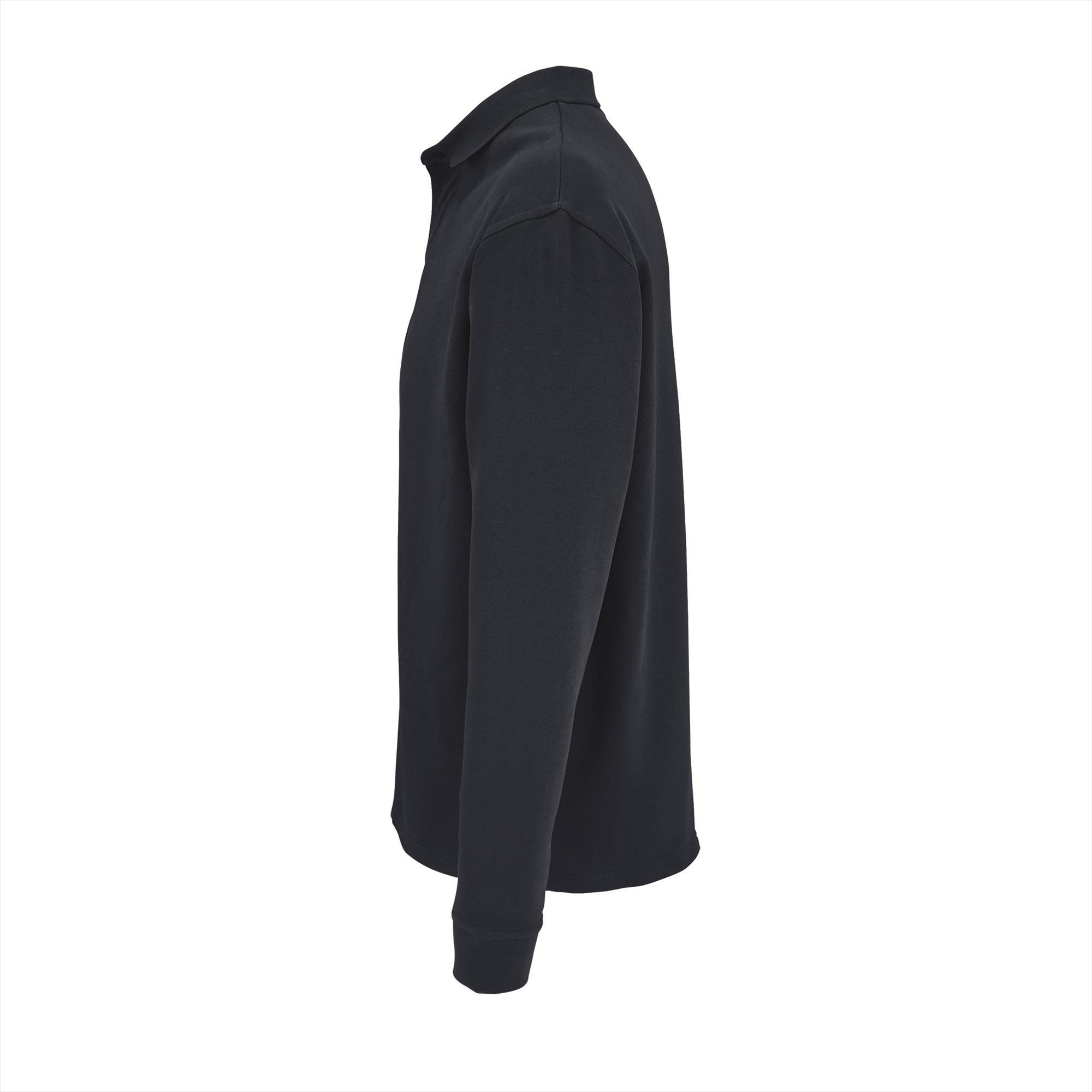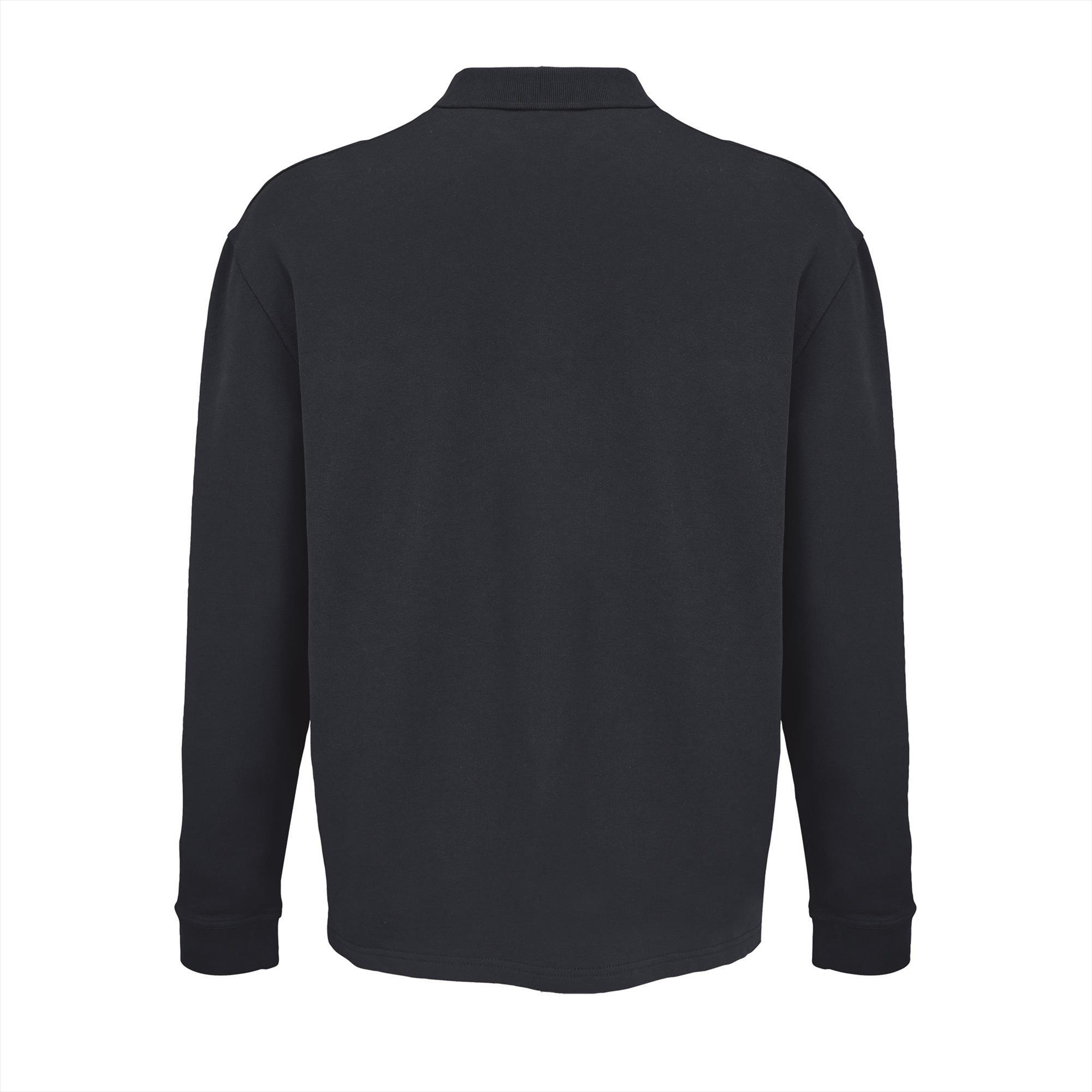 Unisex sweatshirt donkerblauw met polokraag o.a. gemaakt van gerecycled katoen. Merk:SOL'S Heritage. Materiaal:50% Recycled Cotton - 50% Virgin Cotton. Dikte:320 g/m2. Foto met model erop is een sfeer foto kleur buiten beschouwing houden. Land van herkomst:Bangladesh.