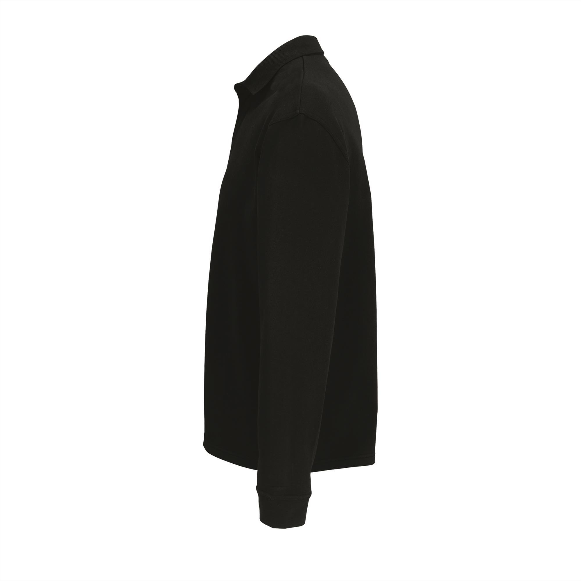 Unisex sweatshirt zwart met polokraag o.a. gemaakt van gerecycled katoen. Merk:SOL'S Heritage. Materiaal:50% Recycled Cotton - 50% Virgin Cotton. Dikte:320 g/m2. Foto met model erop is een sfeer foto kleur buiten beschouwing houden. Land van herkomst:Bangladesh.