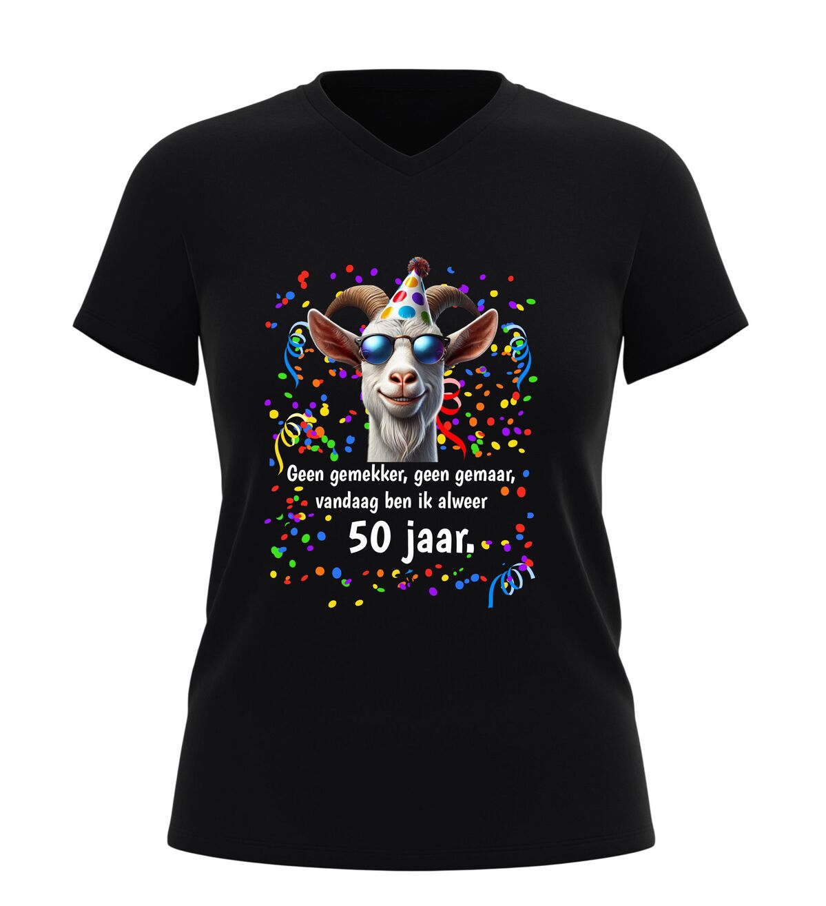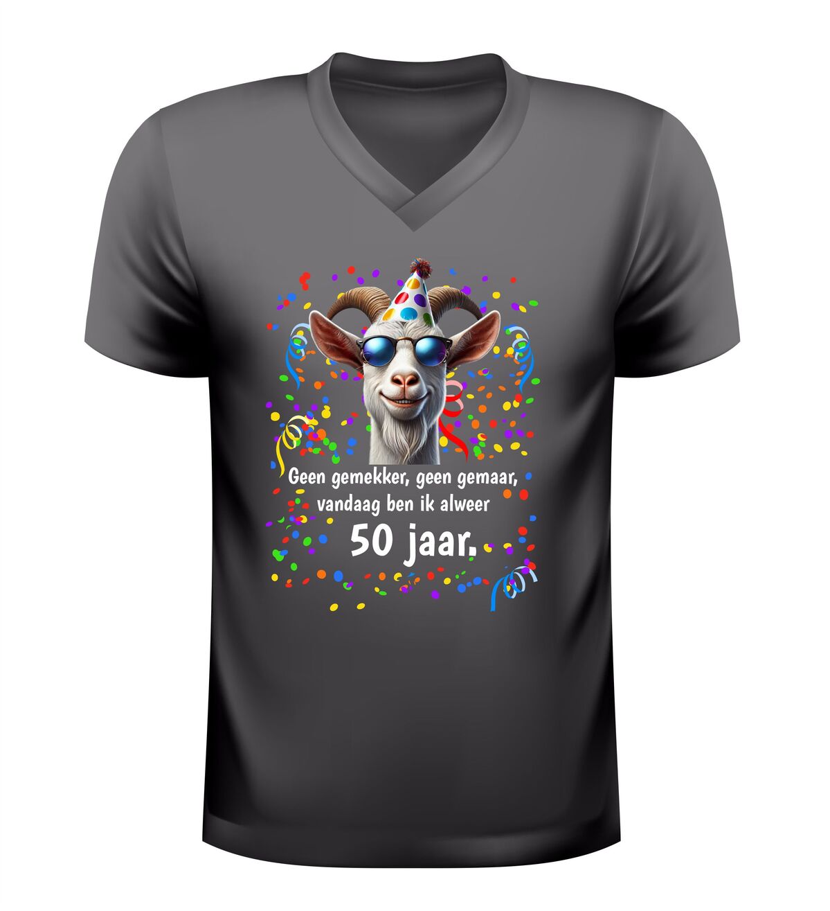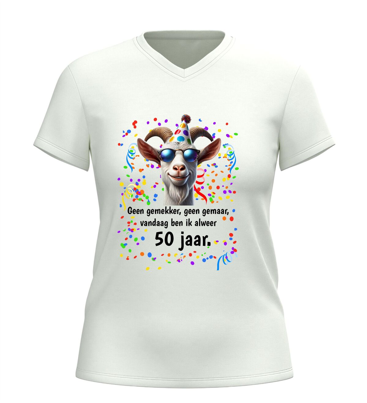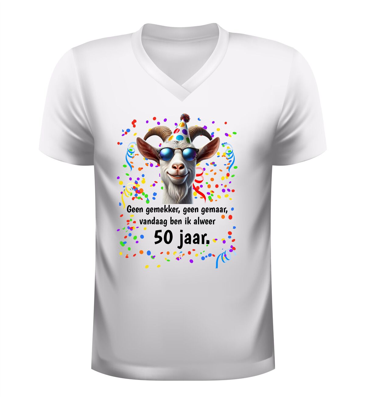 Met dit 50 jaar shirt met geit en grappige tekst vier je Abraham of Sarah zoals het hoort: zonder gemekker, zonder gemaar, maar met een groot feest.