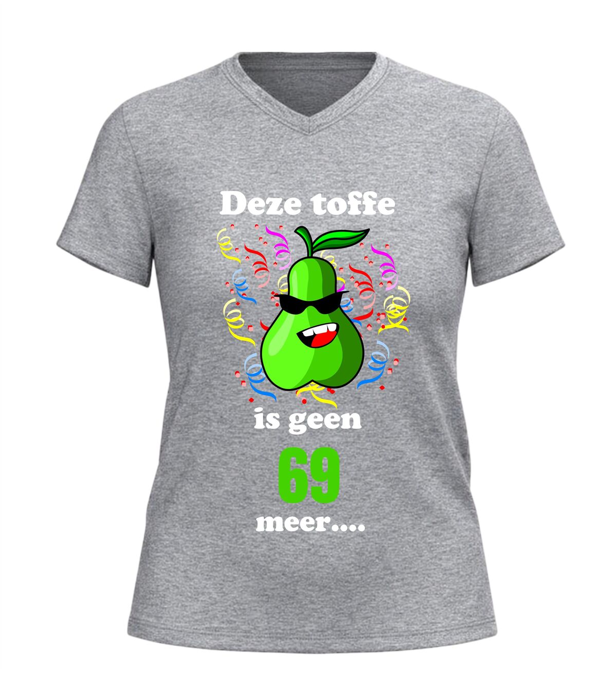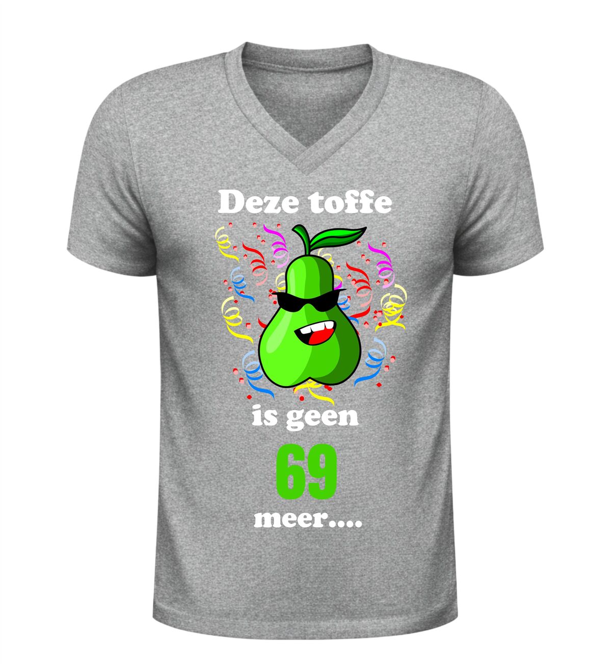 Dit V-hals verjaardagsshirt voor 70 jaar is het perfecte feestitem voor iedereen die deze bijzondere mijlpaal viert met een grote glimlach. De tekst deze toffe peer is geen 69 meer maakt meteen duidelijk waar het feest om draait en zorgt gegarandeerd voor lachende gezichten op elke verjaardag.