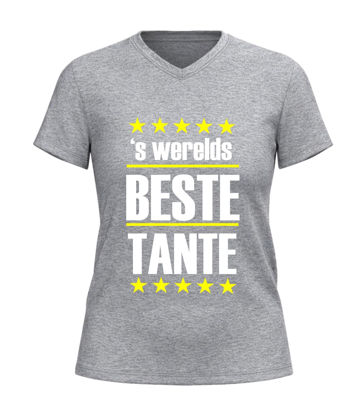 Dit V-hals dames shirt met de tekst ’s werelds beste tante is een liefdevol en stijlvol cadeau voor elke tante die je wilt verrassen. De vrouwelijke V-hals zorgt voor een mooie pasvorm en maakt het shirt comfortabel om zowel dagelijks als bij speciale momenten te dragen. De tijdloze en positieve boodschap laat direct zien hoe bijzonder zij is en zorgt elke keer opnieuw voor een glimlach. Of het nu gaat om een verjaardag, Moederdag, een kraamcadeau of gewoon zomaar, dit shirt is een perfect gebaar van waardering. Ideaal voor wie zoekt naar een origineel dames T-shirt voor tante, een persoonlijk cadeau voor tante, of een comfortabel shirt met een warme boodschap dat altijd in de smaak valt.