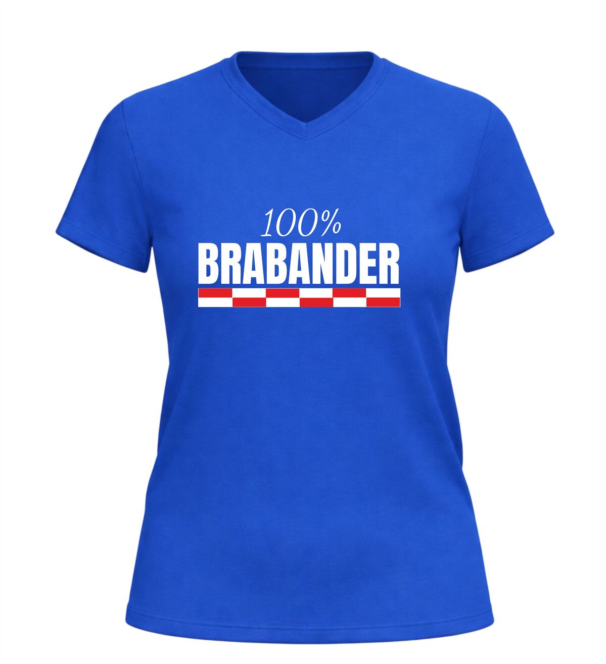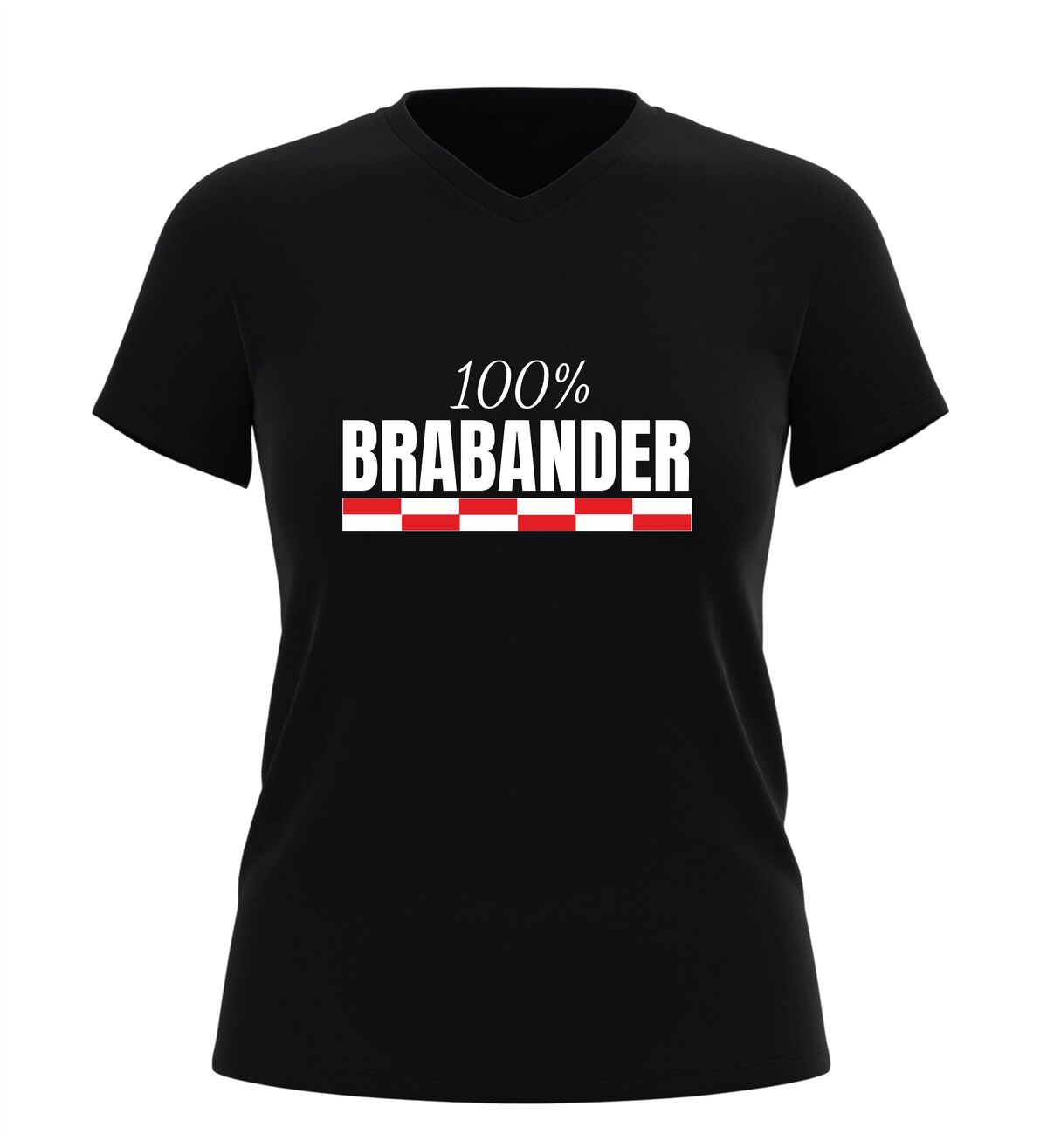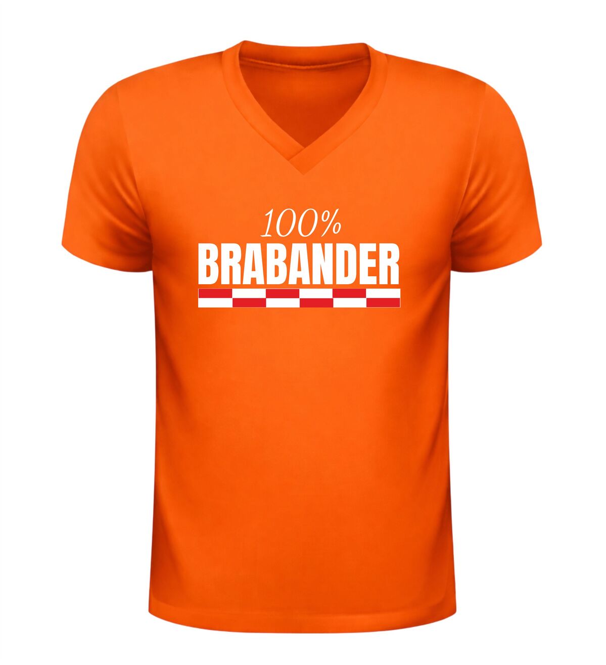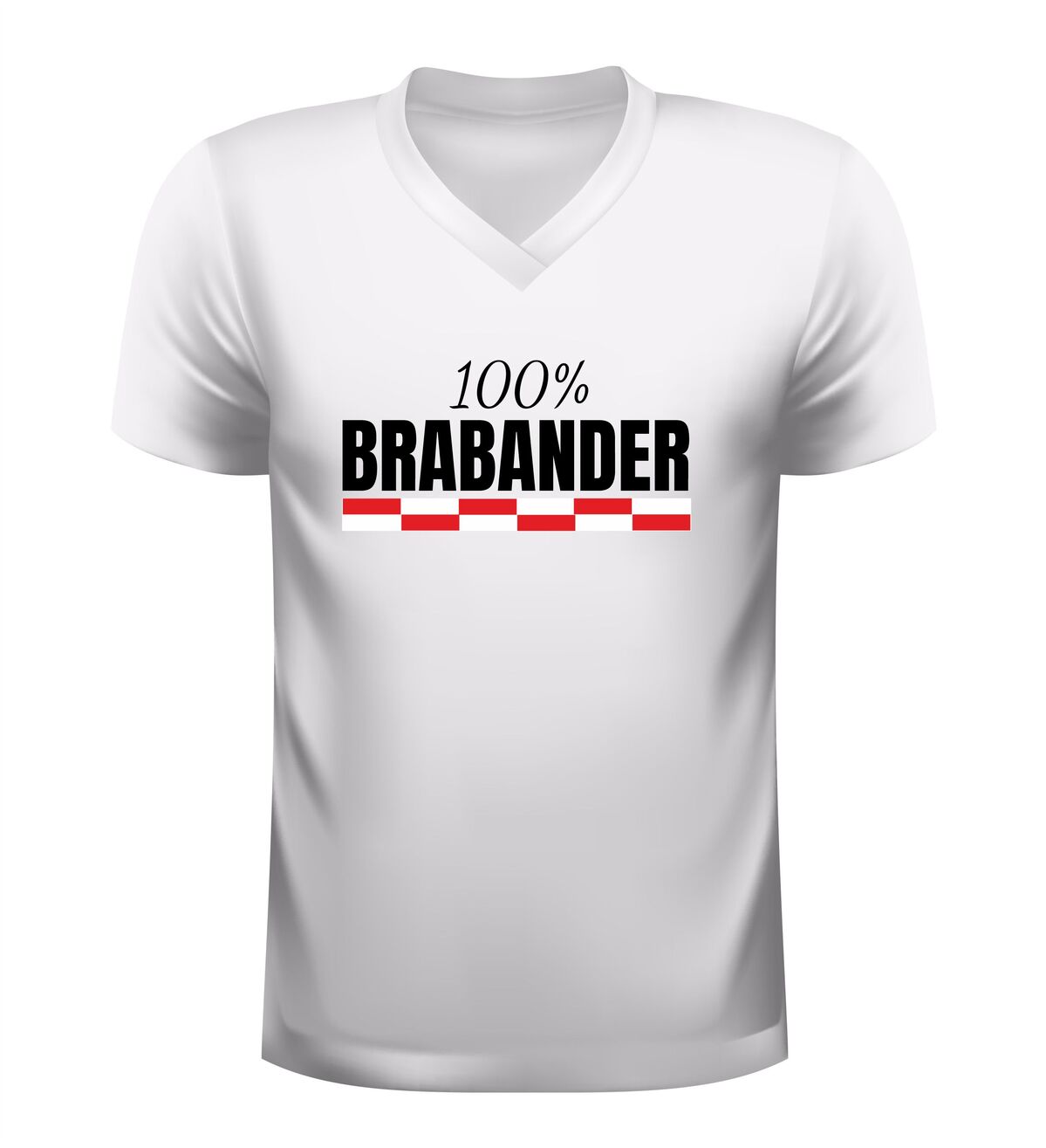 Dit V-hals shirt met de tekst 100% Brabander is gemaakt voor iedereen die met trots laat zien dat hij of zij een echte Brabander is. Brabanders staan bekend om hun gezelligheid, gastvrijheid en levenslust, en dit Brabant shirt brengt die Brabantse trots perfect tot uiting. Het rood-wit geblokte vlak in de kleuren van Brabant zorgt voor een herkenbaar en krachtig ontwerp dat direct duidelijk maakt waar jouw hart ligt. Met dit shirt draag je Brabant niet alleen in je hart, maar ook zichtbaar op je borst.