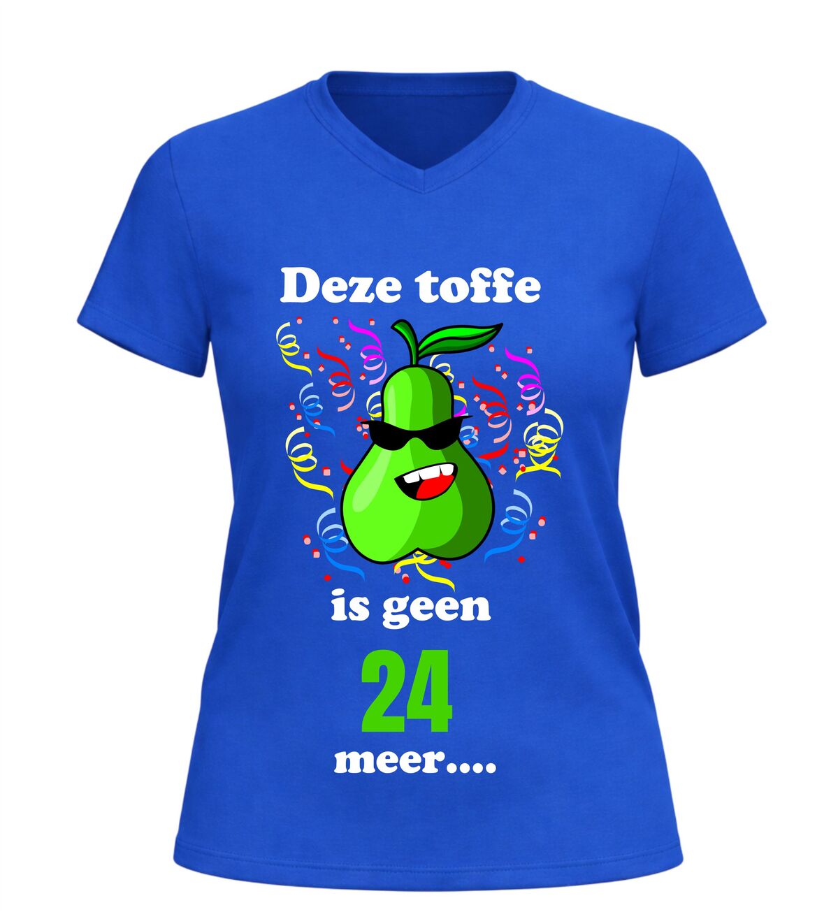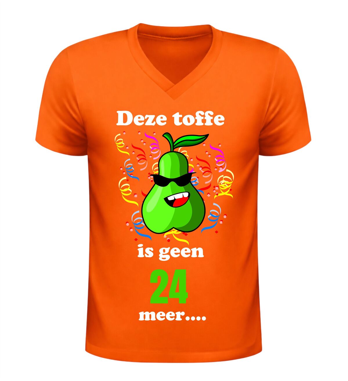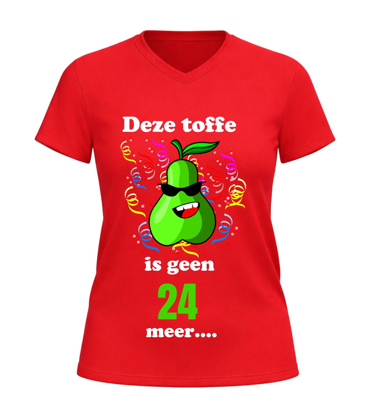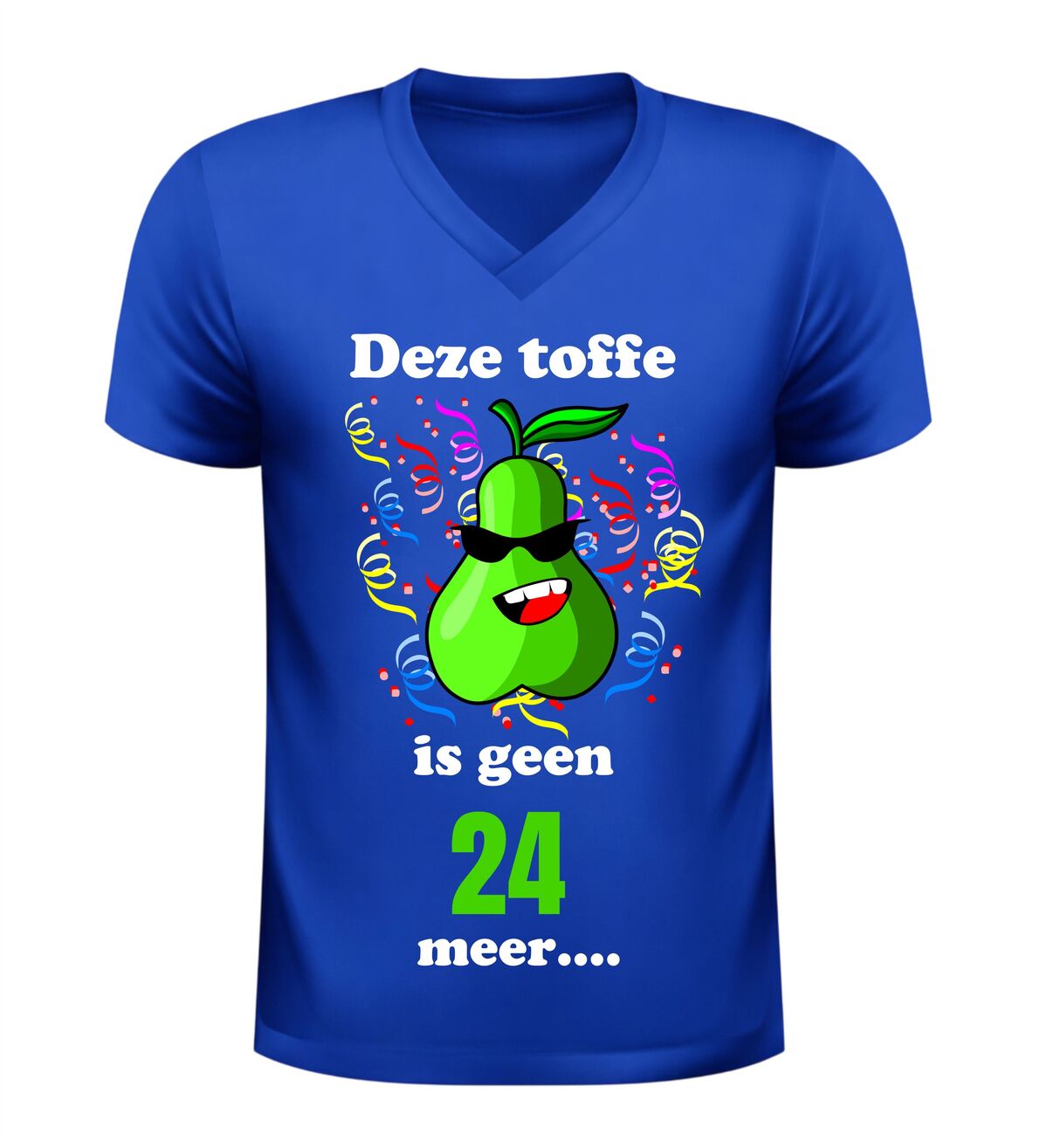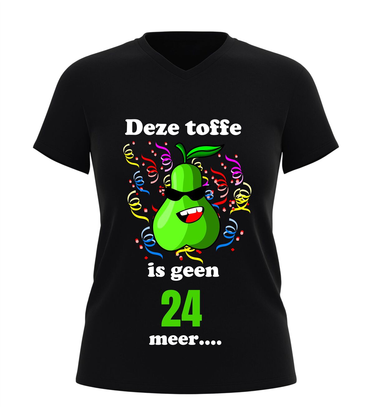 Maak van de 25ste verjaardag een feest om nooit te vergeten met dit grappige V-hals shirt met de tekst Deze toffe peer is geen 24 jaar meer. Dit originele 25 jaar verjaardag shirt is perfect voor iedereen die deze mijlpaal met humor wil vieren. De speelse woordgrap en het feestelijke karakter maken dit T-shirt een echte blikvanger tijdens ieder verjaardagsfeest.