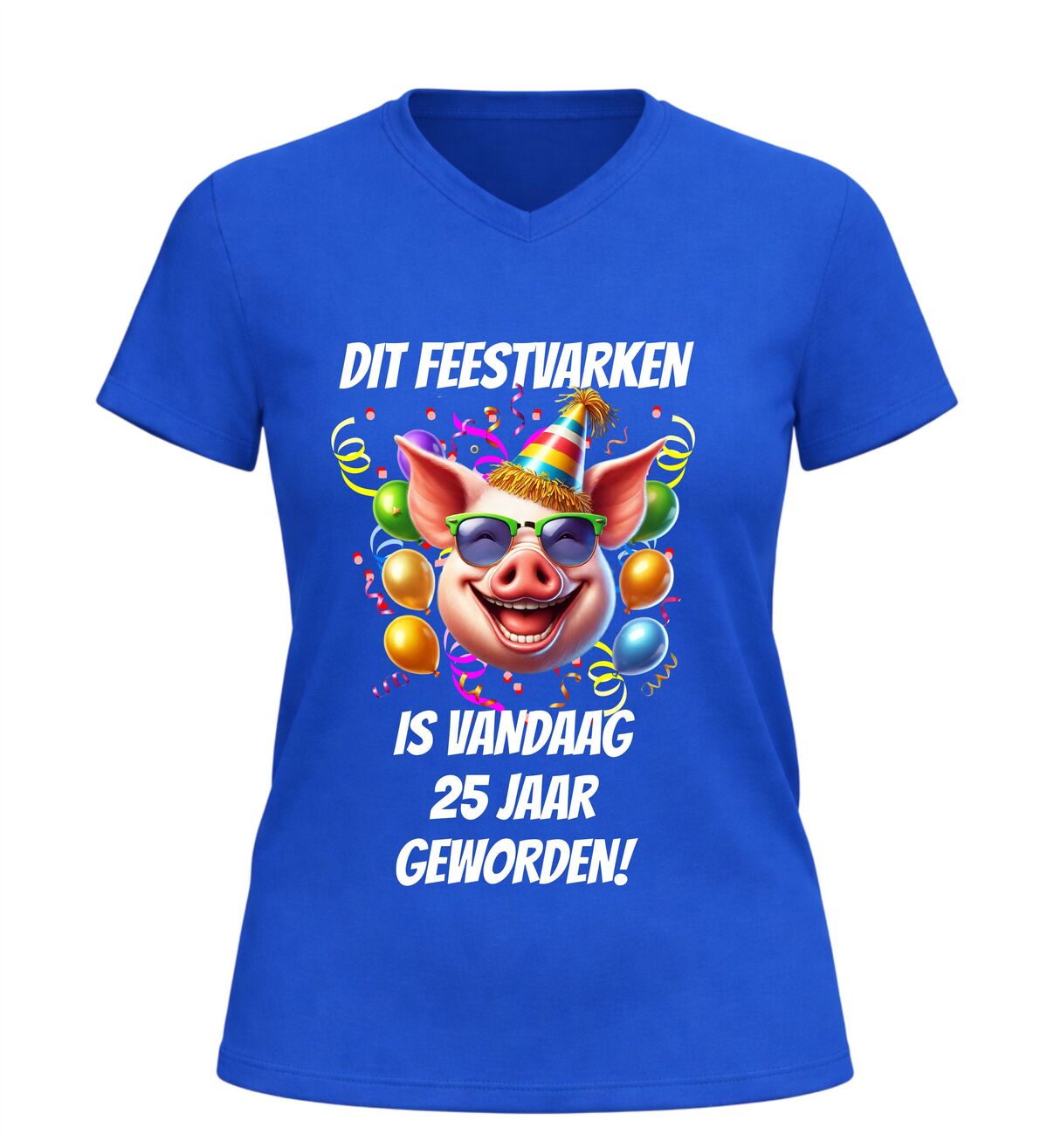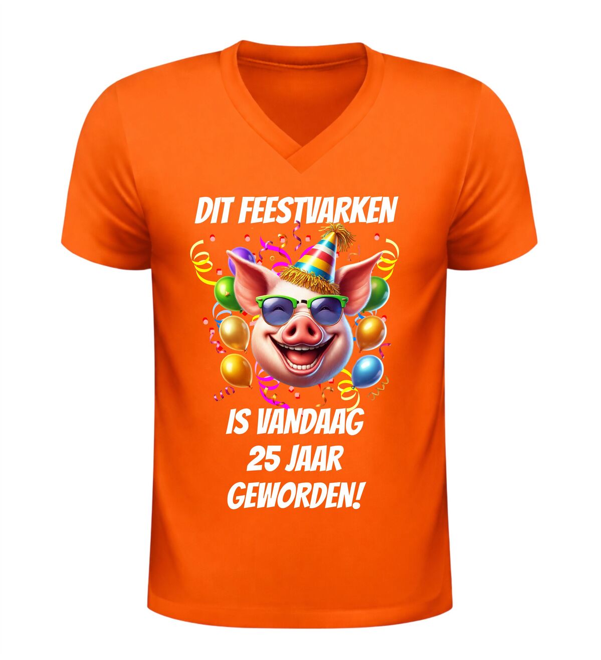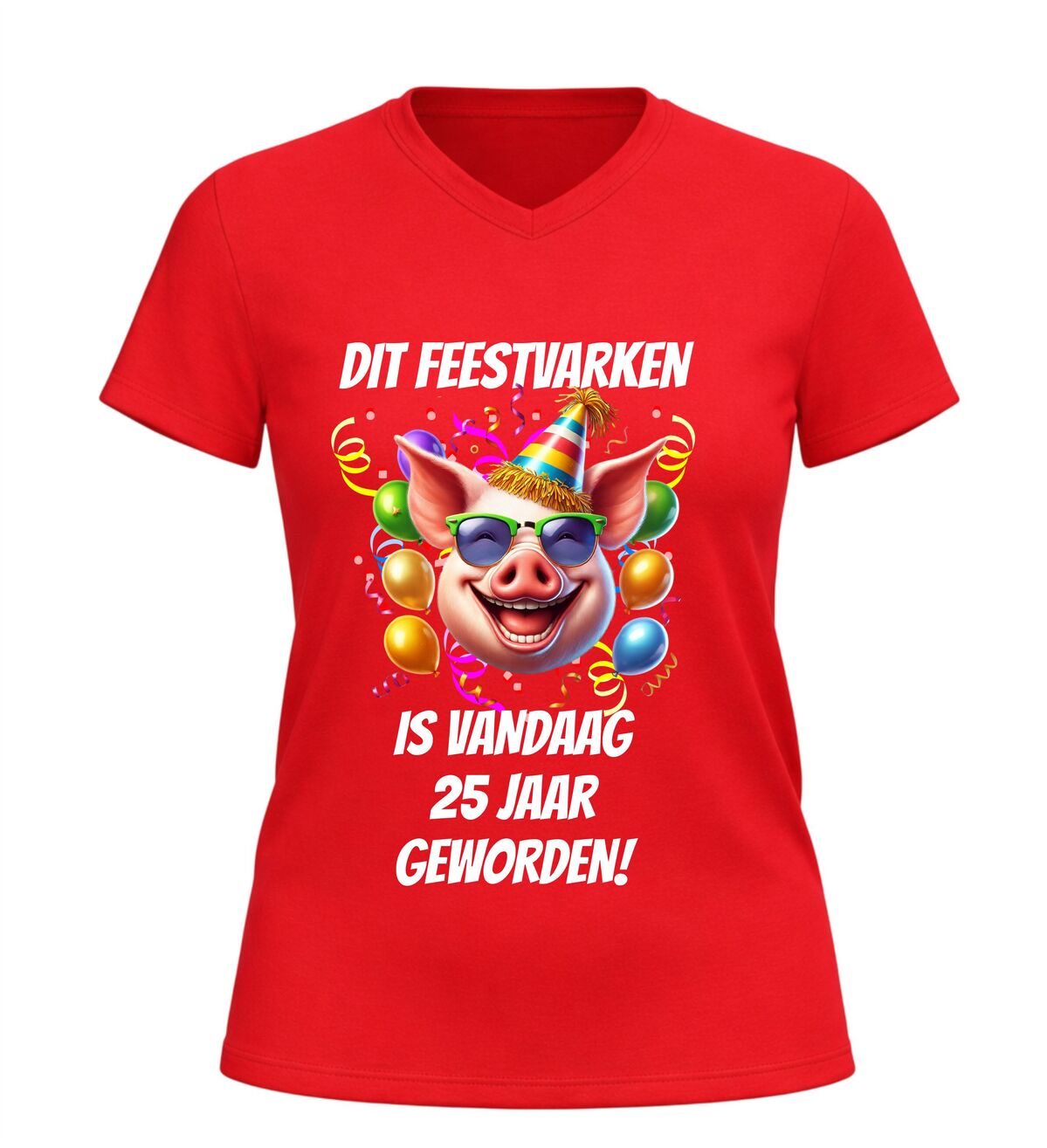 Vier een bijzondere mijlpaal met dit grappige V-hals shirt met de tekst dit feestvarken is vandaag 25 jaar geworden. Dit originele 25e verjaardag T-shirt is perfect voor iedereen die zijn of haar 25e verjaardag groots wil vieren. De humoristische tekst maakt het shirt een echte blikvanger tijdens het feest en zorgt gegarandeerd voor lachende gezichten.