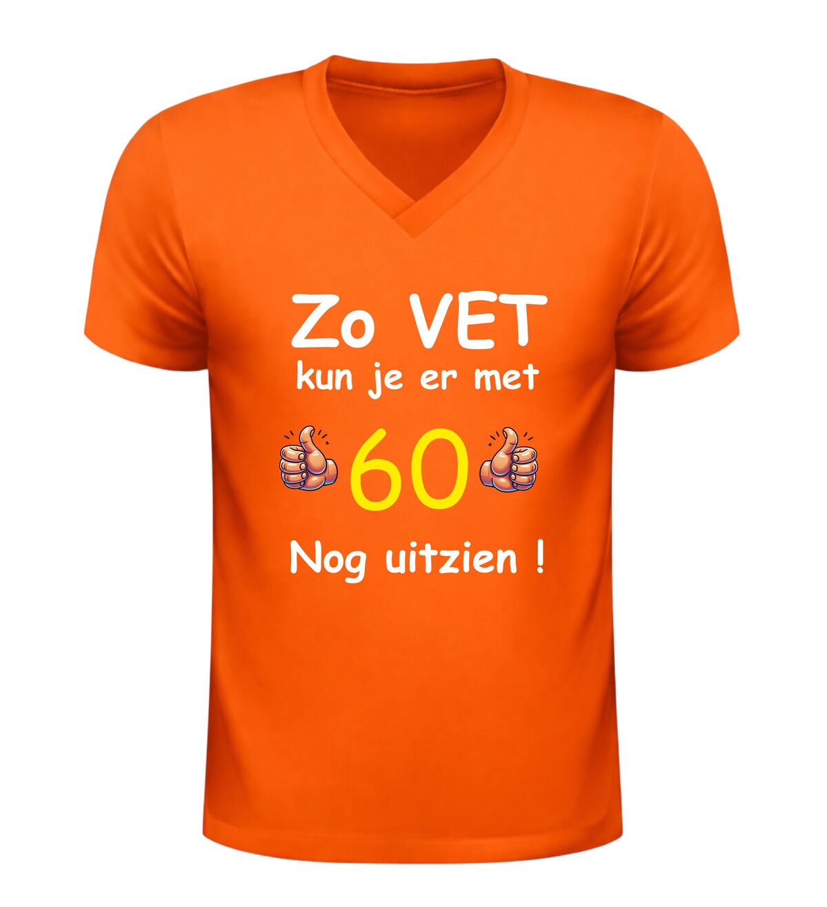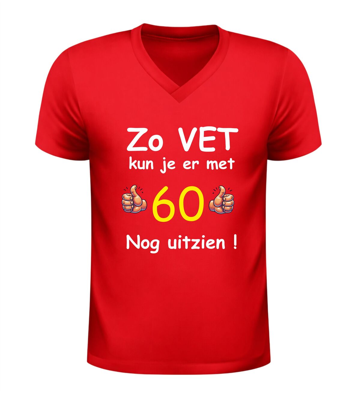 Zestig worden is een mijlpaal en dat mag gevierd worden in stijl. Met dit feestelijke v-hals shirt voor 60 jaar laat je meteen zien dat leeftijd vooral iets is om trots op te zijn. De vrolijke en zelfverzekerde tekst Zo vet kun je er met 60 uitzien zorgt voor een glimlach, leuke reacties en een extra feestelijk gevoel tijdens elke verjaardag.