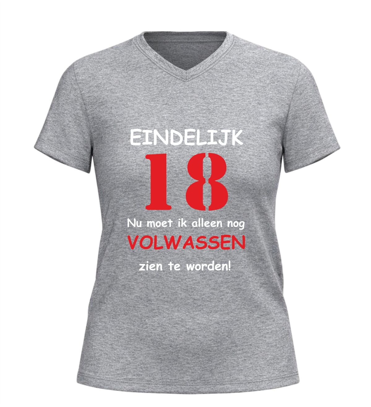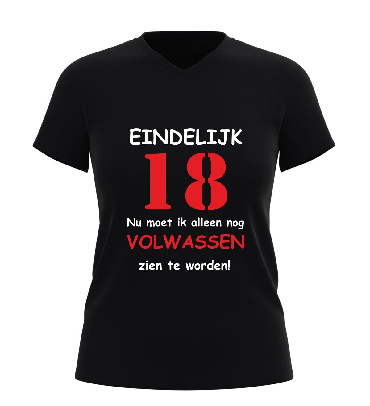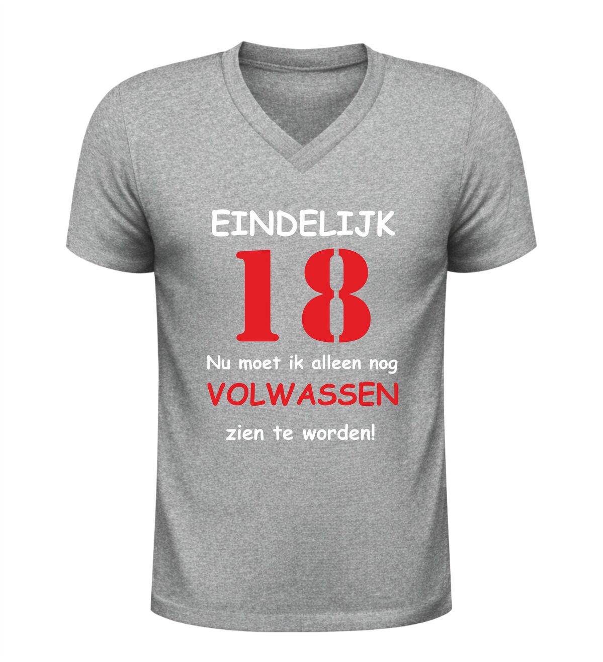 Dit V-hals 18 jaar T-shirt is een populair cadeau voor zoon, dochter, vriend of vriendin die hun achttiende verjaardag vieren. Een leuk en herkenbaar verjaardag shirt dat perfect past bij iedereen die eindelijk 18 is, maar nog niet helemaal klaar is om volwassen te worden.