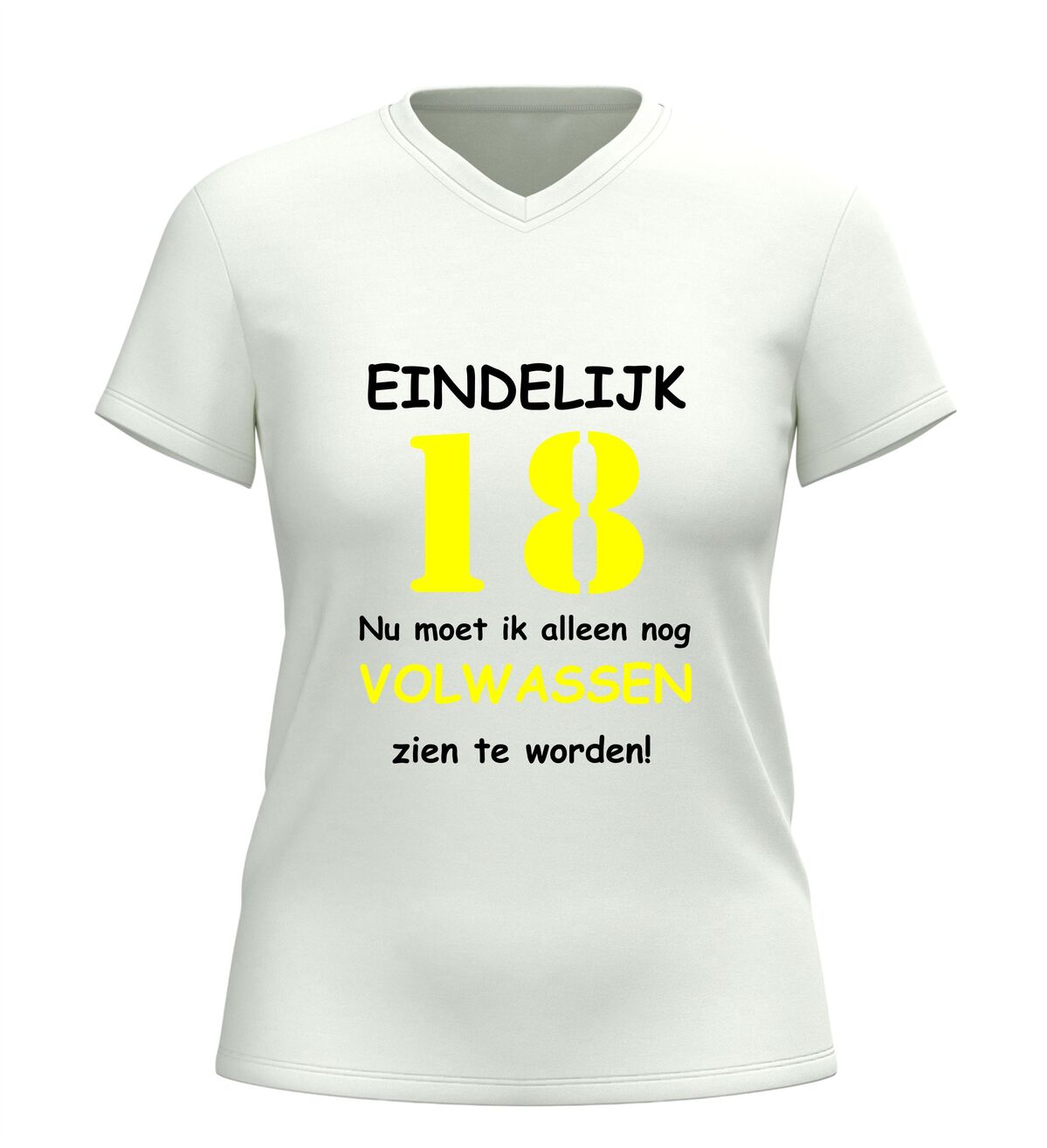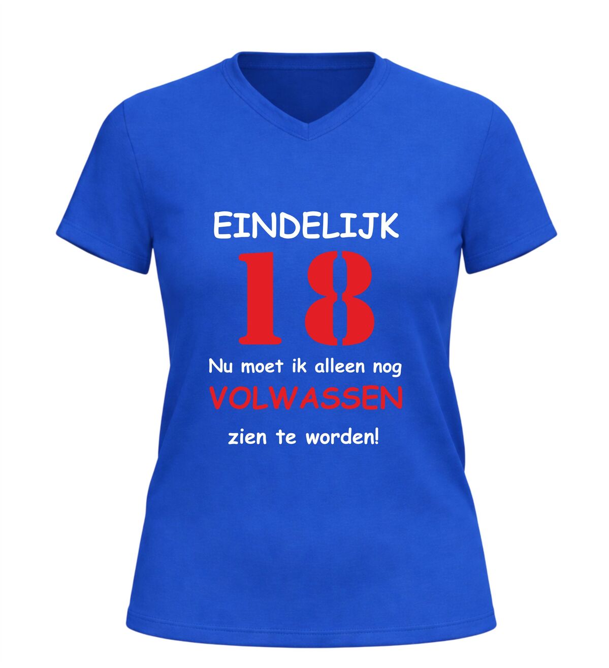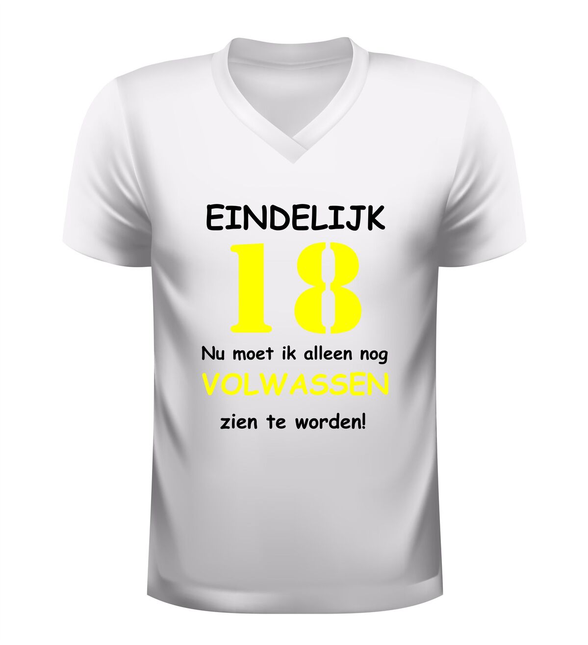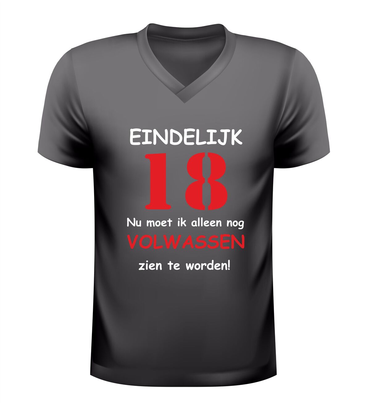 Dit V-hals 18 jaar T-shirt is een populair cadeau voor zoon, dochter, vriend of vriendin die hun achttiende verjaardag vieren. Een leuk en herkenbaar verjaardag shirt dat perfect past bij iedereen die eindelijk 18 is, maar nog niet helemaal klaar is om volwassen te worden.