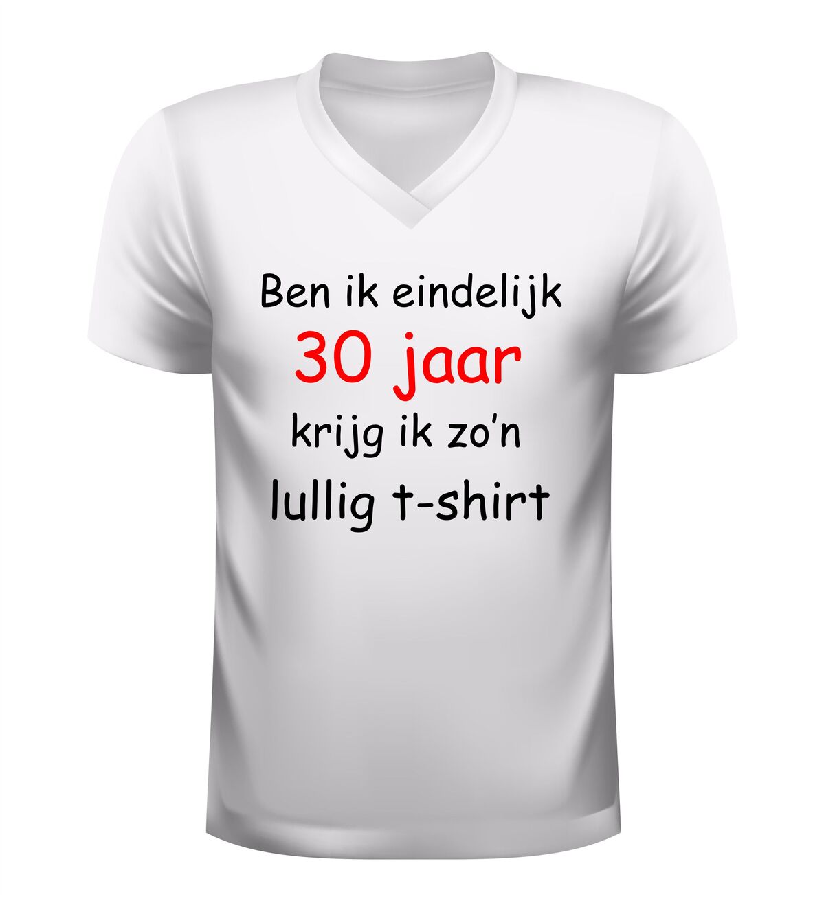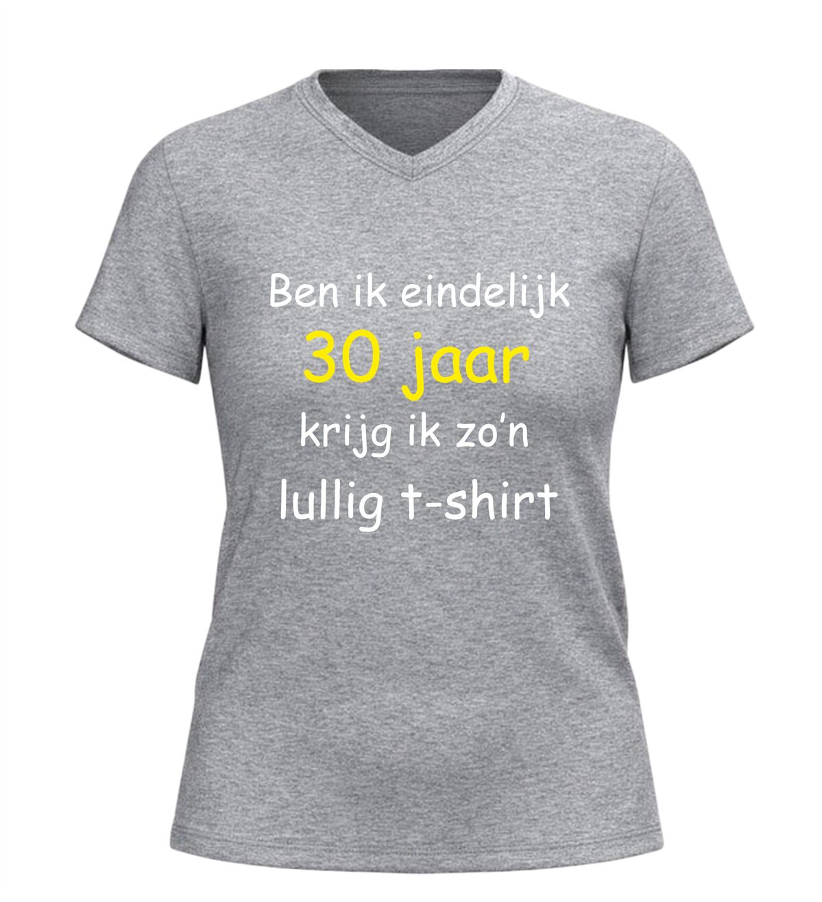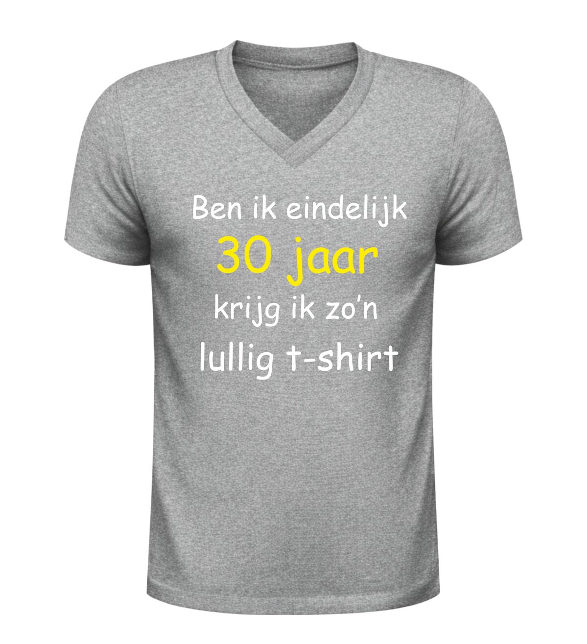 Word je eindelijk 30, krijg je zo’n lullig T-shirt. Met deze hilarische tekst is dit V-hals shirt dé perfecte keuze voor een verjaardag met een flinke dosis zelfspot. Dit grappige 30 jaar verjaardag shirt speelt in op herkenbare humor en zorgt gegarandeerd voor lachende gezichten tijdens het feest. Ideaal voor mannen en vrouwen die hun dertigste verjaardag vieren met een knipoog en niet bang zijn voor een beetje sarcasme.