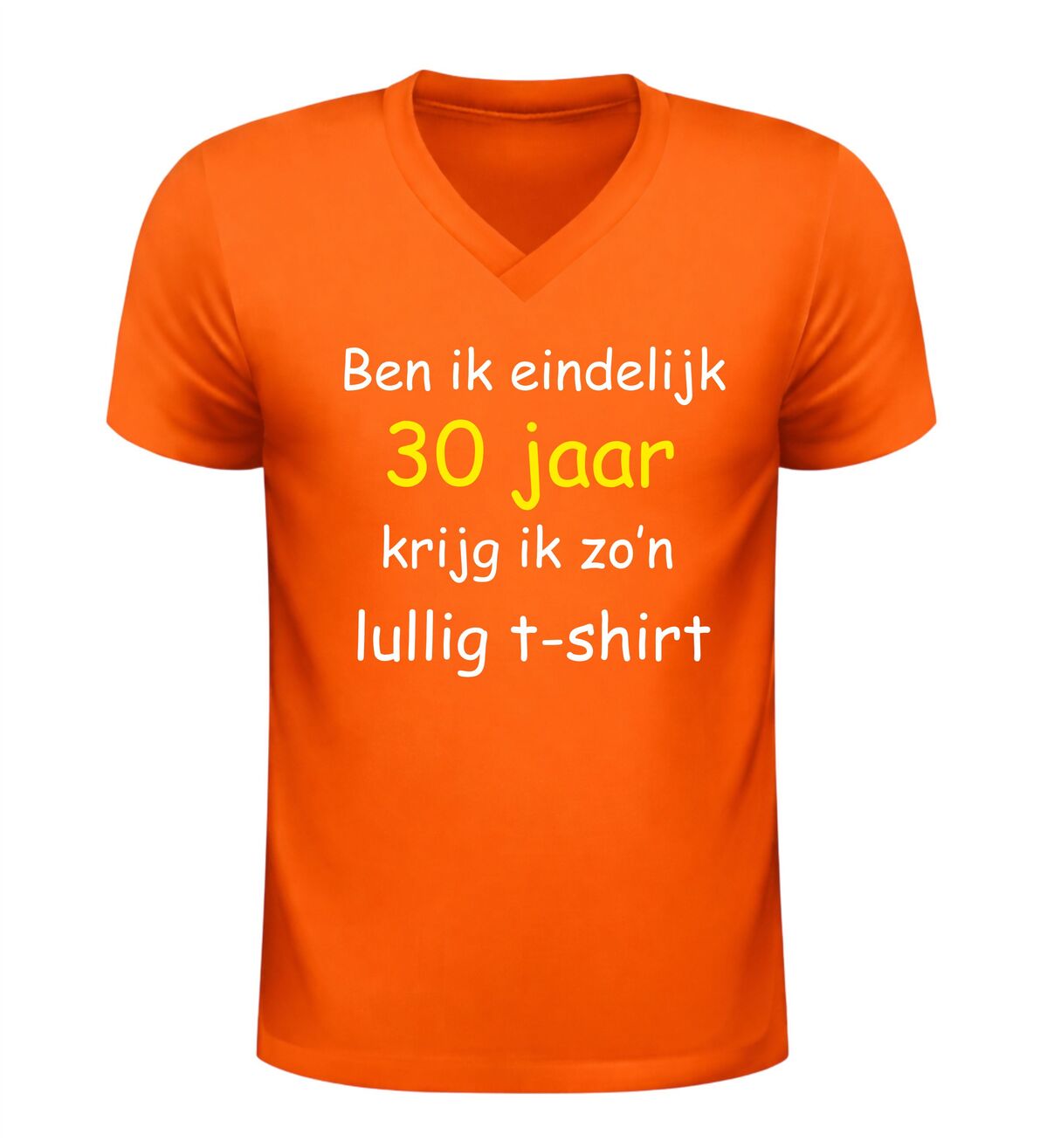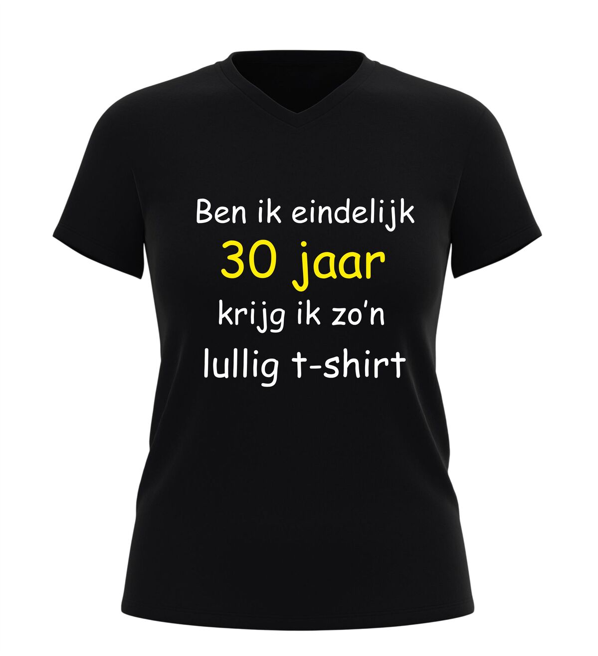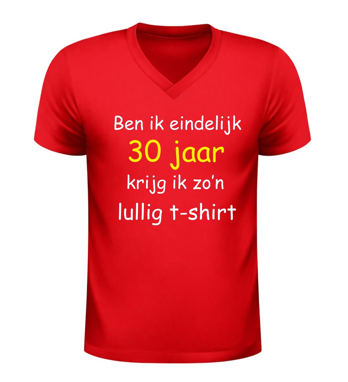 Word je eindelijk 30, krijg je zo’n lullig T-shirt. Met deze hilarische tekst is dit V-hals shirt dé perfecte keuze voor een verjaardag met een flinke dosis zelfspot. Dit grappige 30 jaar verjaardag shirt speelt in op herkenbare humor en zorgt gegarandeerd voor lachende gezichten tijdens het feest. Ideaal voor mannen en vrouwen die hun dertigste verjaardag vieren met een knipoog en niet bang zijn voor een beetje sarcasme.