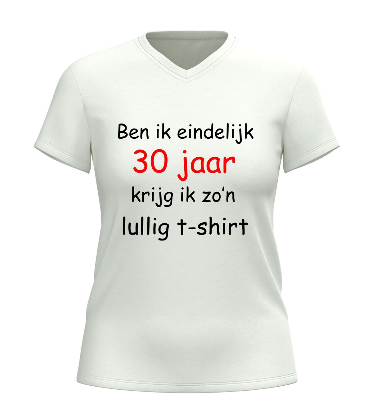 Dit 30 jaar T-shirt is ook een origineel en grappig cadeau voor een vriendin, zus of collega die dertig wordt. Met dit ludieke verjaardag shirt maak je van 30 worden een moment vol humor, gezelligheid en onvergetelijke foto’s.