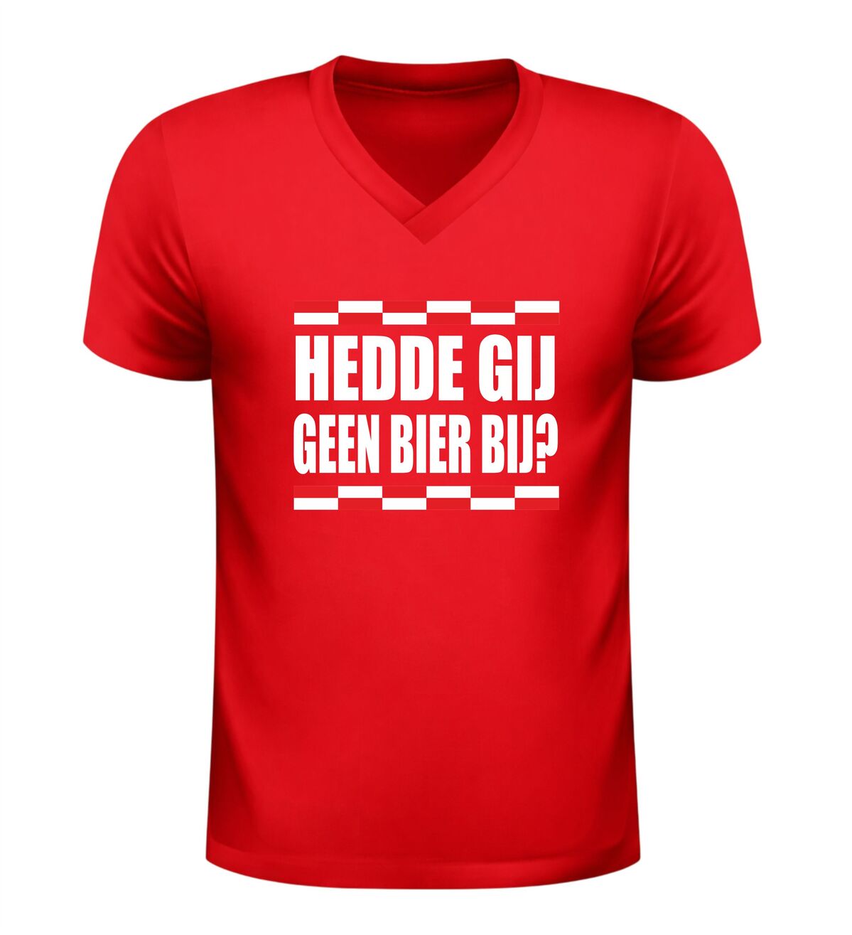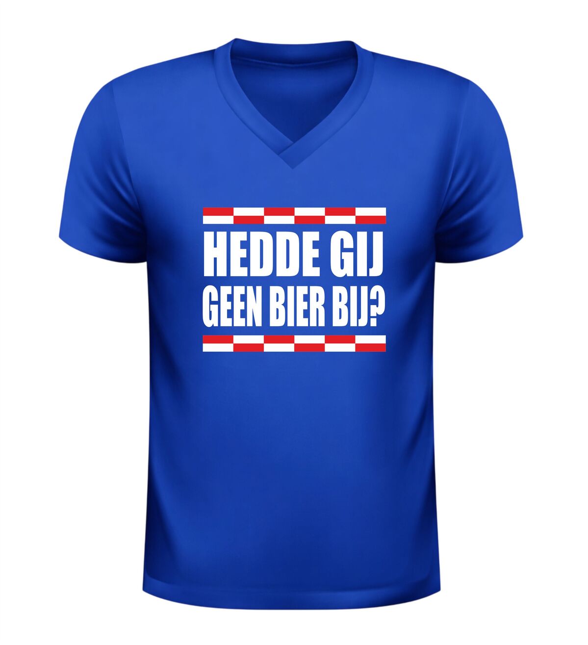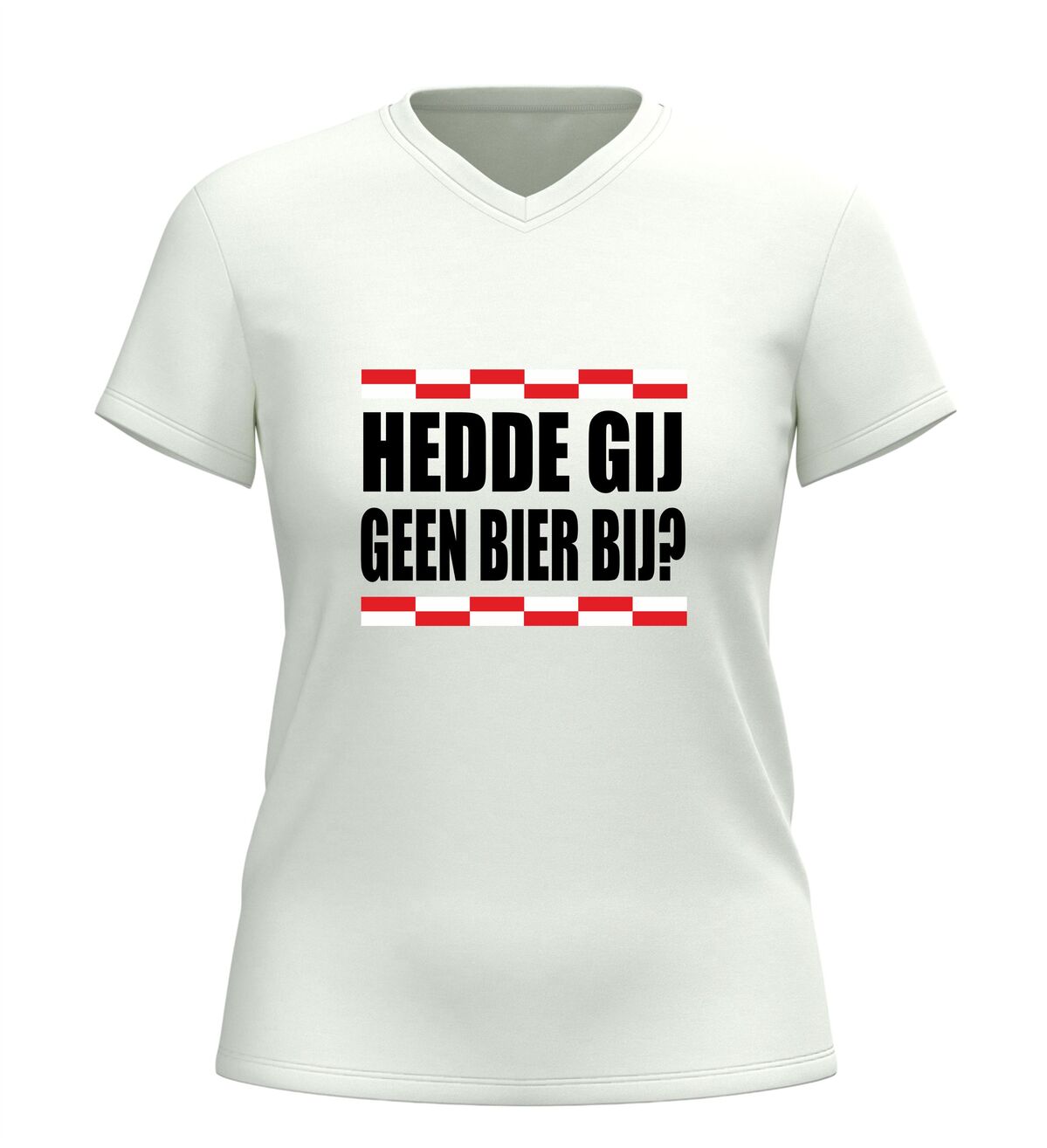 Dit Brabantse V-hals T-shirt met de iconische tekst Hedde gij geen bier bij? is een echte ode aan het Bourgondische leven in Brabant. De uitspraak is voor iedere Brabander direct herkenbaar en staat symbool voor gezelligheid, humor en het samen genieten van een goed glas bier. Of je nu uit Eindhoven, Tilburg, Breda, Den Bosch of een klein dorpje komt, deze tekst voelt meteen vertrouwd en zorgt gegarandeerd voor een glimlach. Het shirt ademt Brabantse trots en laat zien dat jij de Brabantse mentaliteit begrijpt: gemoedelijk, direct en altijd in voor een drankje.