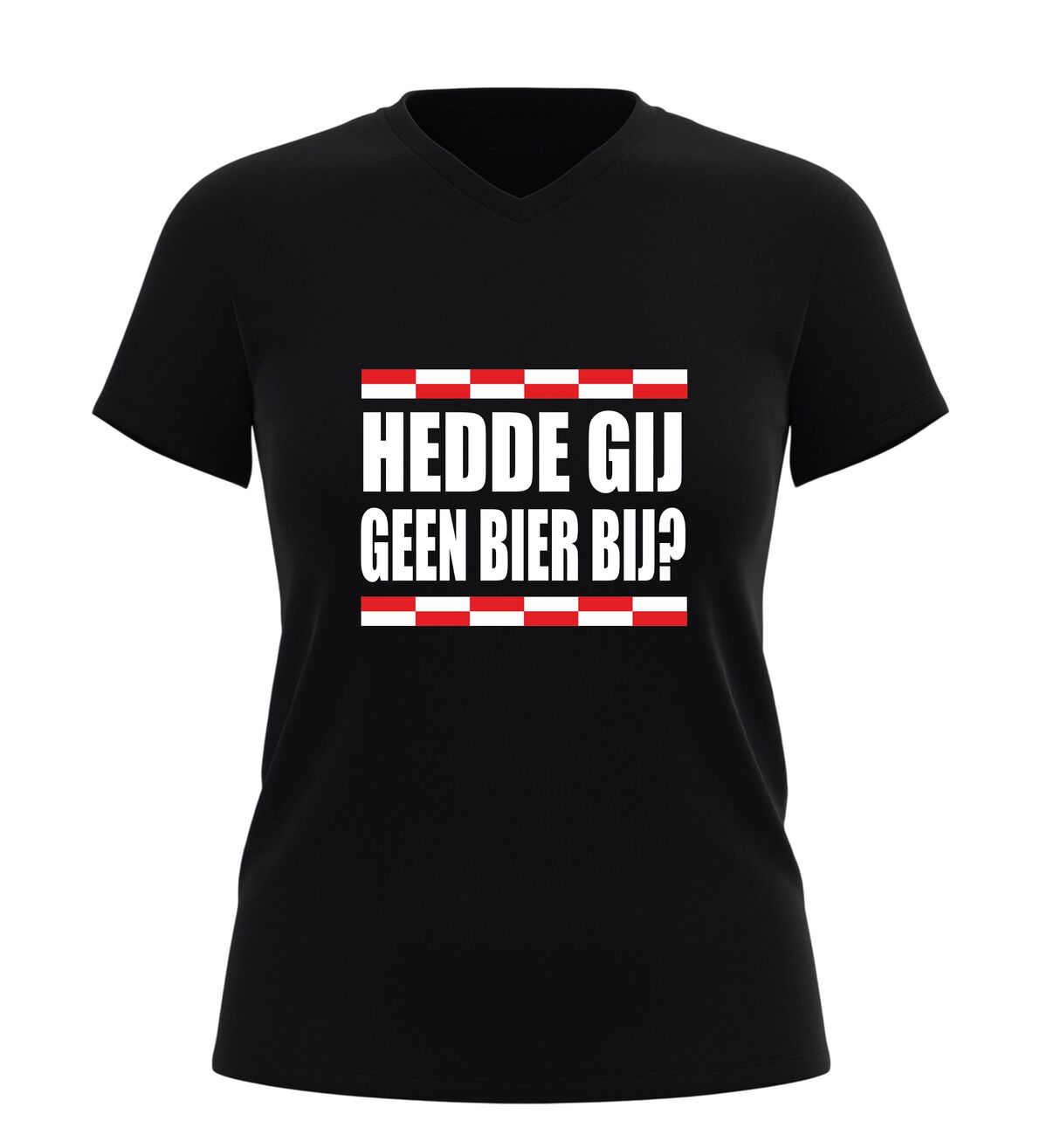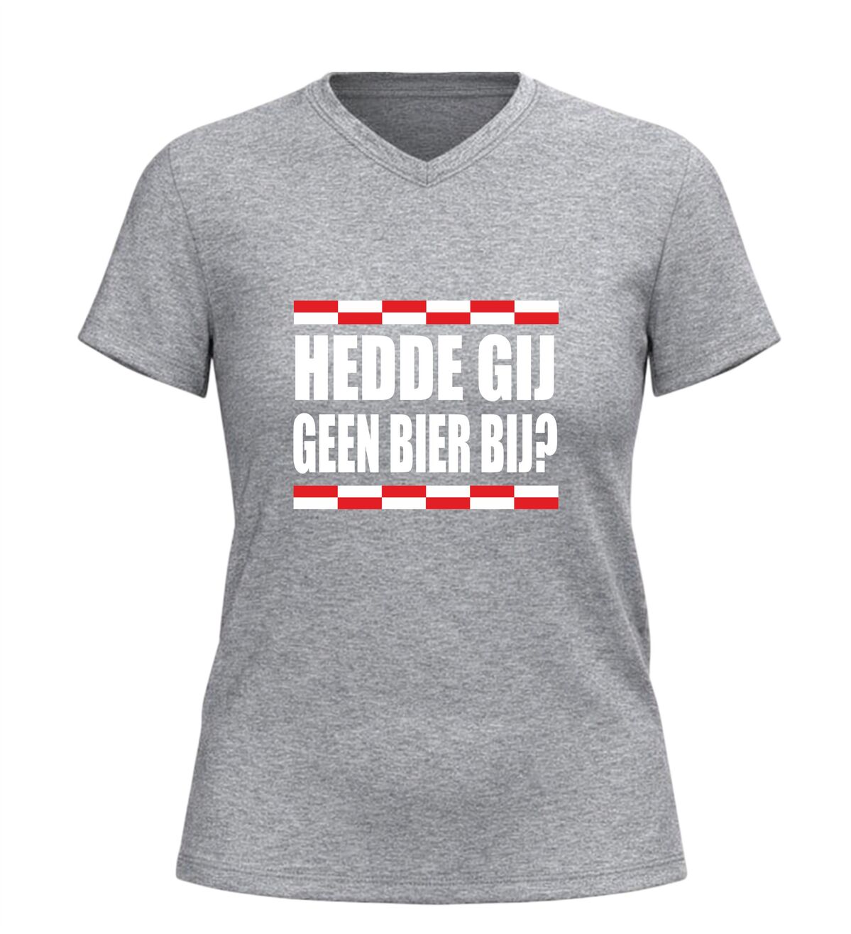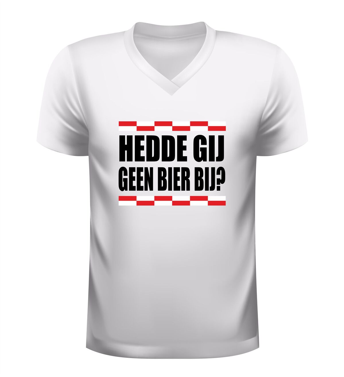 Dit Brabantse V-hals T-shirt met de iconische tekst Hedde gij geen bier bij? is een echte ode aan het Bourgondische leven in Brabant. De uitspraak is voor iedere Brabander direct herkenbaar en staat symbool voor gezelligheid, humor en het samen genieten van een goed glas bier. Of je nu uit Eindhoven, Tilburg, Breda, Den Bosch of een klein dorpje komt, deze tekst voelt meteen vertrouwd en zorgt gegarandeerd voor een glimlach. Het shirt ademt Brabantse trots en laat zien dat jij de Brabantse mentaliteit begrijpt: gemoedelijk, direct en altijd in voor een drankje.