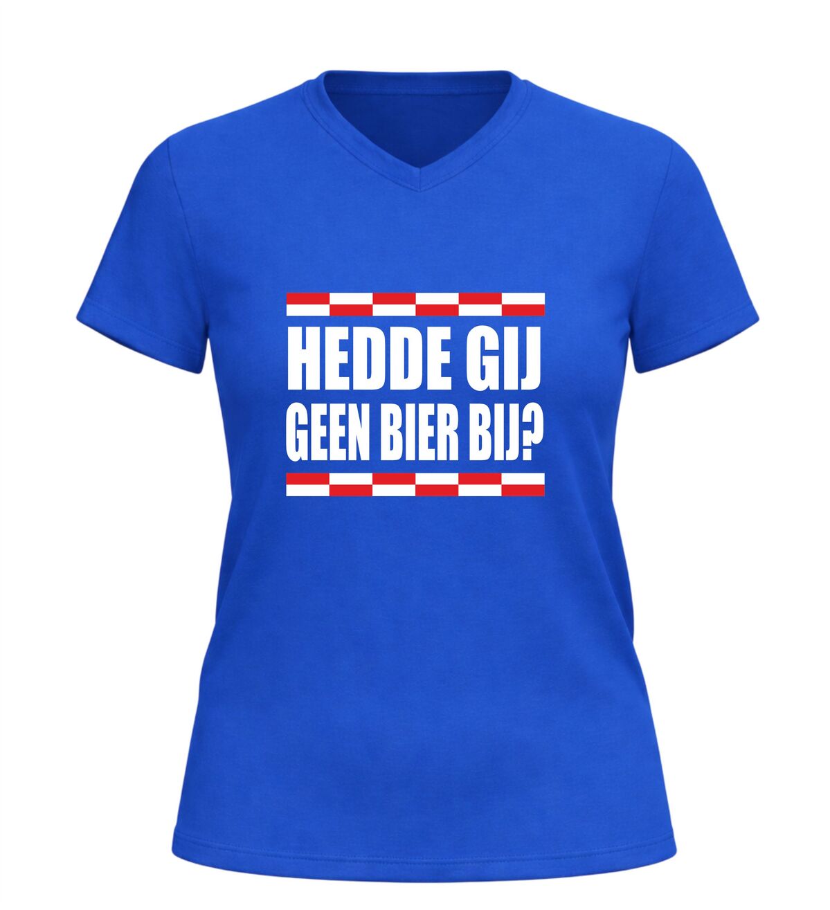 Dit shirt is ook een populair cadeau voor echte Brabanders, studenten in Brabant, carnavalsvierders of mensen die zijn verhuisd maar hun Brabantse gevoel willen behouden. De combinatie van Brabants dialect, humor en herkenbare kleuren maakt dit V-hals T-shirt uniek en tijdloos. Zoek je een origineel Brabants shirt met tekst, een humoristisch T-shirt in Brabantse kleuren of een opvallend carnavals shirt met Brabantse uitspraak, dan is dit Hedde gij geen bier bij? V-hals T-shirt de perfecte keuze.