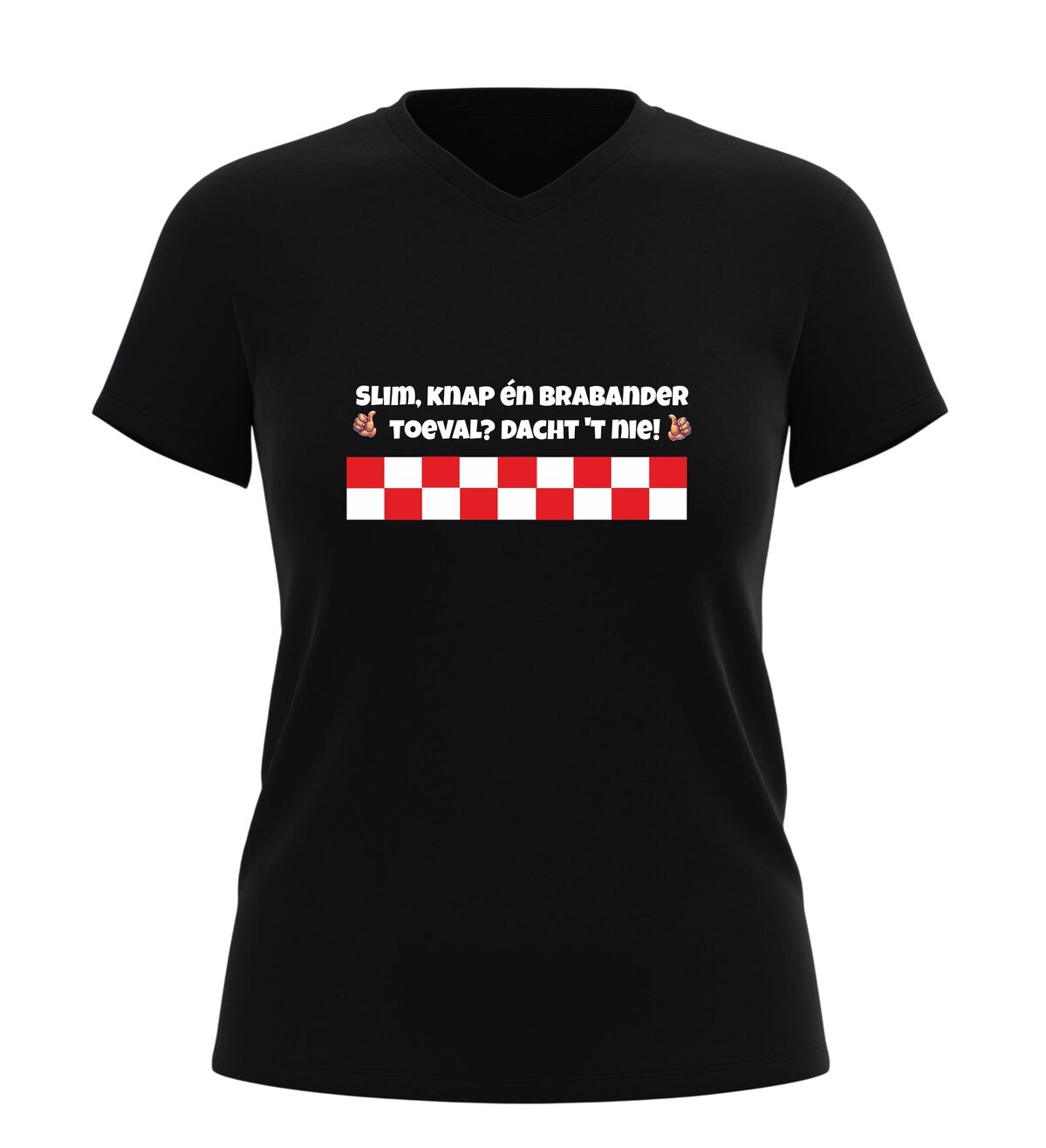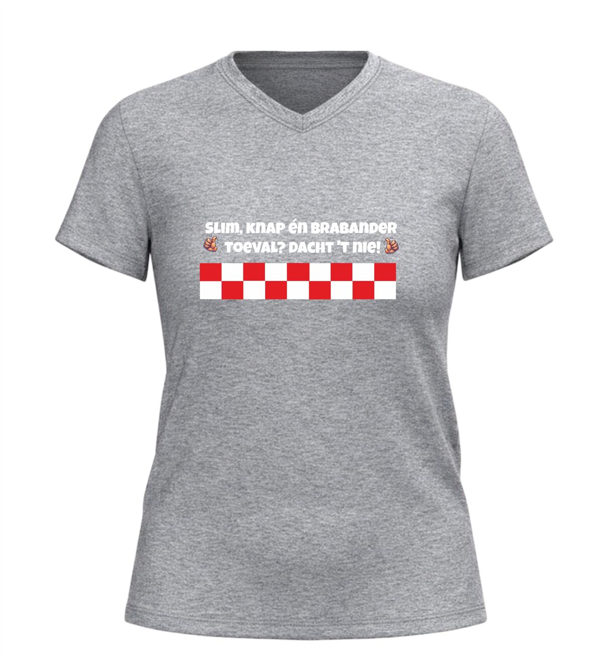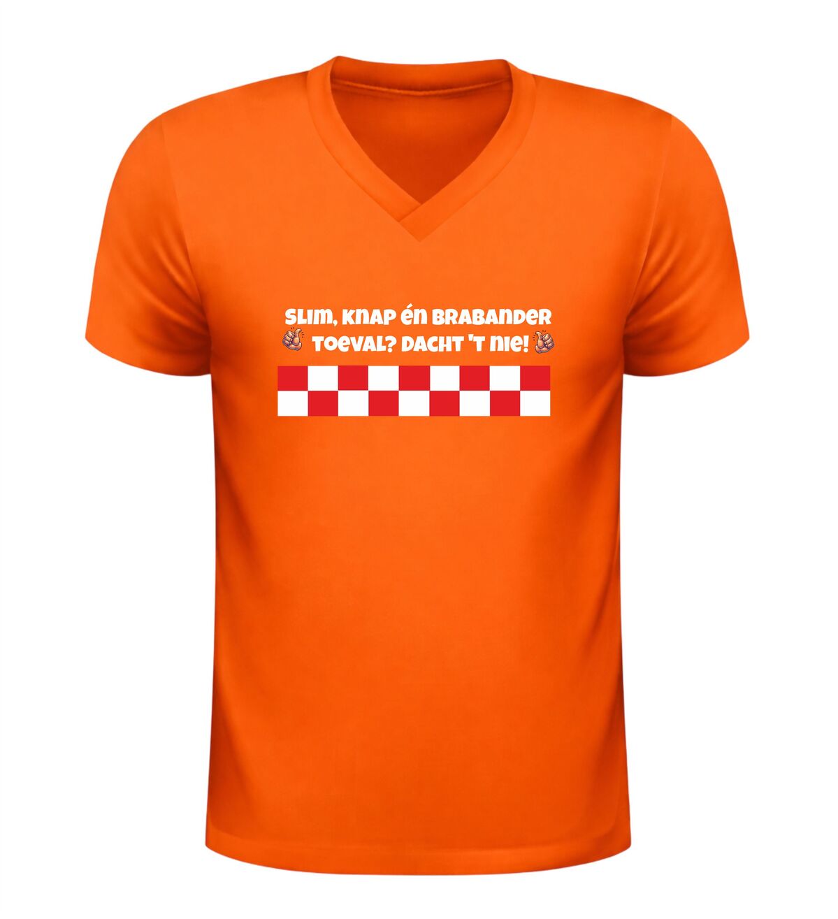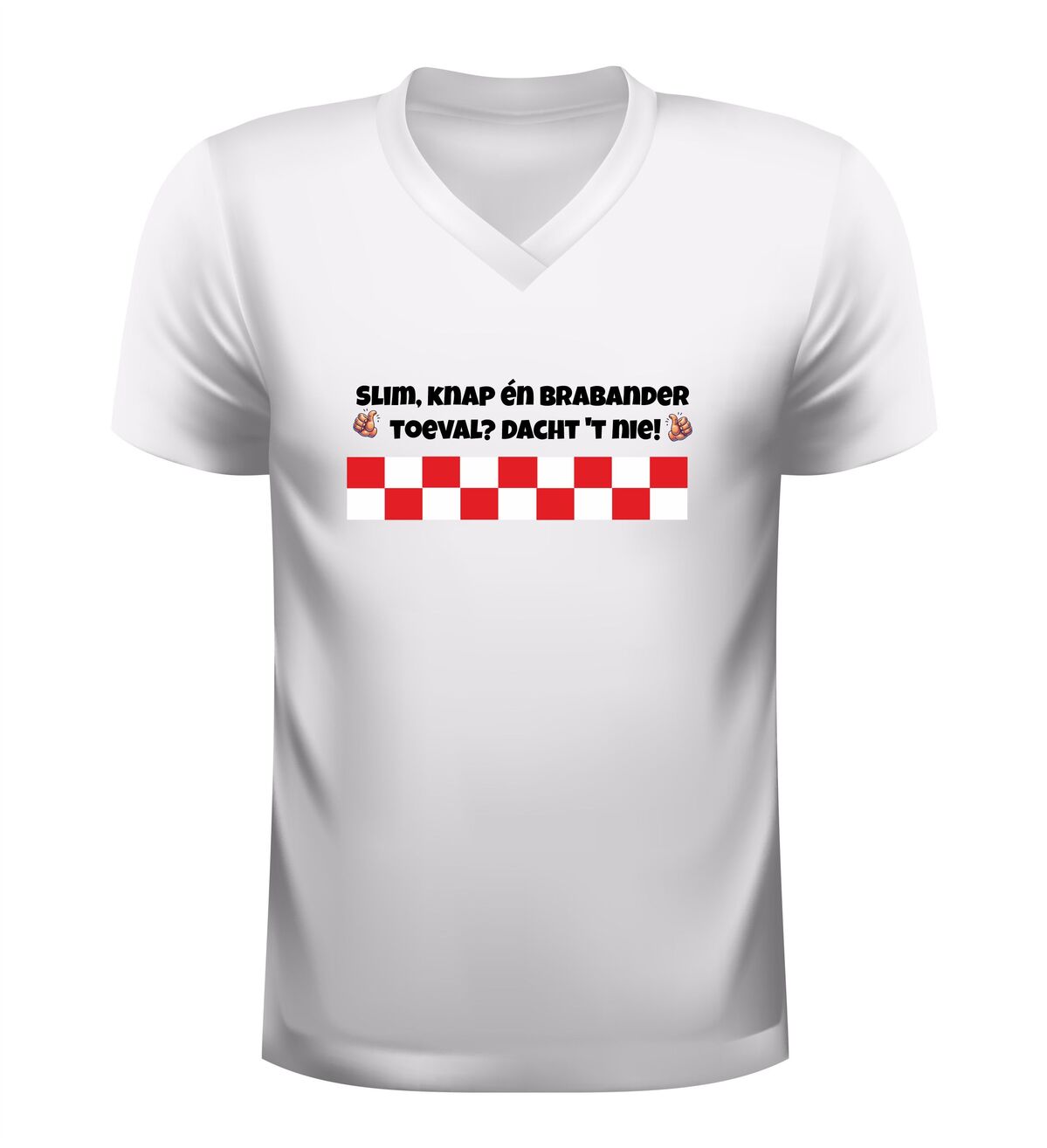 Dit V-hals T-shirt met de opvallende tekst Slim, Knap, Brabander. Toeval? Dacht het niet. is gemaakt voor iedereen die trots is op zijn Brabantse afkomst en dat graag met een knipoog laat zien. Brabant staat bekend om zijn gezelligheid, humor en levenslust, maar ook om slimme en ondernemende mensen. Met dit Brabants shirt combineer je zelfvertrouwen, humor en regionale trots in één krachtig statement. De tekst is herkenbaar, speels en typisch Brabants, waardoor het shirt direct opvalt en zorgt voor positieve reacties.