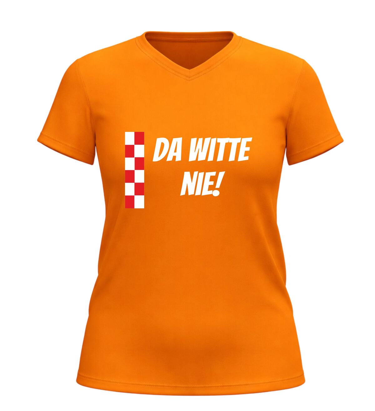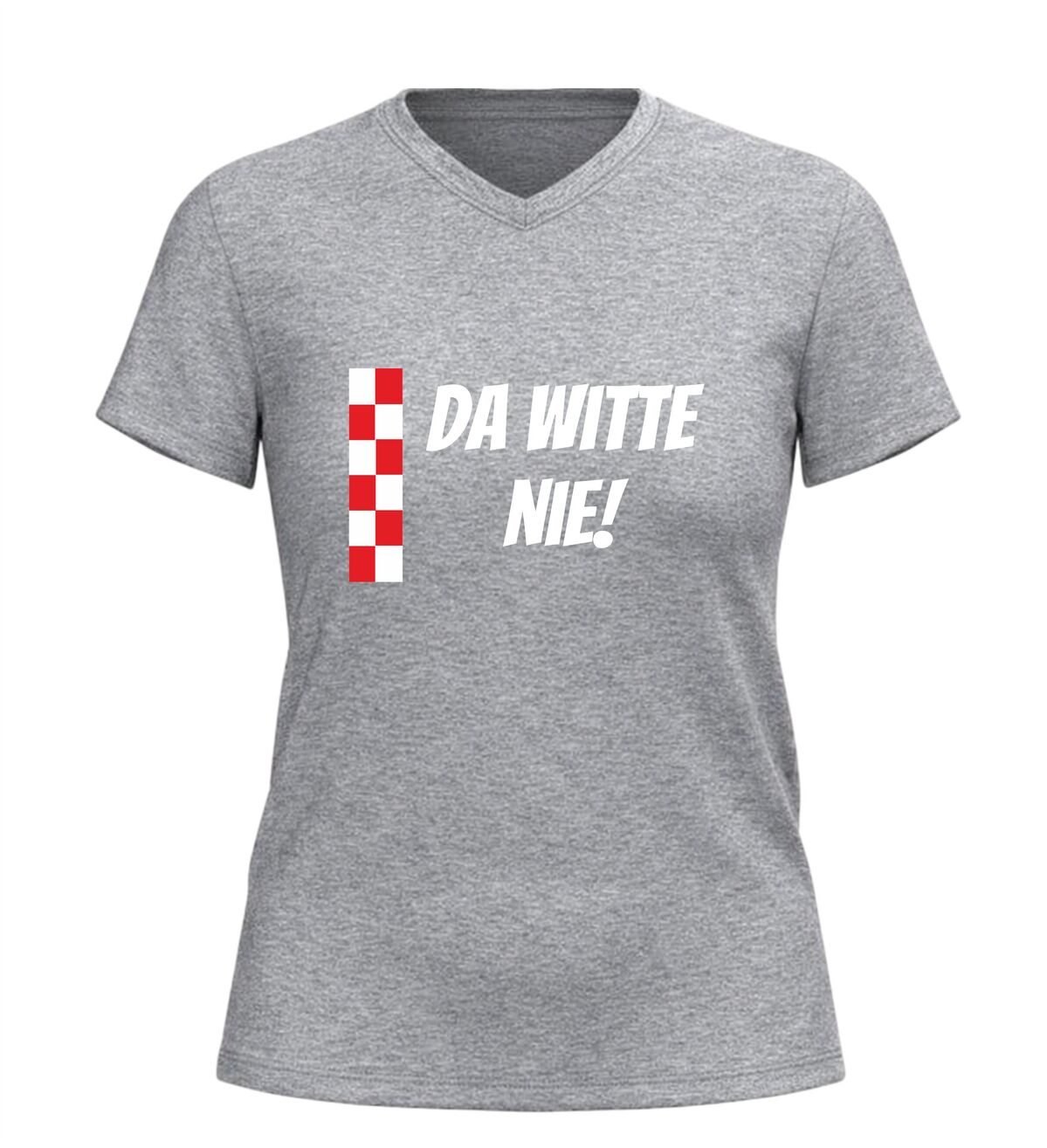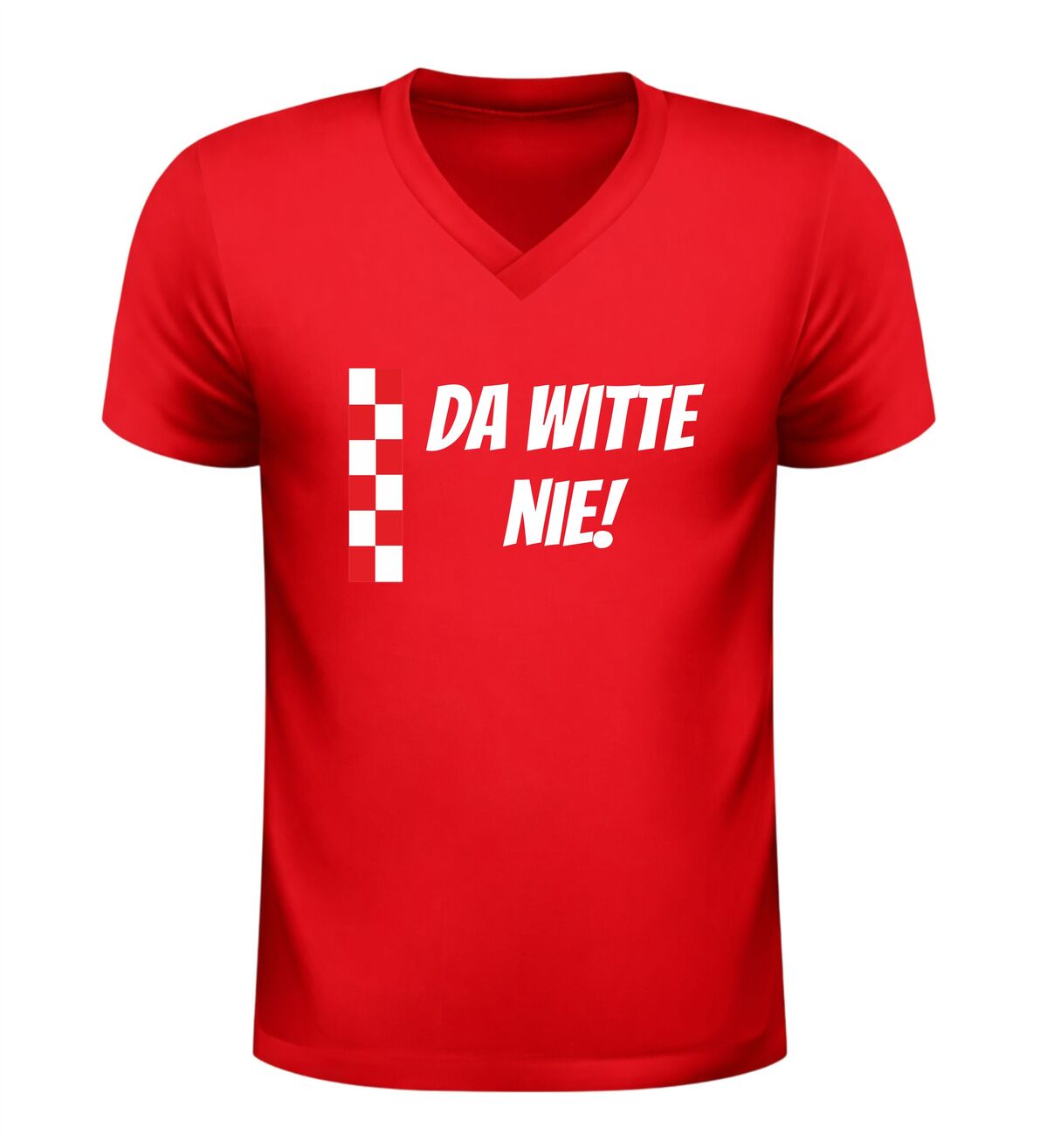 Dit Brabants V-hals T-shirt met de tekst da witte nie en een rood-wit geblokte Brabantse vlag is perfect voor carnaval, festivals en Brabantse feesten. Het shirt combineert een opvallende print met een comfortabele pasvorm en is geschikt voor zowel dames als heren. Dankzij het zachte en ademende materiaal zit het T-shirt prettig tijdens lange feestdagen. Ideaal als carnavalskleding, Brabants outfit of origineel cadeau voor iedereen die trots is op Brabant.