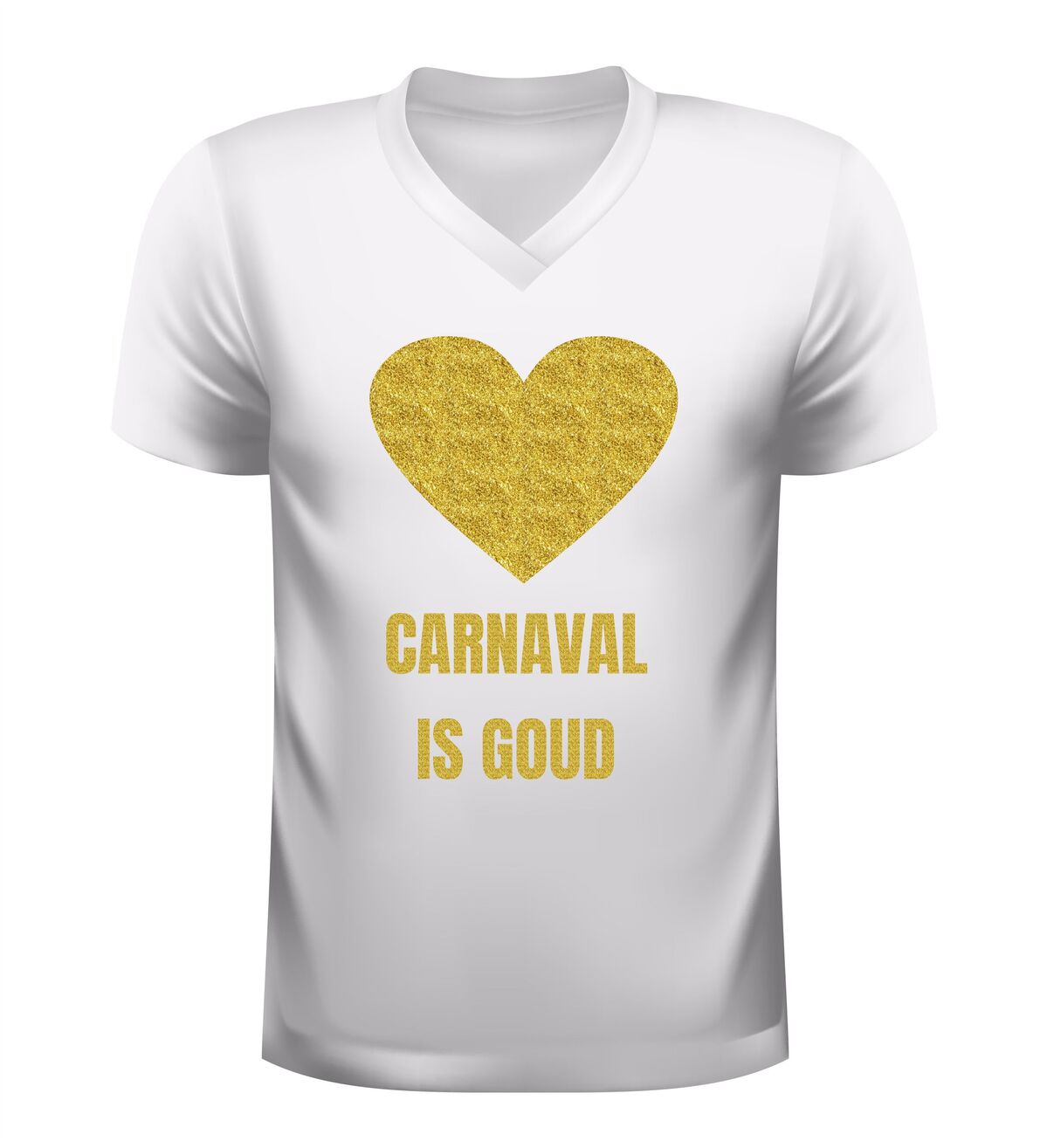 Ben je op zoek naar originele carnavalskleding die niet te ingewikkeld is, maar wel meteen indruk maakt? Dan is dit V-hals shirt met gouden glitter bedrukking de ideale keuze voor carnaval. Goud, glitter en carnaval komen samen in één shirt dat comfort en feest perfect combineert. Want tijdens carnaval wil je stralen, en dat doe je met deze gouden glitter bedrukking als nooit tevoren.