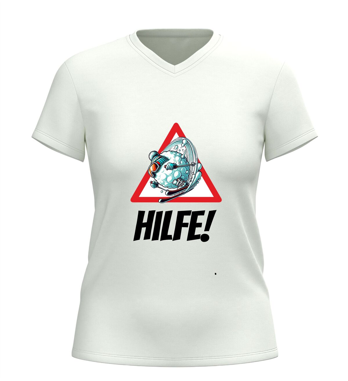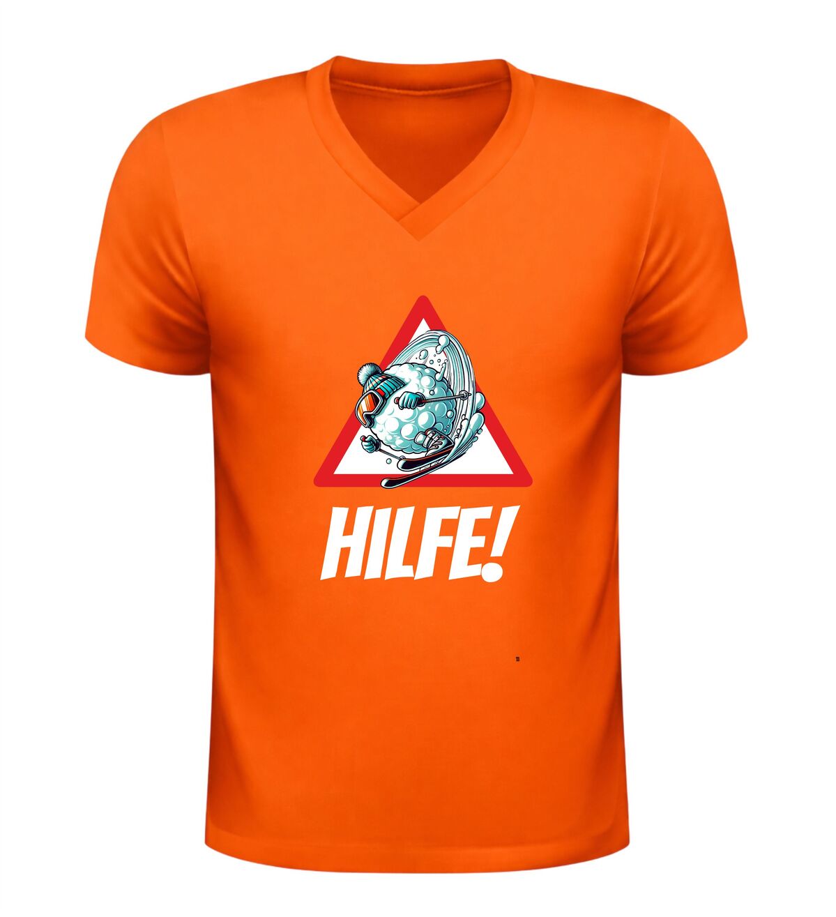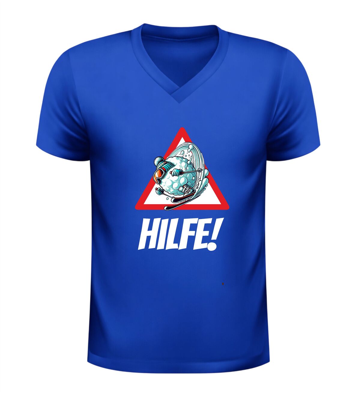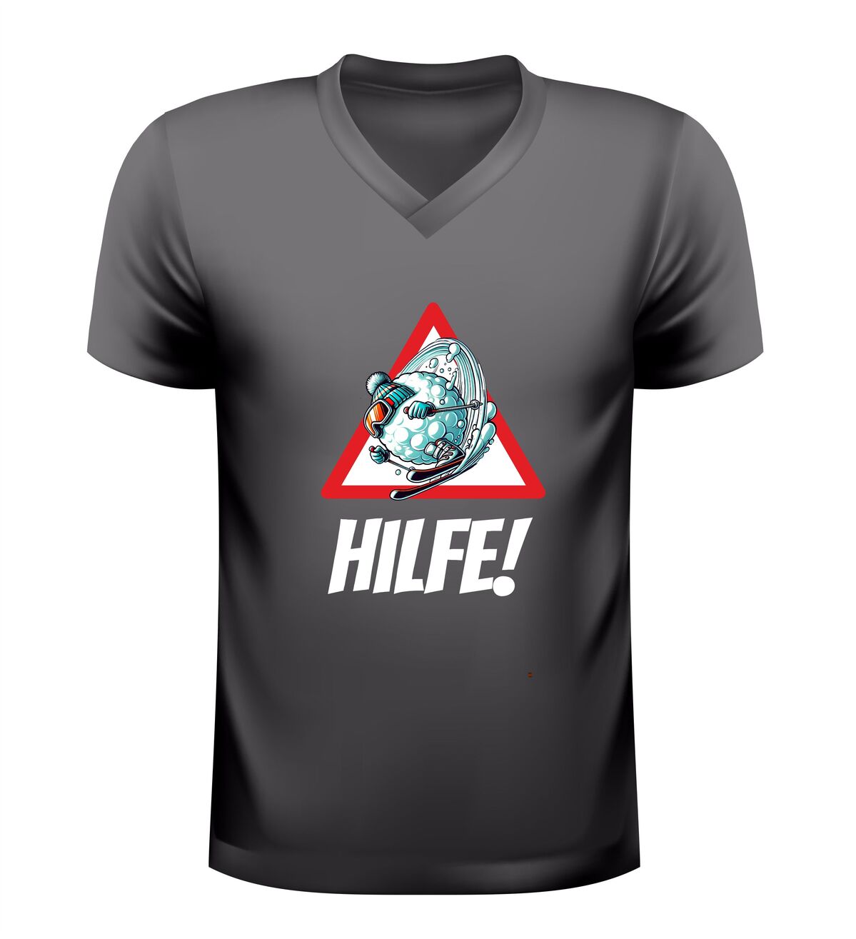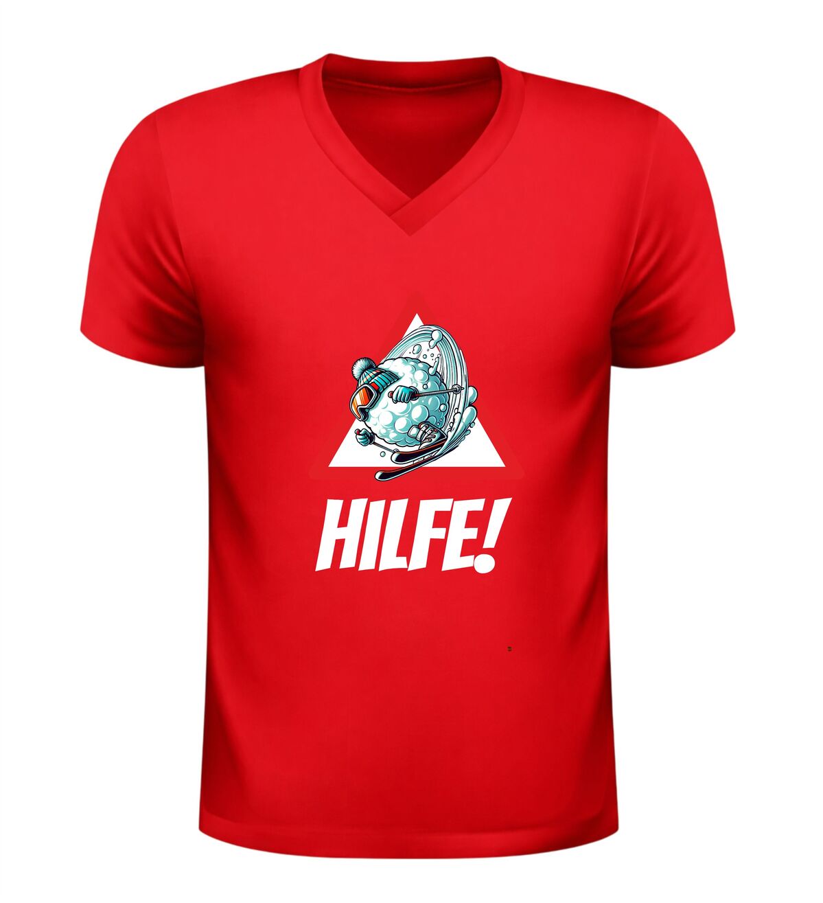 Dit v-hals shirt voor dames en heren met de grappige tekst Hilfe is een echte must-have voor liefhebbers van après-ski en wintersporthumor. De speelse afbeelding van een skiër gevangen in een sneeuwbal zorgt direct voor een vrolijke en opvallende uitstraling. Dit shirt is perfect voor iedereen die met een knipoog wil genieten van skiën, sneeuw en feestelijke après-ski momenten.