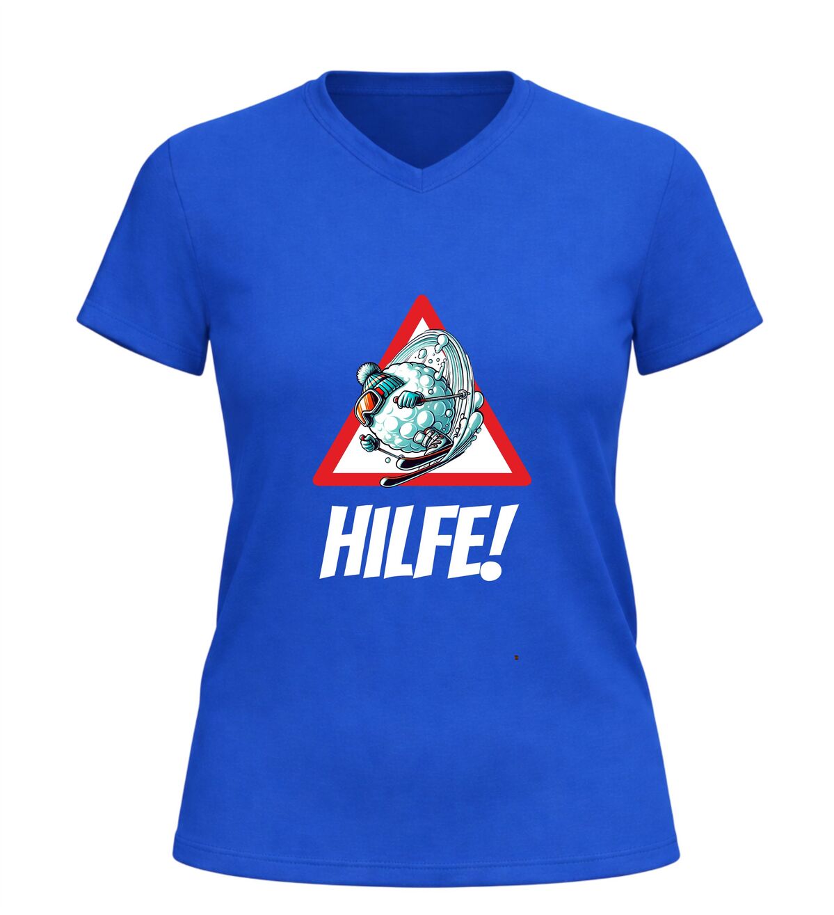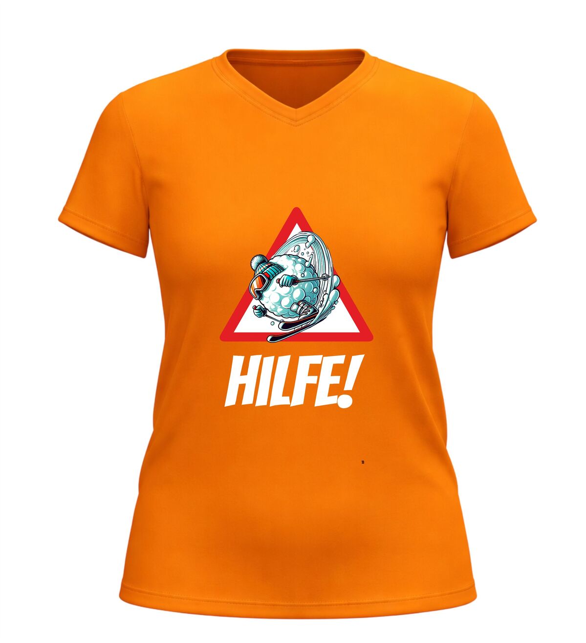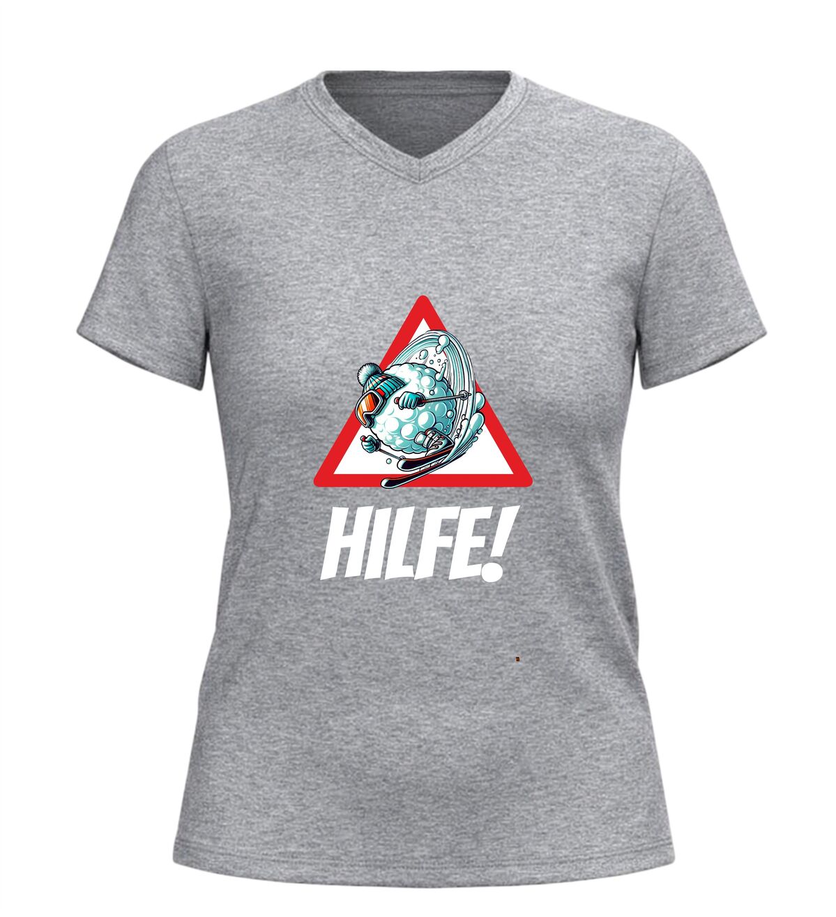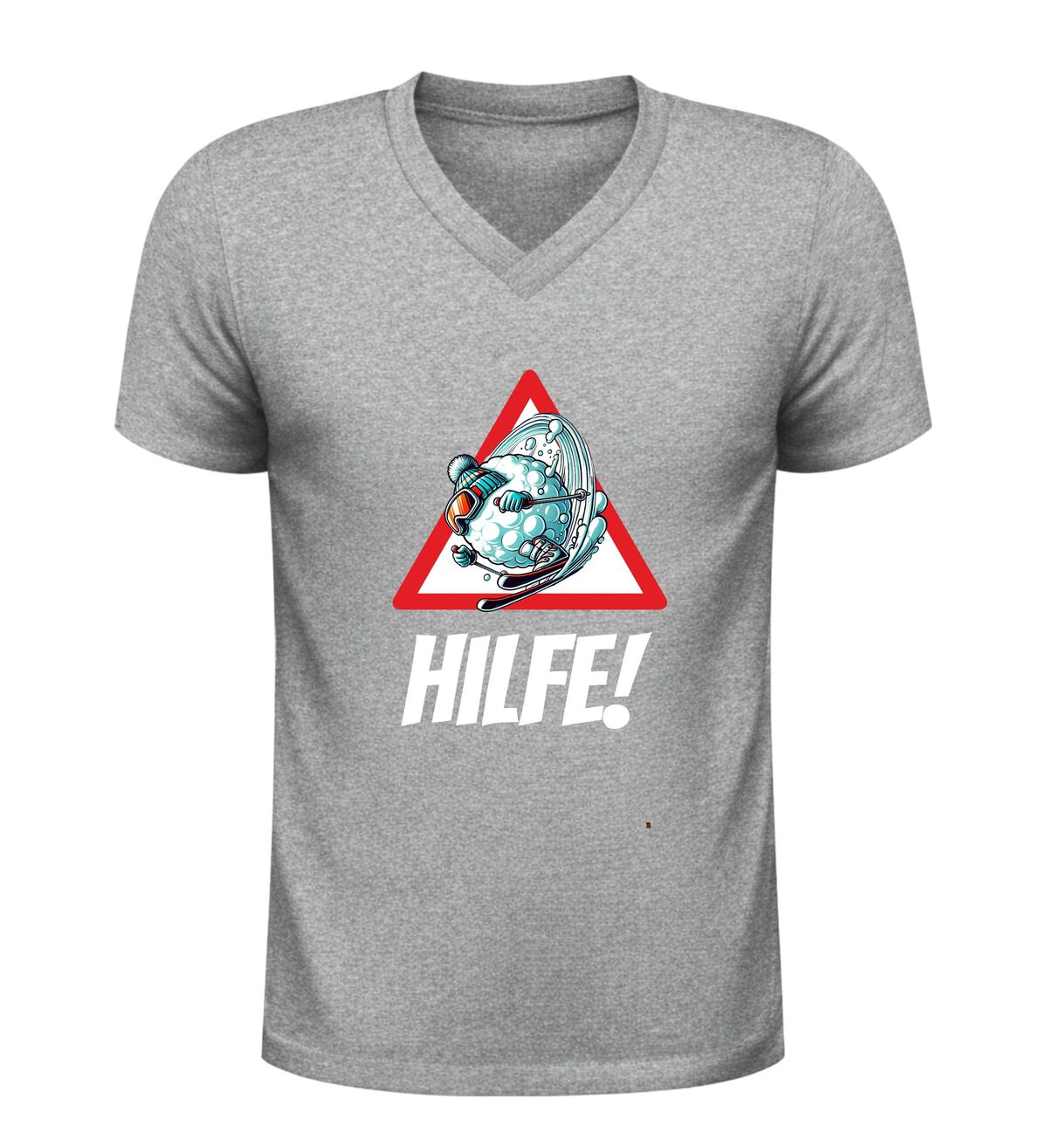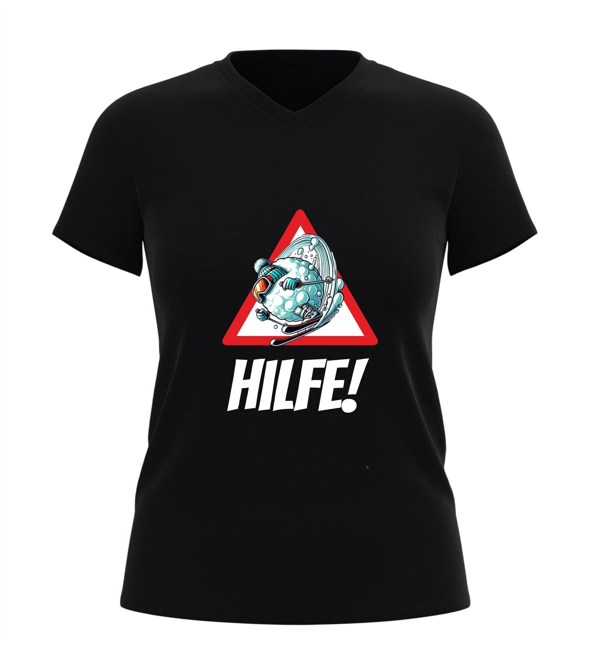 Dit v-hals shirt voor dames en heren met de grappige tekst Hilfe is een echte must-have voor liefhebbers van après-ski en wintersporthumor. De speelse afbeelding van een skiër gevangen in een sneeuwbal zorgt direct voor een vrolijke en opvallende uitstraling. Dit shirt is perfect voor iedereen die met een knipoog wil genieten van skiën, sneeuw en feestelijke après-ski momenten.