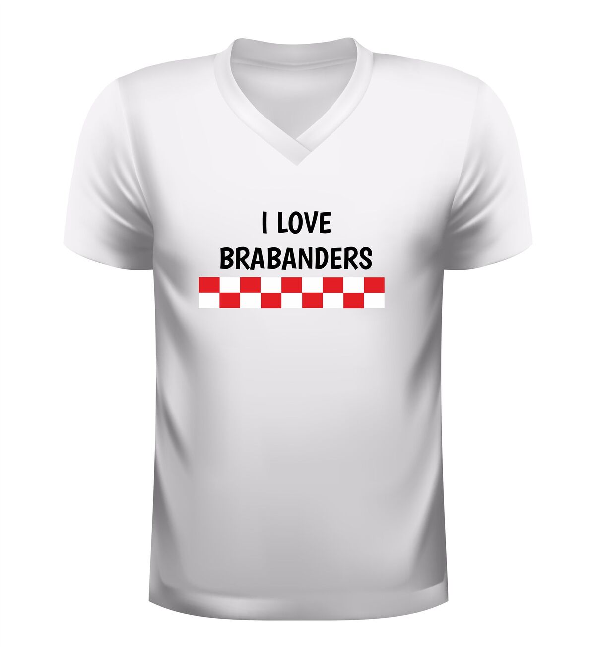 Dit V-hals shirt voor dames en heren met de tekst I Love Brabanders is een echte ode aan de Brabantse trots. Brabanders staan bekend om hun gezelligheid, nuchterheid en warme karakter, en met dit shirt laat je zien dat jij een echte Brabander bent of trots bent op Brabanders. Het rood-wit geblokte vlak in de kleuren van Brabant maakt het ontwerp direct herkenbaar en versterkt het gevoel van Brabantse identiteit. Dit Brabant shirt is perfect voor iedereen die zijn liefde voor Brabant en de Brabander graag wil uitdragen.