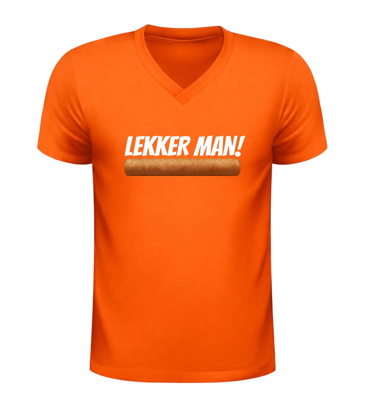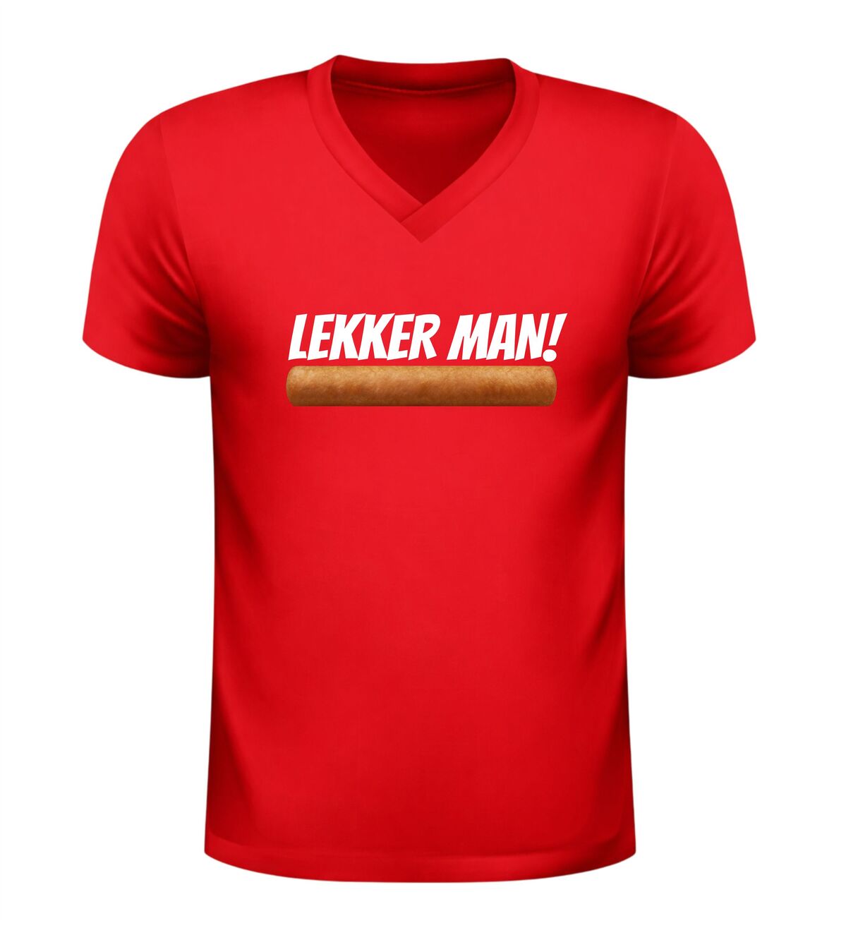 De frikandel opdruk in combinatie met de tekst Lekker man zorgt voor herkenning en een glimlach. Iedereen kent de frikandel en iedereen heeft er een mening over, wat dit shirt met frikandel extra leuk maakt. Dit V-hals shirt draagt comfortabel en is ideaal om te dragen tijdens feestjes, festivals of momenten waarop de frikandel centraal staat. Met deze frikandel bedrukking maak je meteen duidelijk dat jij humor hebt en een zwak voor een goede frikandel.