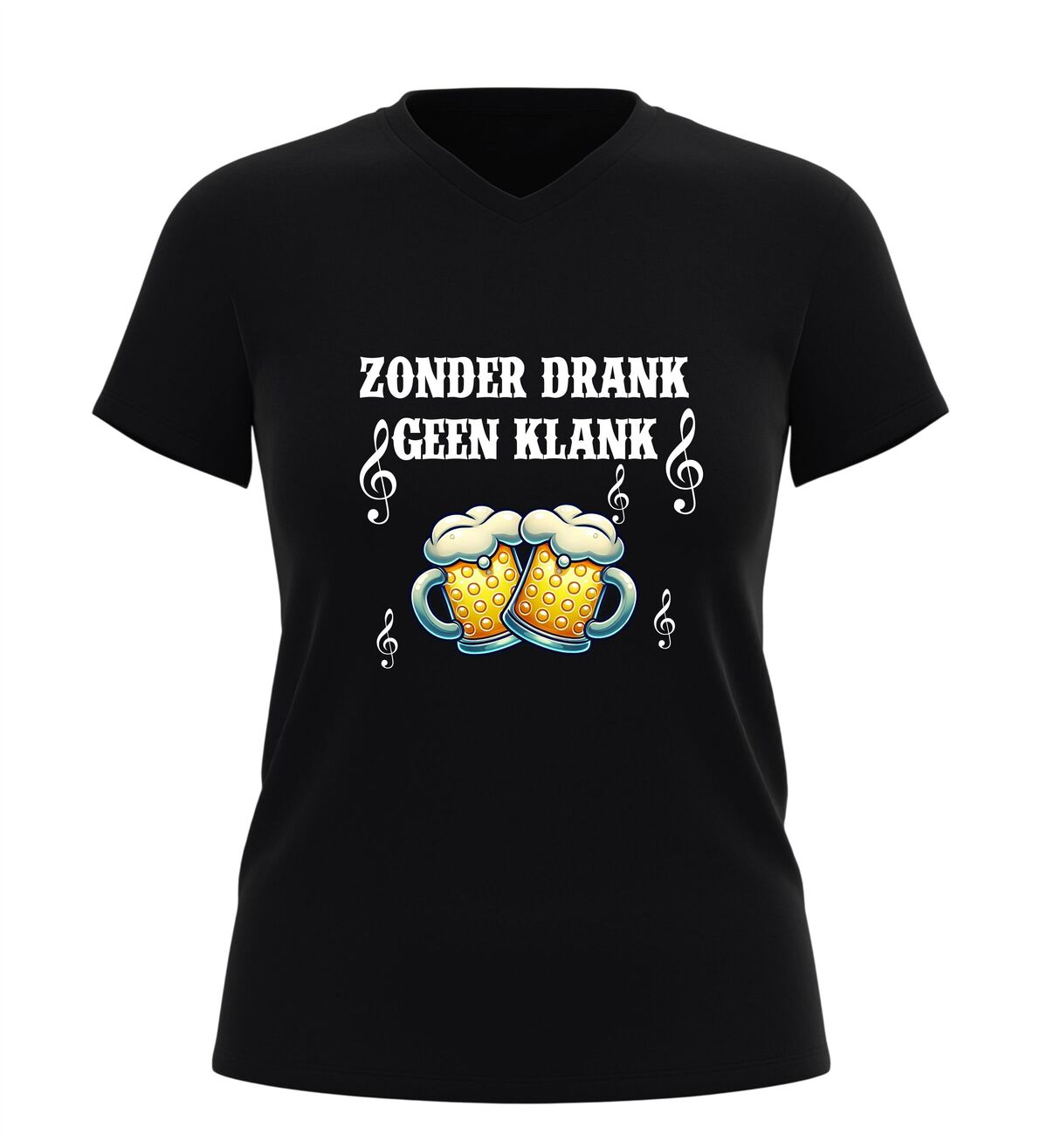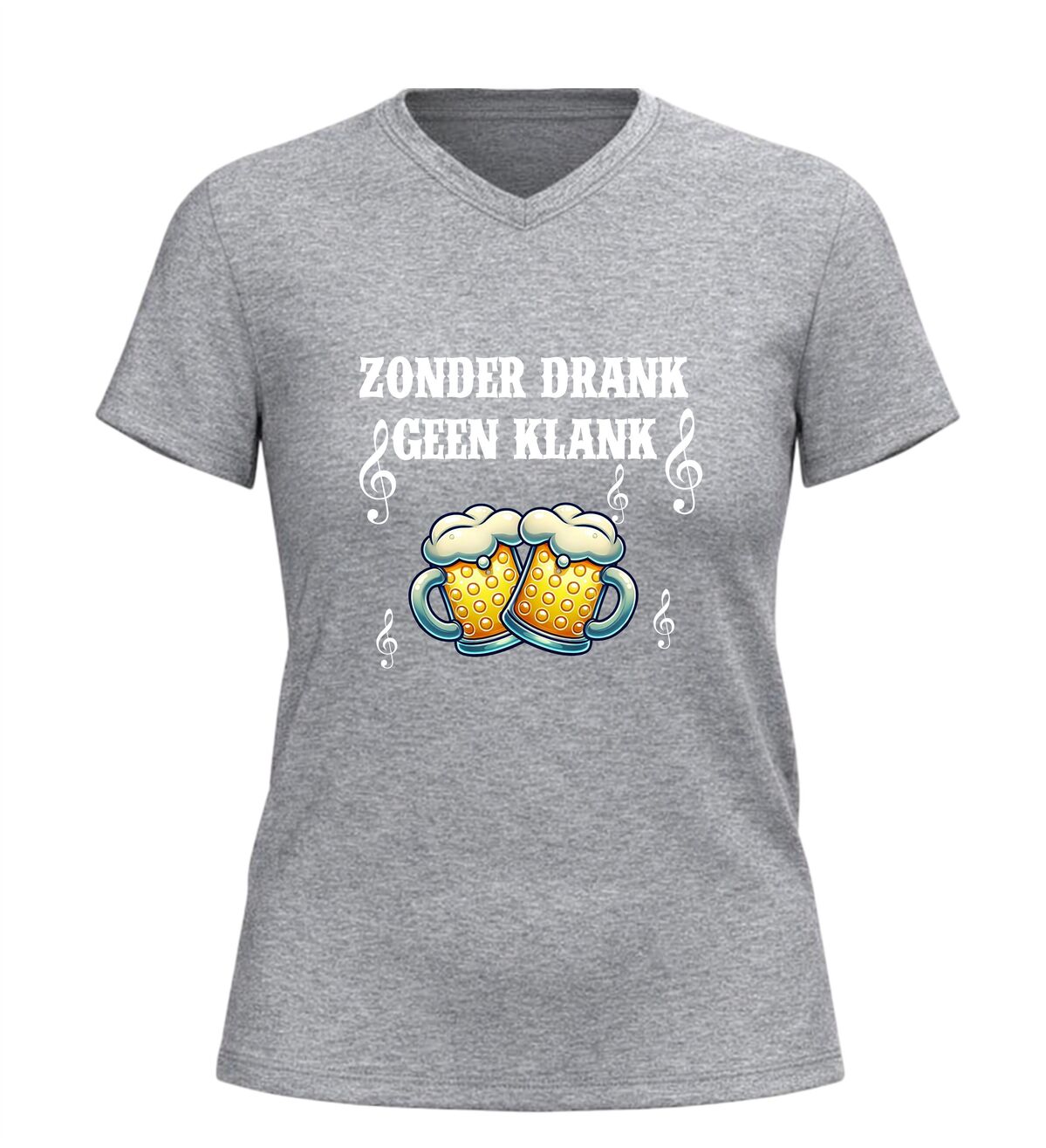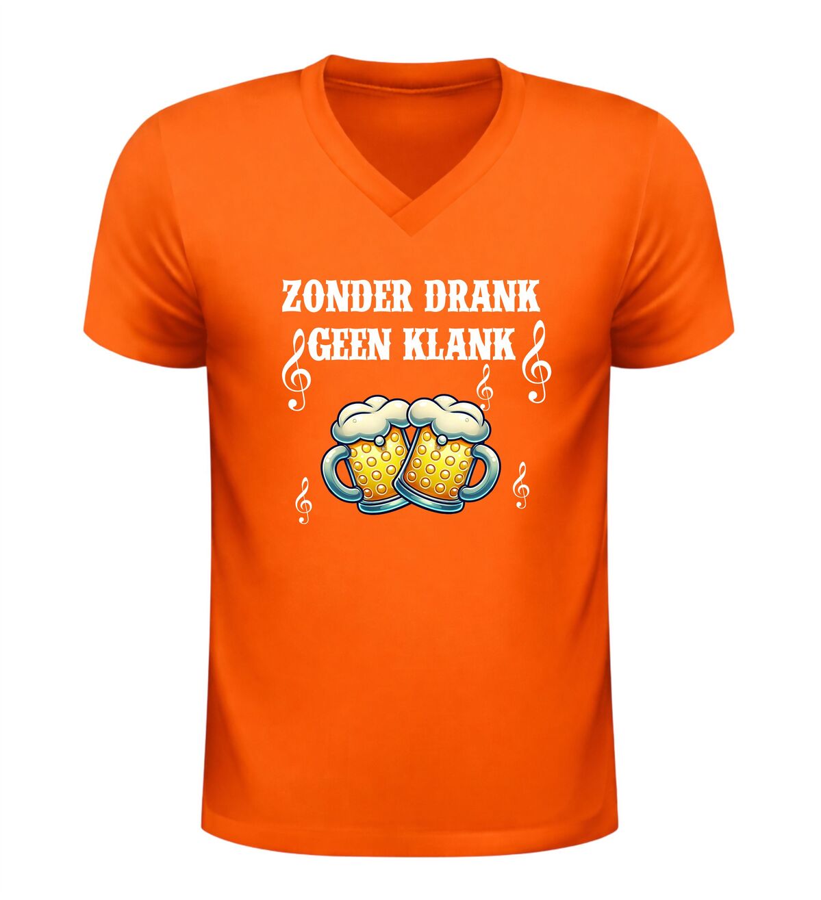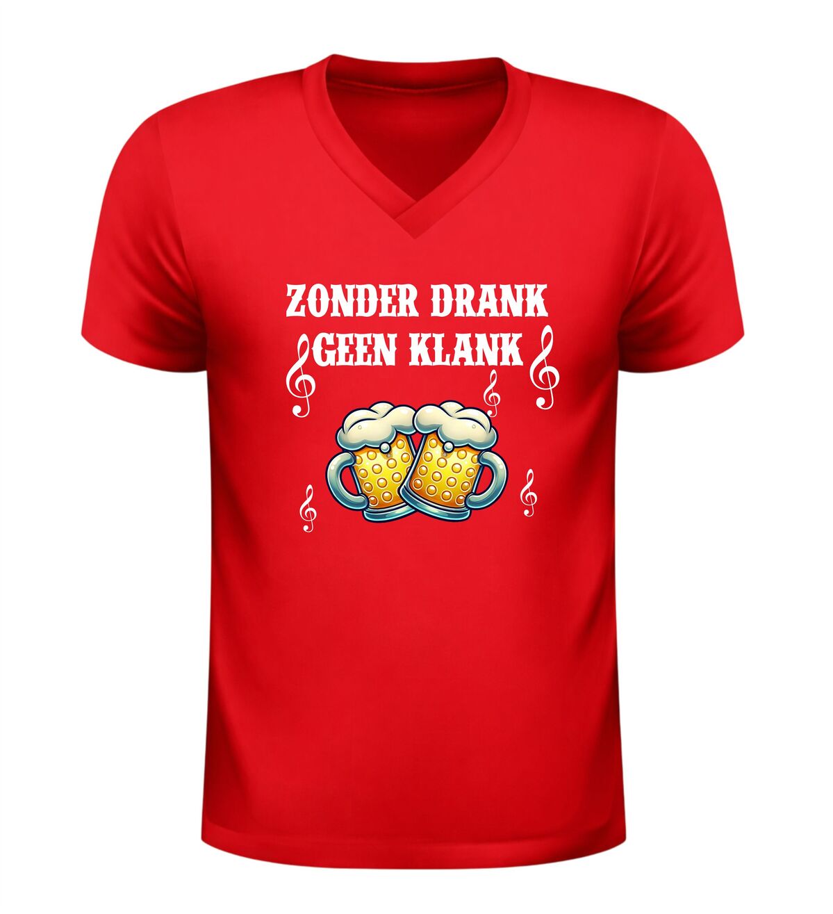 Dit V-hals shirt voor dames en heren met de tekst Zonder Drank Geen Klank is gemaakt voor iedereen die houdt van feest, carnaval en gezelligheid. Tijdens carnaval draait alles om feest, muziek en samen carnaval vieren, en dit shirt brengt dat perfecte feestgevoel direct naar voren. Of je nu carnaval viert in de kroeg, op straat, tijdens een optocht of op een groot carnaval feest, dit shirt laat zien dat jij carnaval en feest begrijpt. Carnaval is hét feest waar drank, muziek en plezier samenkomen, en precies dat straalt dit feest shirt uit.