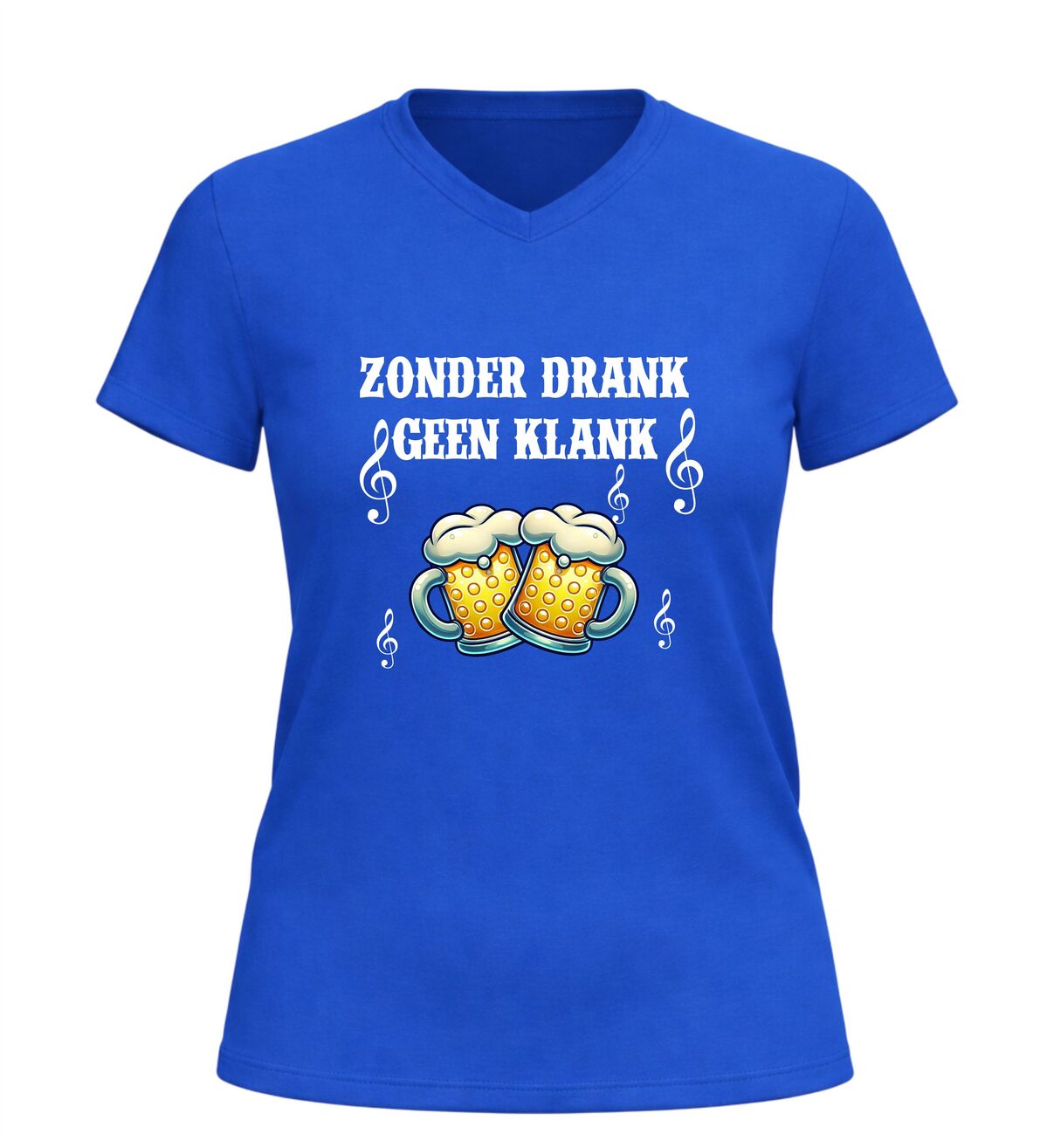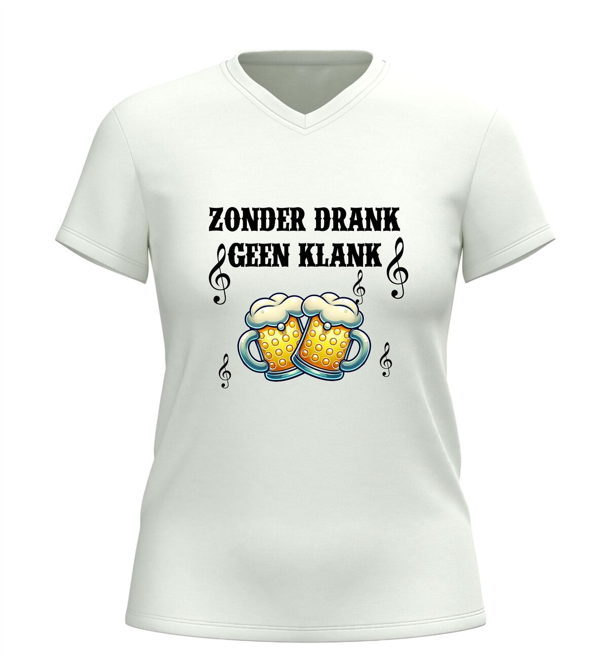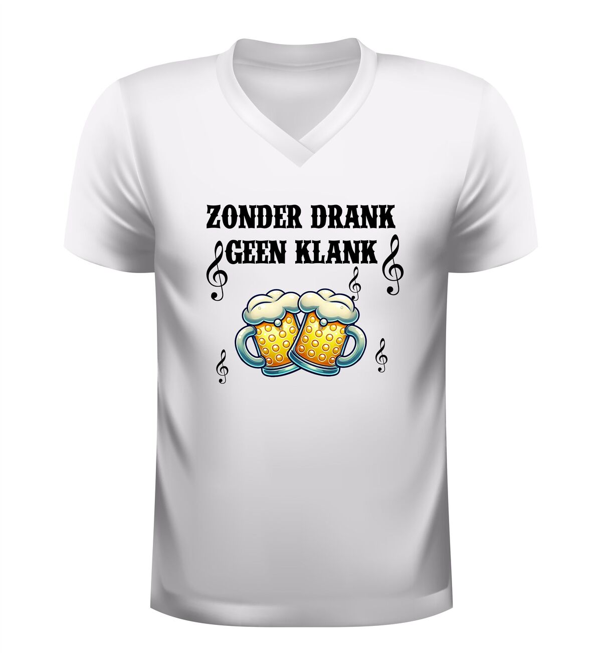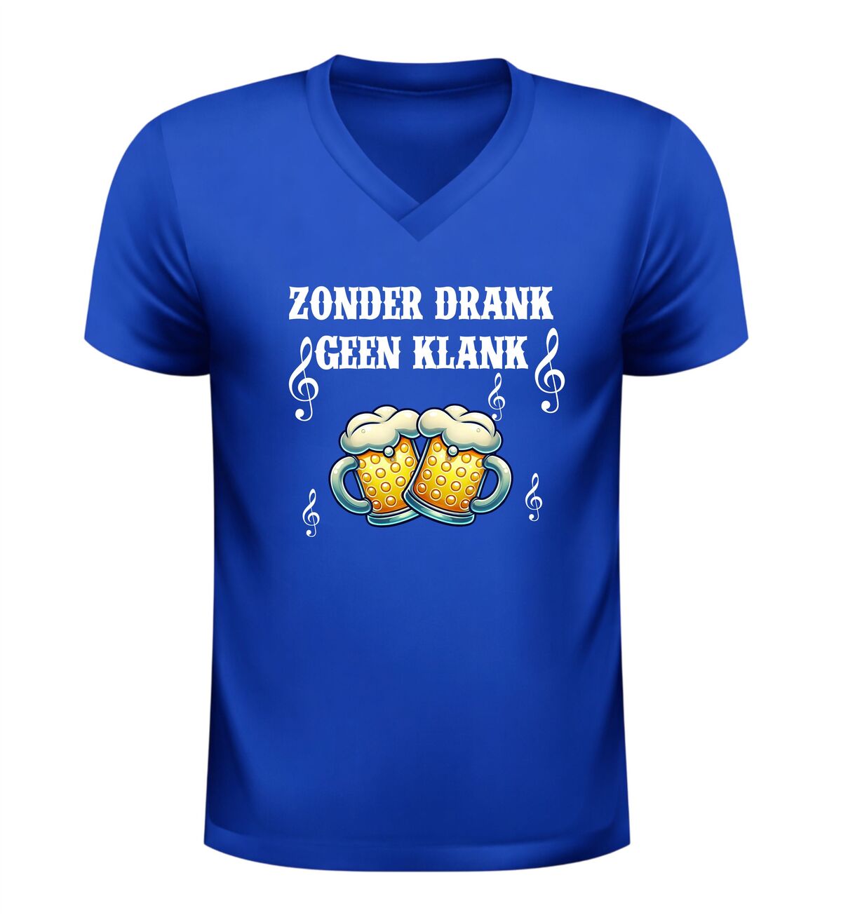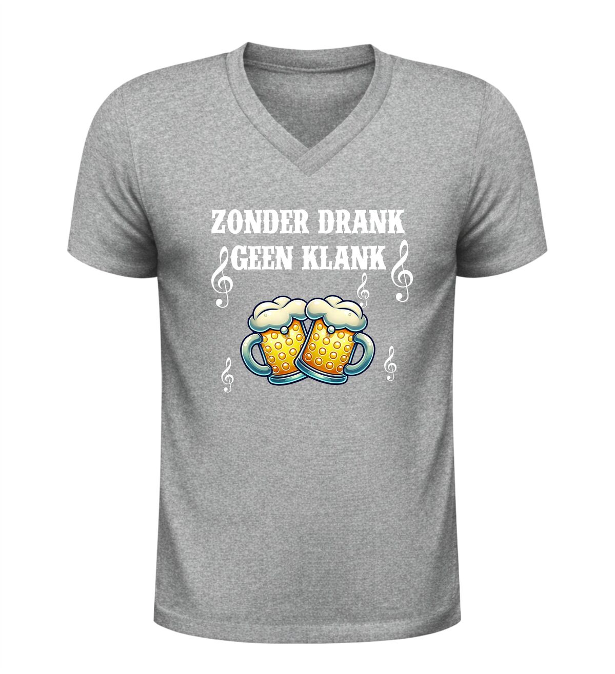 Dit V-hals shirt voor dames en heren met de tekst Zonder Drank Geen Klank is gemaakt voor iedereen die houdt van feest, carnaval en gezelligheid. Tijdens carnaval draait alles om feest, muziek en samen carnaval vieren, en dit shirt brengt dat perfecte feestgevoel direct naar voren. Of je nu carnaval viert in de kroeg, op straat, tijdens een optocht of op een groot carnaval feest, dit shirt laat zien dat jij carnaval en feest begrijpt. Carnaval is hét feest waar drank, muziek en plezier samenkomen, en precies dat straalt dit feest shirt uit.