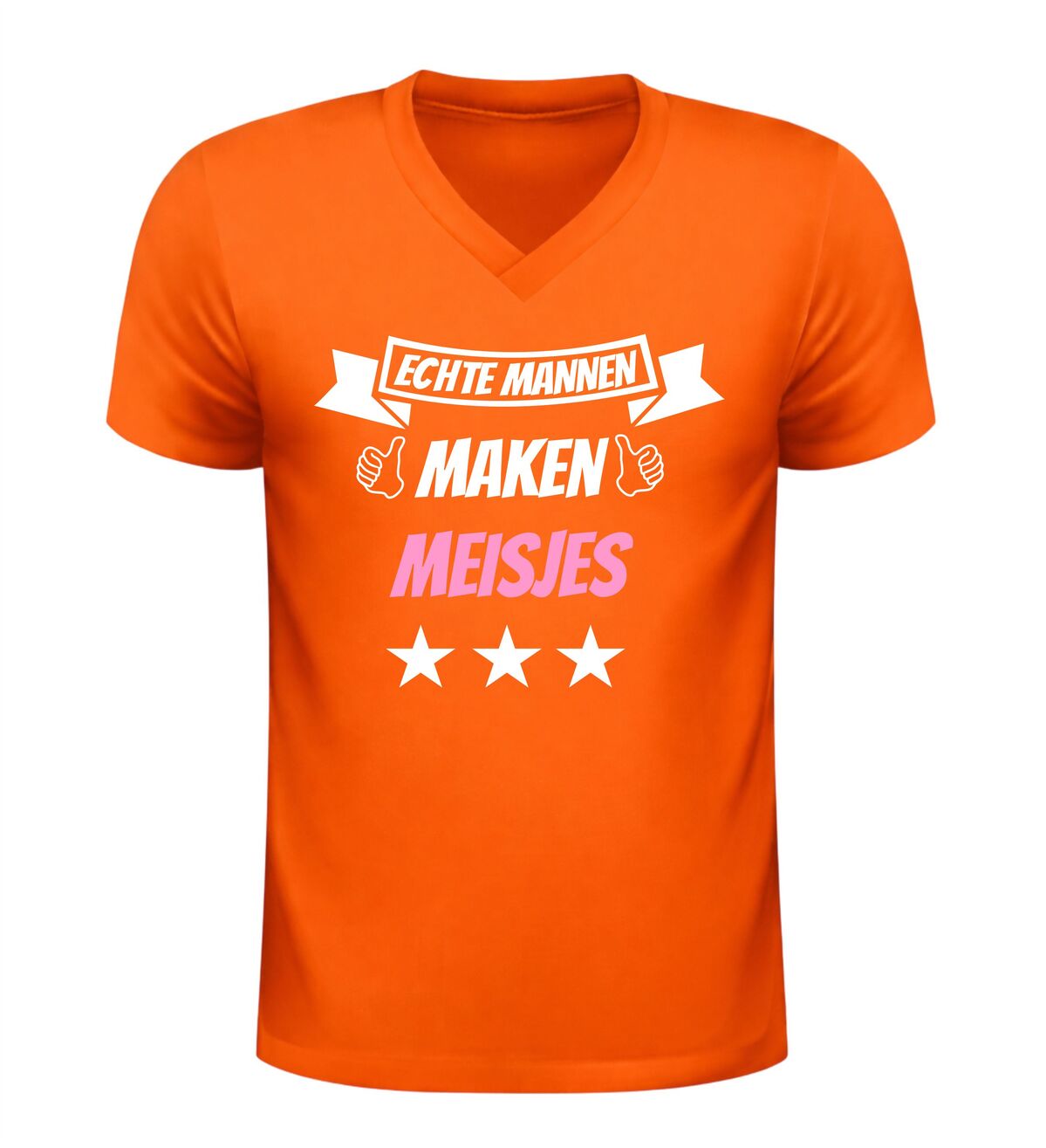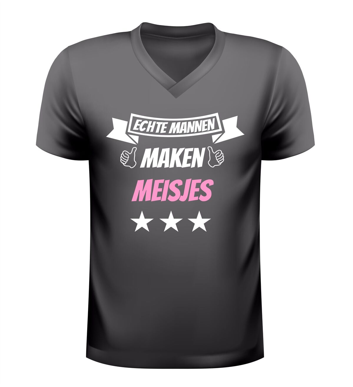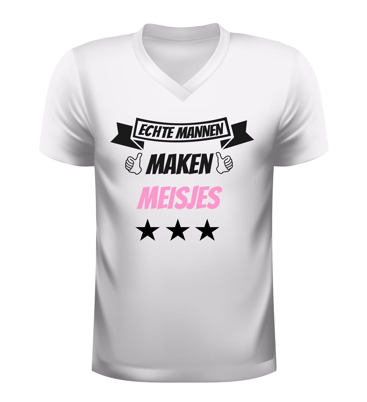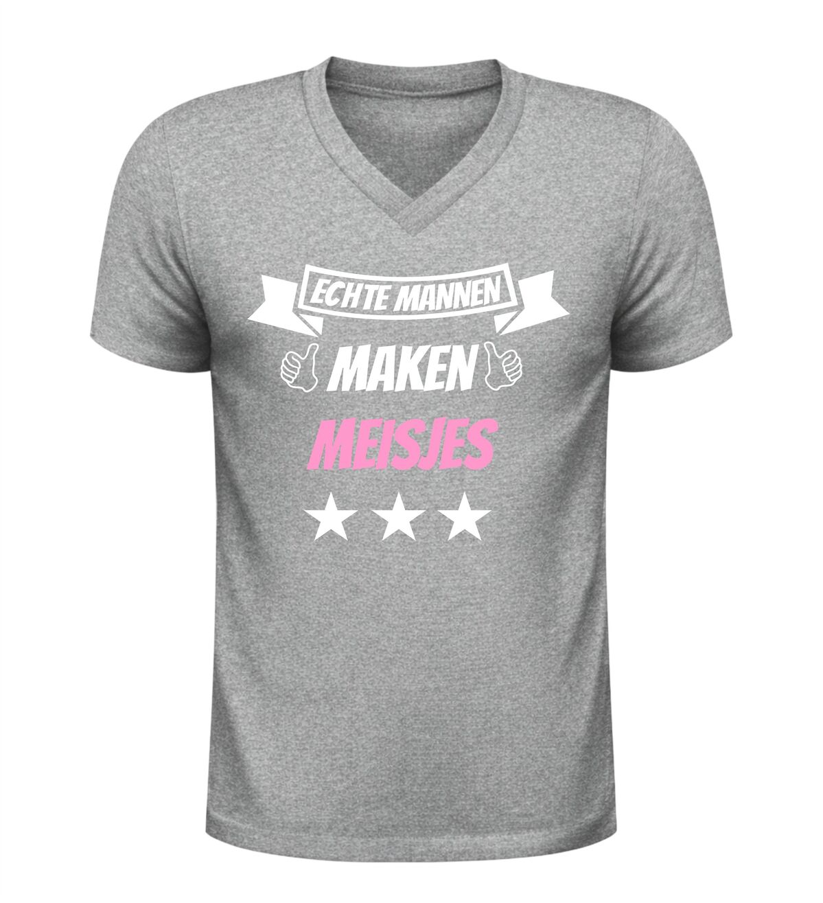Bestel dit V-hals shirt met de tekst echte mannen maken meisjes en maak elke gelegenheid nét een stukje leuker.