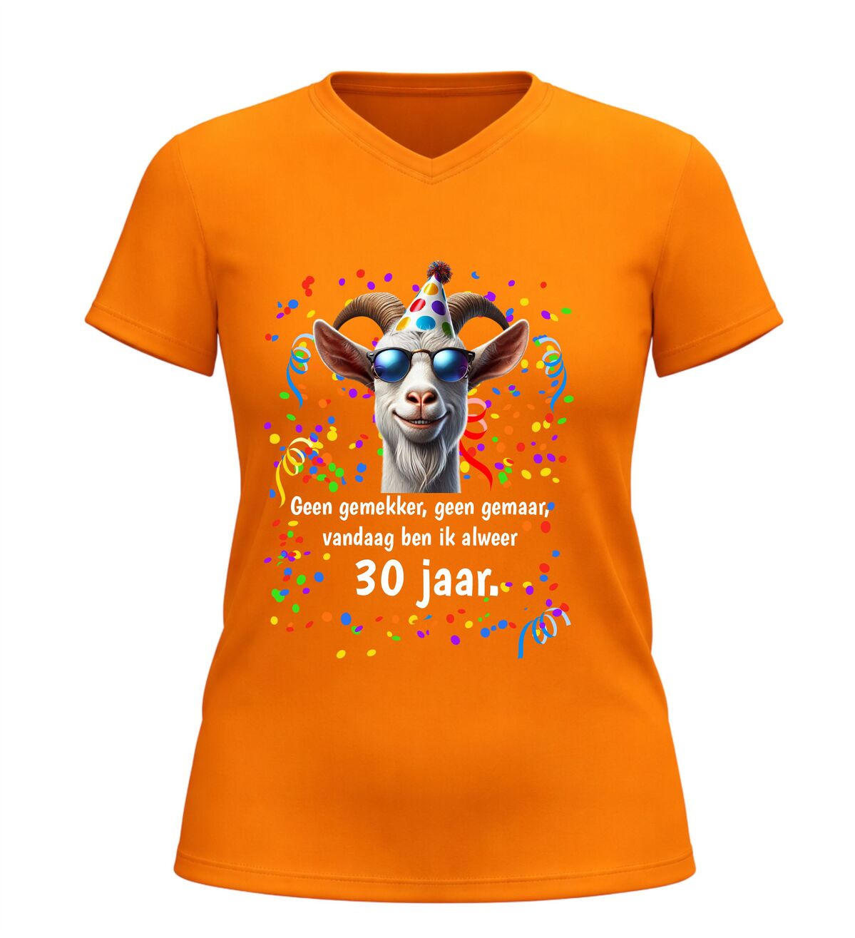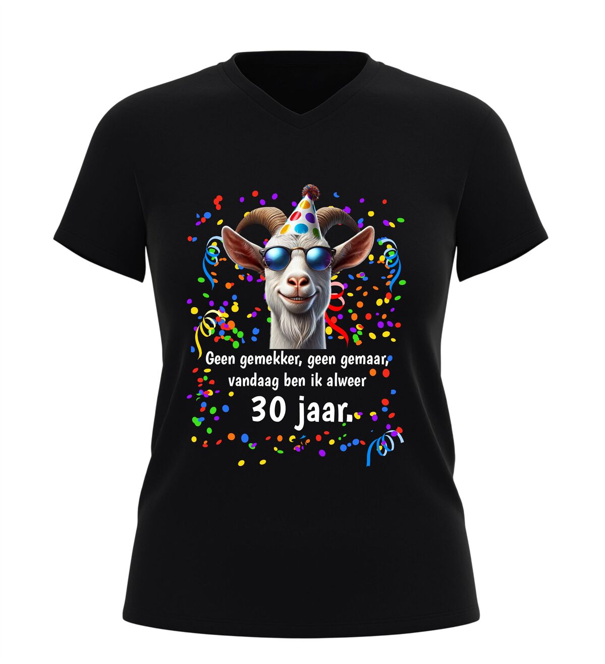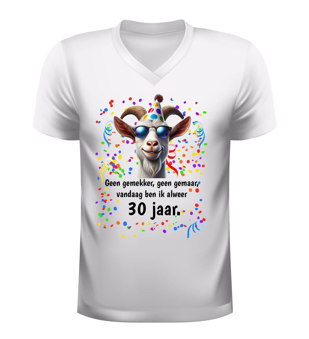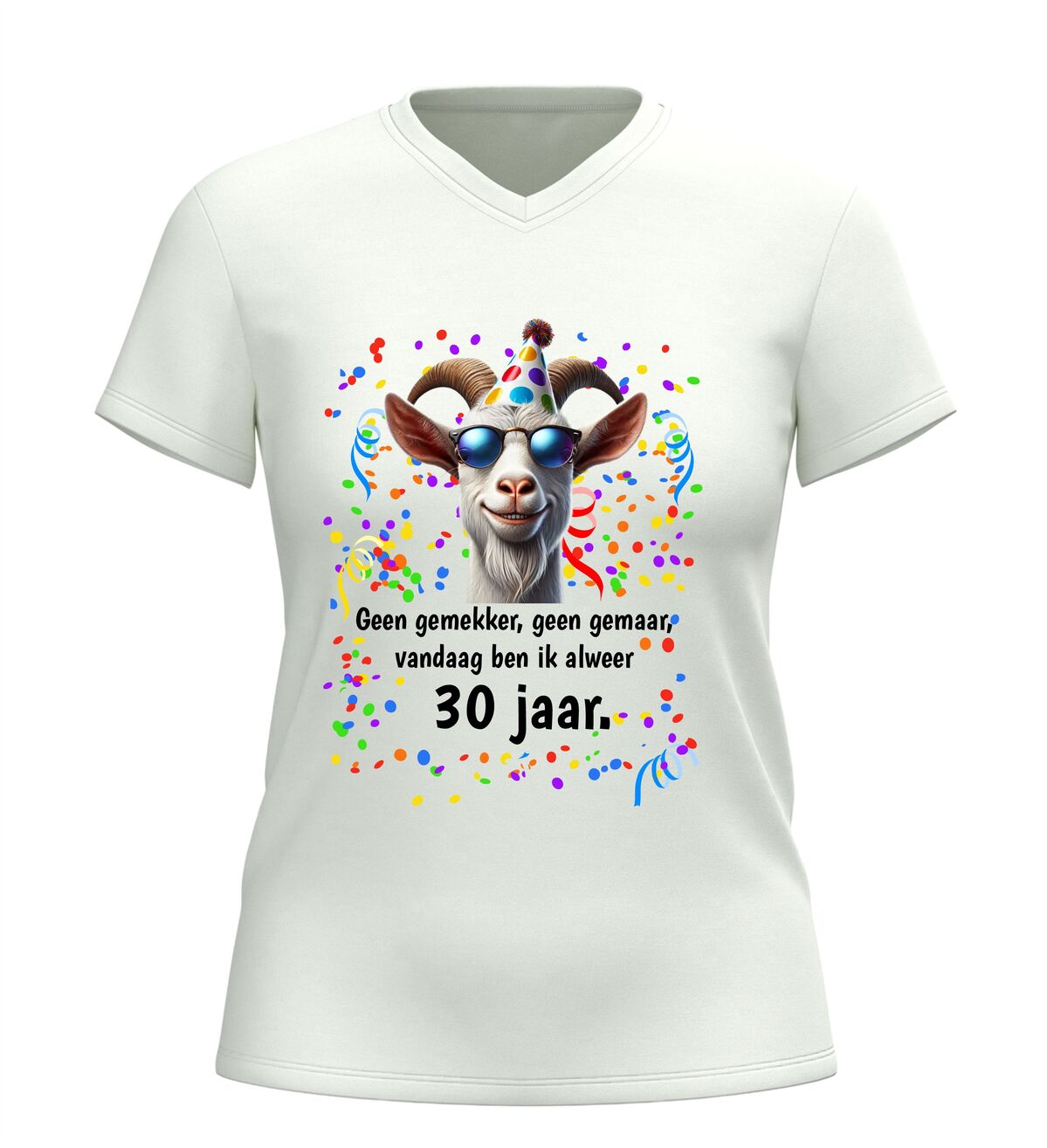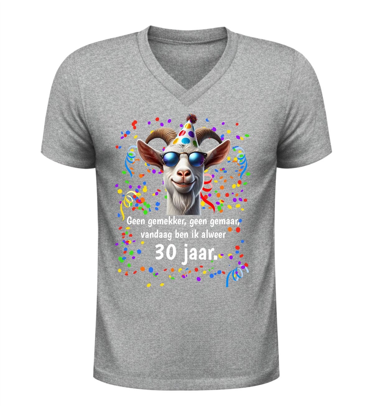 Vier je 30ste verjaardag in stijl met dit V-hals shirt met de tekst geen gemekker geen gemaar vandaag ben ik alweer 30 jaar dit grappige verjaardag t-shirt is perfect voor iedereen die zijn of haar dertigste verjaardag met een knipoog wil vieren. De speelse tekst maakt direct duidelijk dat het tijd is voor feest zonder gezeur, terwijl de moderne V-hals zorgt voor een stijlvolle en eigentijdse uitstraling.