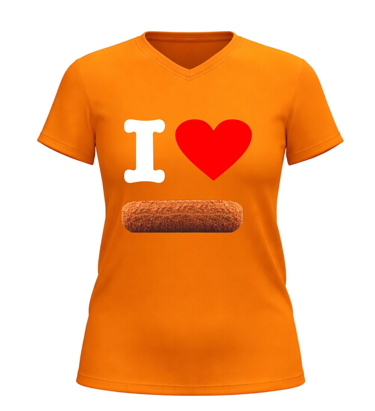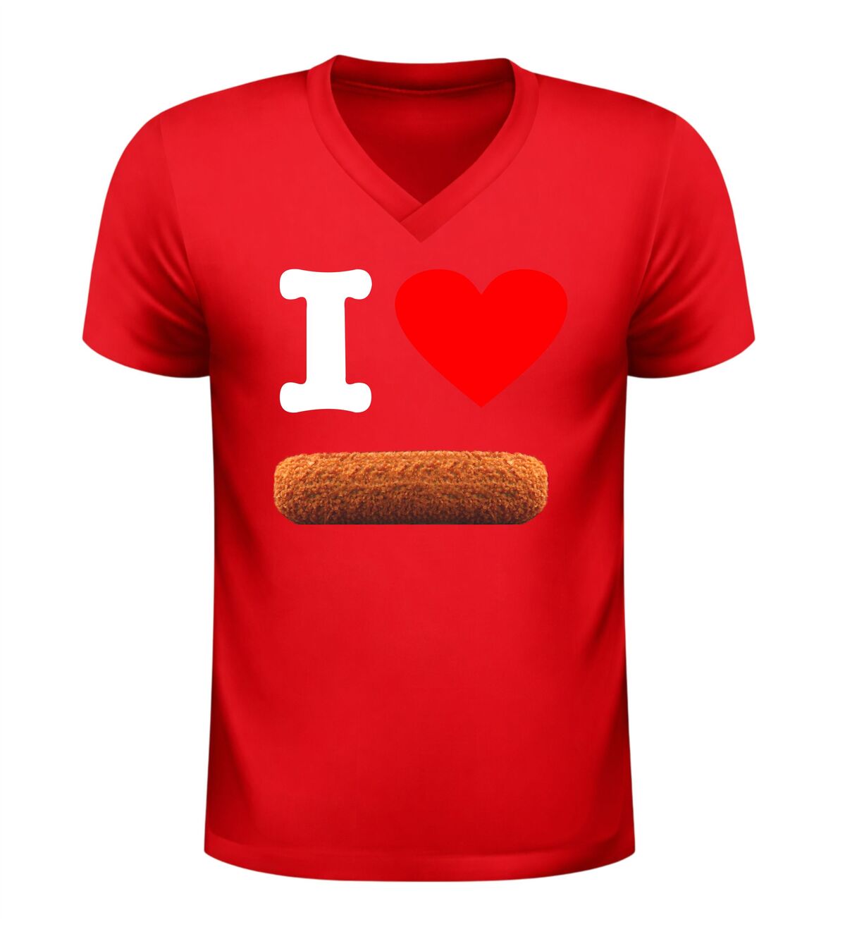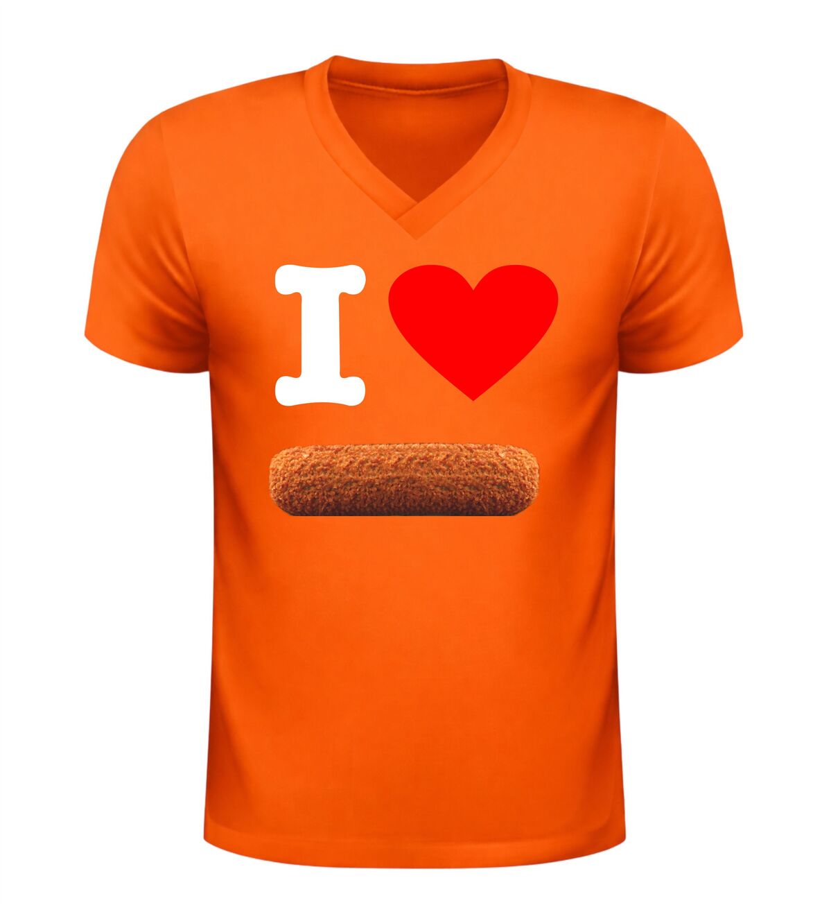 Dit V-hals snack shirt met de tekst I love kroket en een herkenbare afbeelding van een kroket is een must-have voor iedereen die dol is op deze iconische Nederlandse snack. Het speelse en humoristische ontwerp laat direct zien waar jouw snackhart ligt en maakt het shirt perfect voor casual gebruik, feestjes, festivals of een gezellige avond met vrienden. De combinatie van de duidelijke tekst en de smakelijke kroket-afbeelding zorgt voor een vrolijke en herkenbare uitstraling die gegarandeerd reacties oproept. Dankzij de comfortabele V-hals en fijne pasvorm draagt het shirt prettig, of je nu op pad bent, op een terras zit of een snackmomentje meepakt. Dit I Love Kroket V-hals shirt is niet alleen leuk om zelf te dragen, maar ook een origineel cadeau voor echte snackliefhebbers. Met dit snack shirt voeg je een flinke dosis humor en Nederlandse gezelligheid toe aan je outfit.