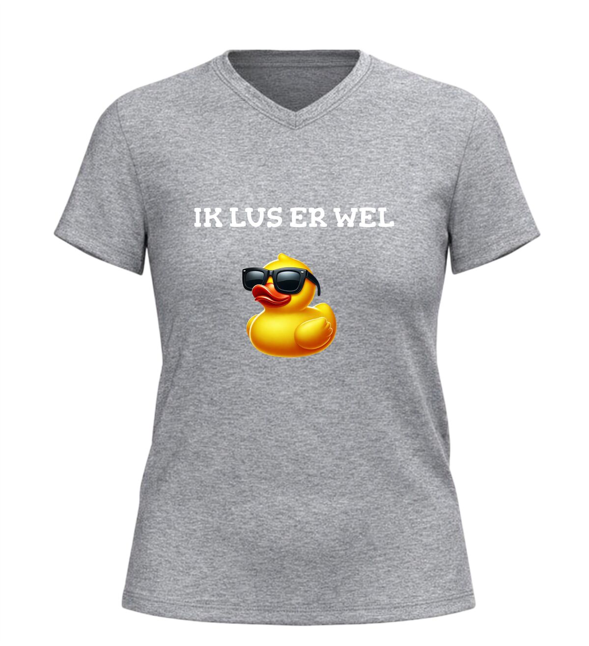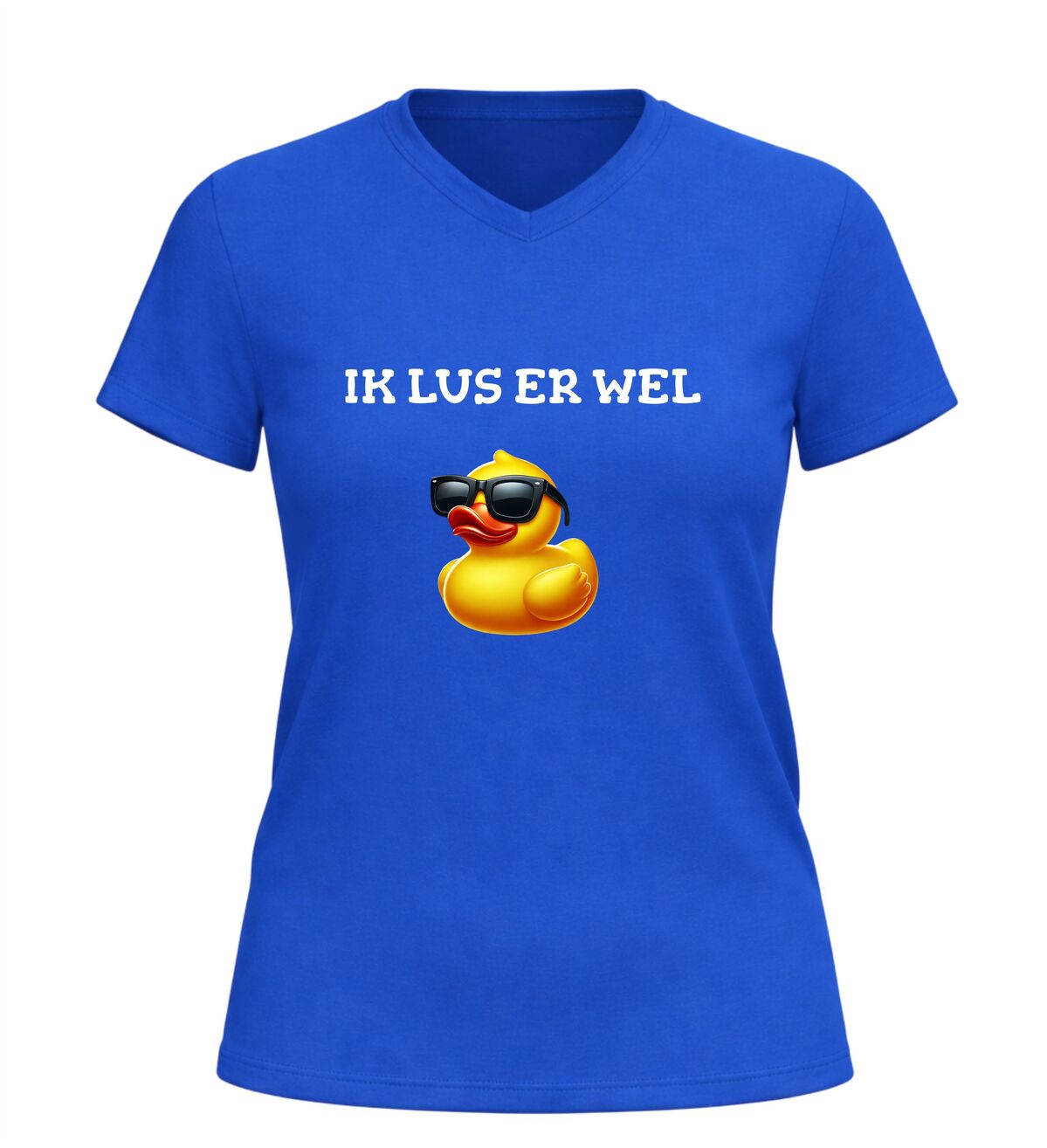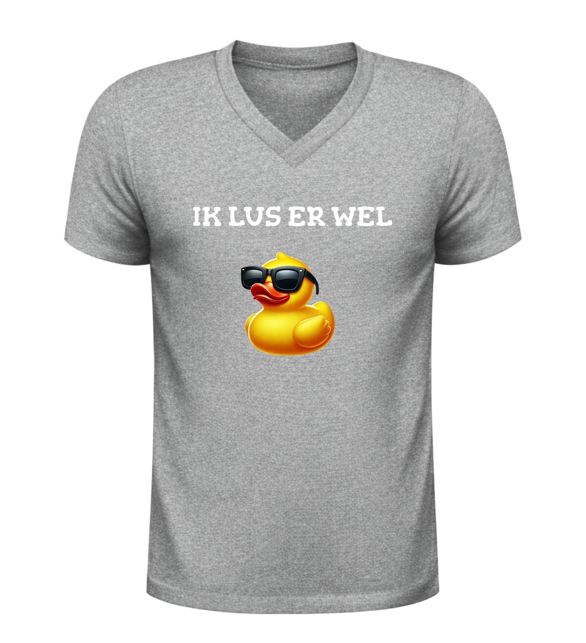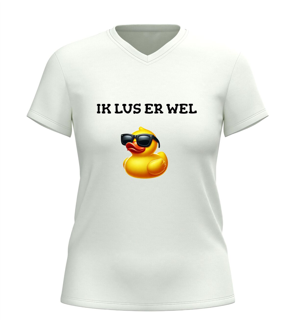 Dit v-hals shirt met de tekst ik lus er wel eentje en een vrolijke afbeelding van een eend met zonnebril is een echte blikvanger voor carnaval, feestjes en andere gezellige momenten. Het speelse en humoristische ontwerp straalt ontspanning en feestplezier uit en zorgt direct voor een lach bij iedereen die het ziet. Ideaal voor carnavalsoptochten, kroegentochten, festivals of een themafeest waarbij een luchtige en grappige outfit perfect past. De comfortabele V-hals en prettige pasvorm maken het shirt fijn om te dragen tijdens lange avonden vol gezelligheid. De combinatie van de bekende uitspraak en de grappige eend met zonnebril geeft het shirt een unieke en herkenbare uitstraling. Met dit feestelijke V-hals shirt laat je zien dat je zin hebt in gezelligheid en maak je van elke gelegenheid een feestje.