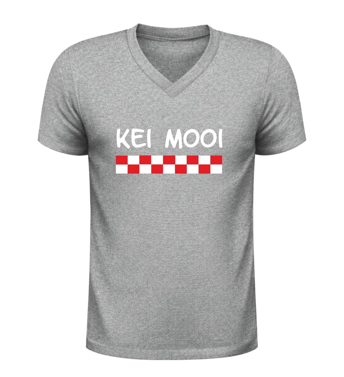 Dit v-hals shirt met de Brabantse tekst kei mooi en de kenmerkende rood-witte kleuren van Brabant is een echte blikvanger voor iedereen die trots is op zijn Brabantse roots. Het ontwerp straalt gezelligheid en nuchtere trots uit en past perfect bij het warme, bourgondische karakter van Brabant. Dankzij de comfortabele V-hals en prettige pasvorm is dit shirt ideaal om te dragen tijdens een Brabants feestje, carnaval, een dorpsfeest of gewoon in je vrije tijd. De krachtige kleuren en herkenbare Brabantse uitstraling maken dit shirt niet alleen leuk om zelf te dragen, maar ook perfect als cadeau voor elke echte Brabander die graag laat zien waar hij of zij vandaan komt. Met dit kei mooi v-hals shirt draag je Brabantse trots op een stijlvolle en feestelijke manier.