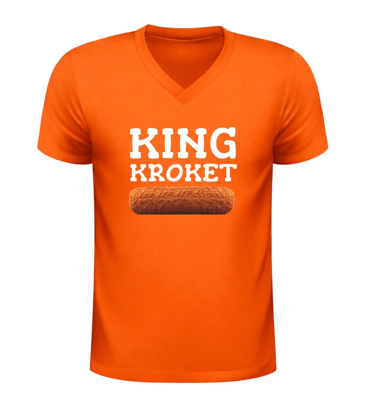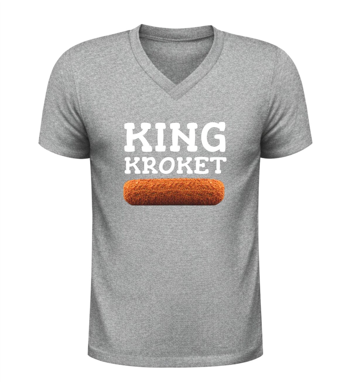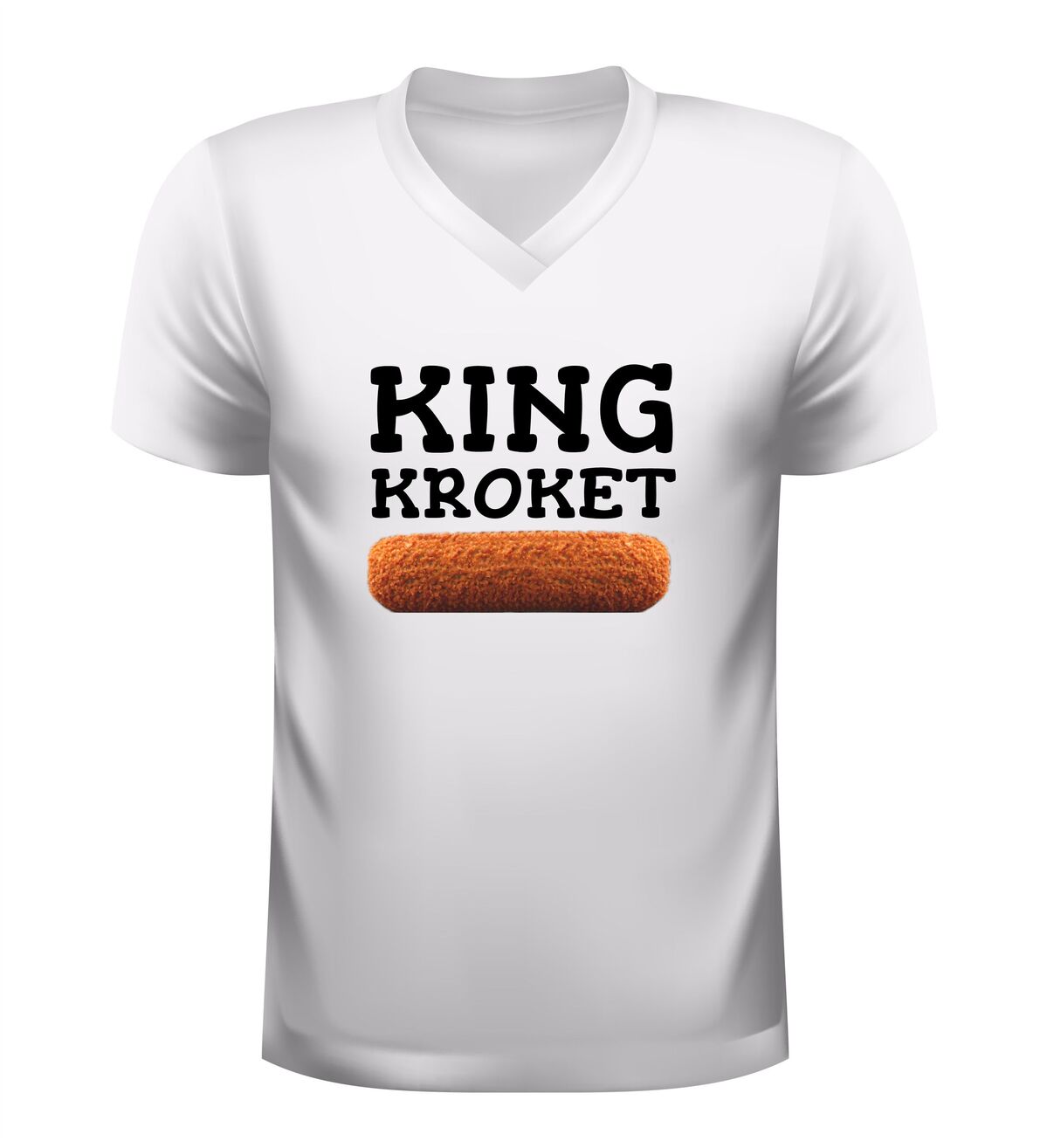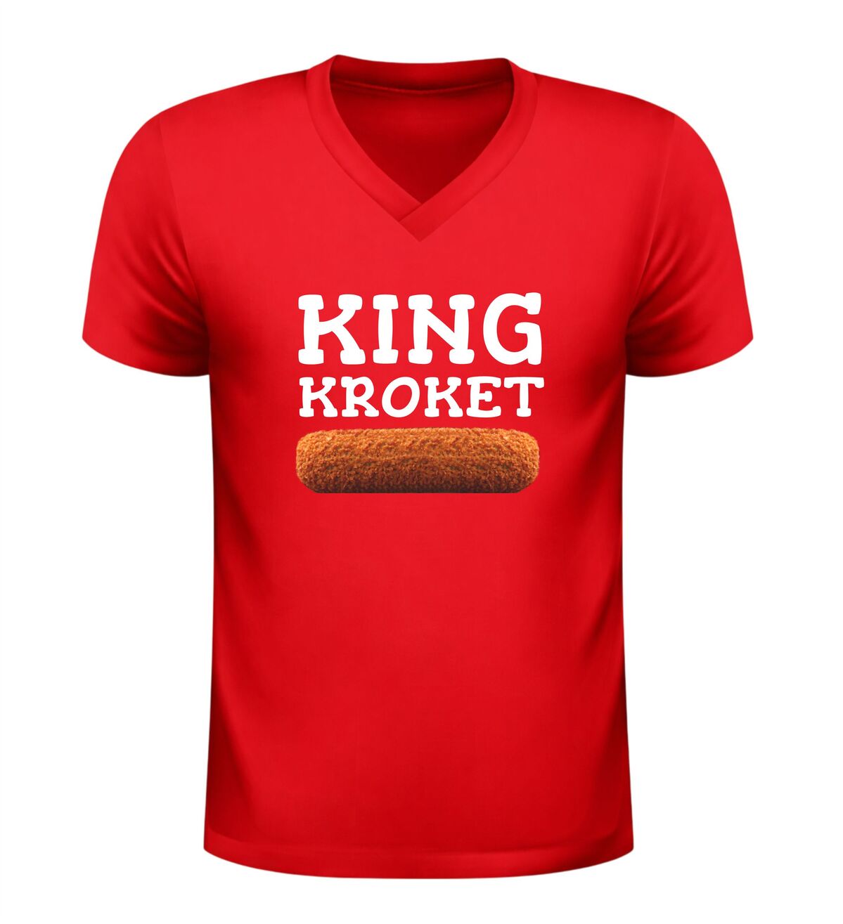 Dit v-hals shirt met king kroket opdruk is de perfecte keuze voor iedereen die houdt van humor en de Nederlandse snackcultuur. Het shirt heeft een stijlvolle v-hals en is bedrukt met de tekst King Kroket en een herkenbare afbeelding van een kroket, waardoor het direct opvalt. Dit grappige kroket shirt is ideaal voor mannen die hun liefde voor snacks willen laten zien tijdens festivals, feestjes of gewoon in het dagelijks leven. Dankzij het comfortabele draaggevoel en de moderne pasvorm is dit V-hals shirt met kroket print niet alleen leuk om te zien, maar ook prettig om te dragen. Het King Kroket T-shirt is bovendien een origineel cadeau voor een kroketliefhebber, snackfan of iemand met gevoel voor humor.