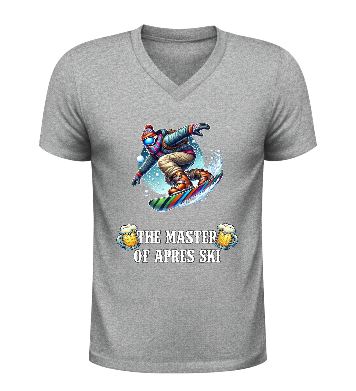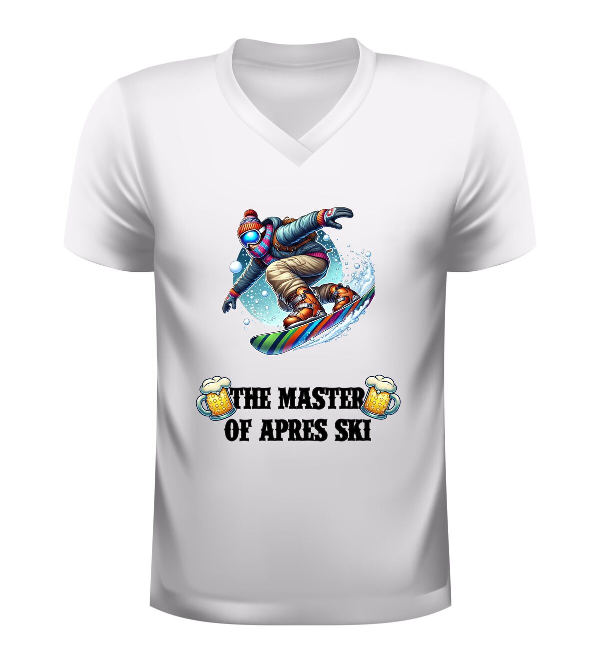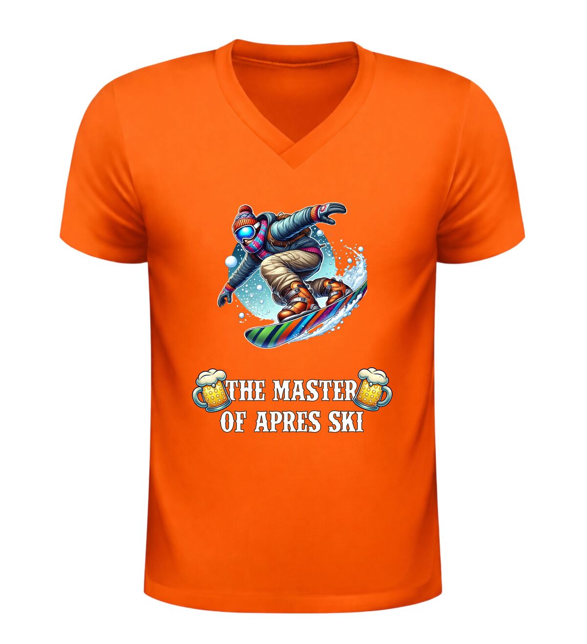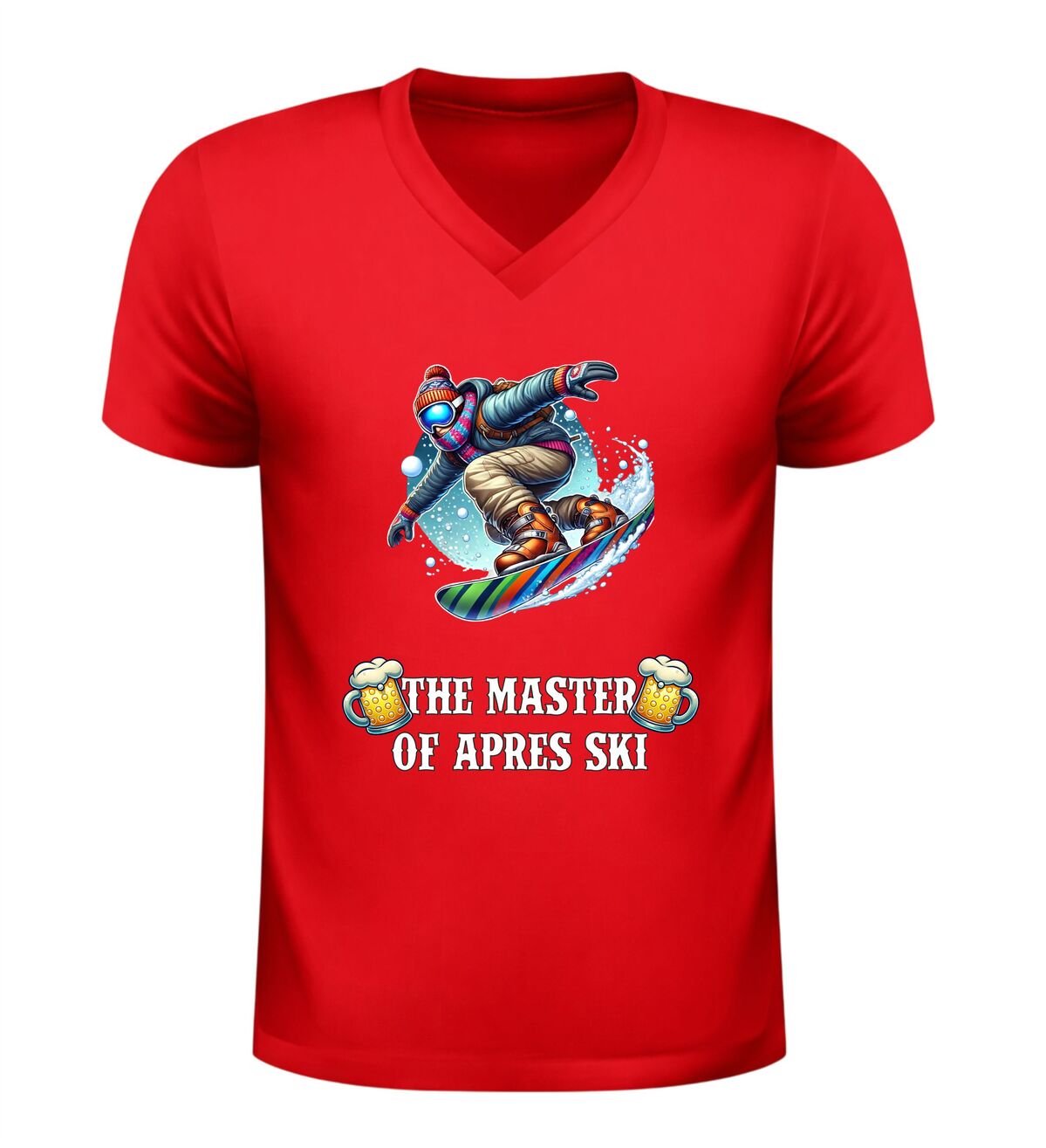 Dit V-hals shirt met de tekst “master of après ski en een feestelijke afbeelding van bier en een snowboarder is hét perfecte shirt voor iedereen die wintersport en gezelligheid moeiteloos combineert. Het ontwerp straalt humor, feest en après-ski sfeer uit en maakt het shirt ideaal voor skivakanties, après-ski feesten, wintersporttrips en gezellige avonden in de sneeuw of in de kroeg. De combinatie van de stoere tekst, het bier en de skiër laat direct zien dat jij de kunst van après-ski volledig beheerst. Dankzij de comfortabele V-hals en prettige pasvorm draagt het shirt heerlijk tijdens lange dagen op de piste en avonden vol muziek, dans en gezelligheid. Dit après-ski V-hals shirt is niet alleen leuk om zelf te dragen, maar ook een origineel cadeau voor wintersportliefhebbers en feestgangers. Met dit shirt steel je de show in de après-ski en laat je zien wie de echte master is.