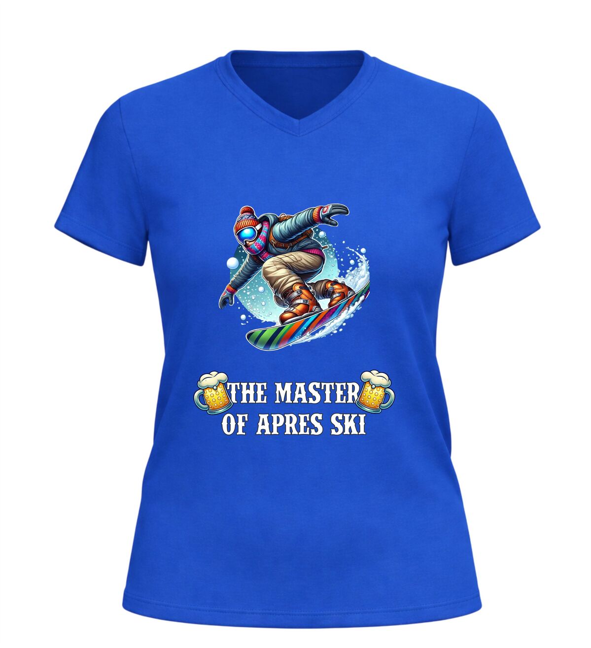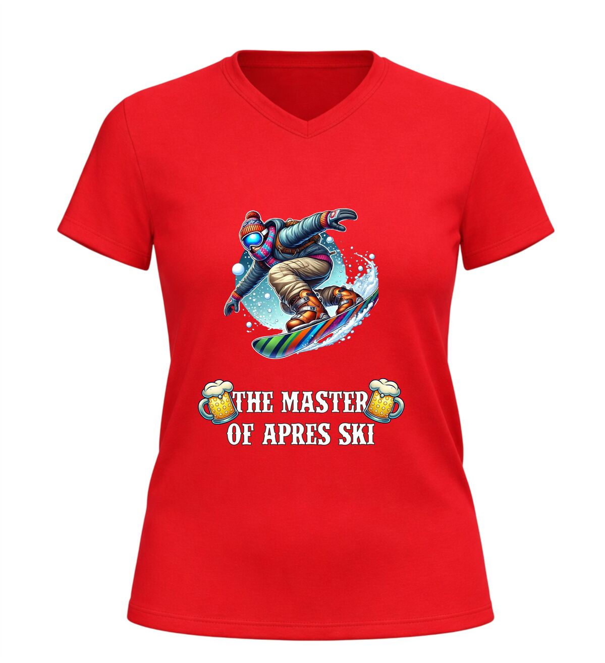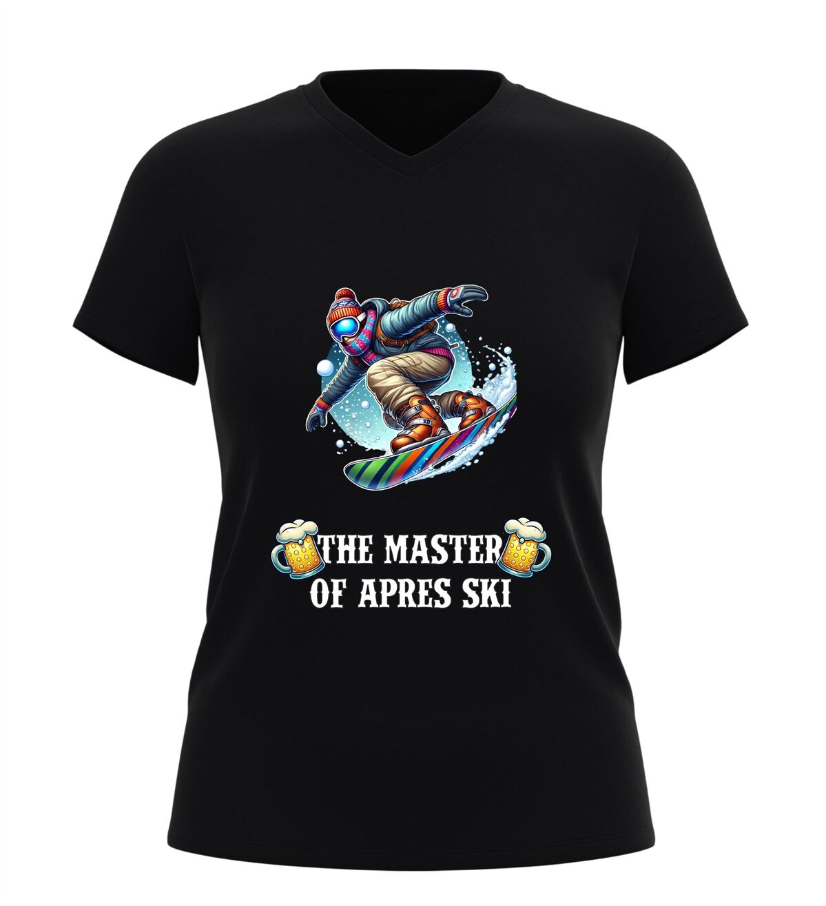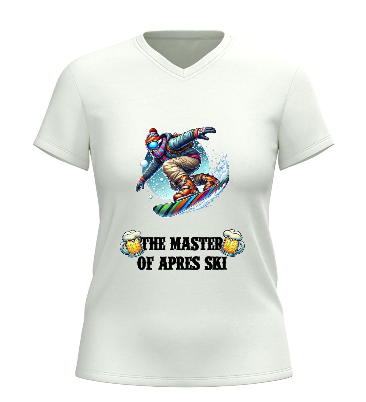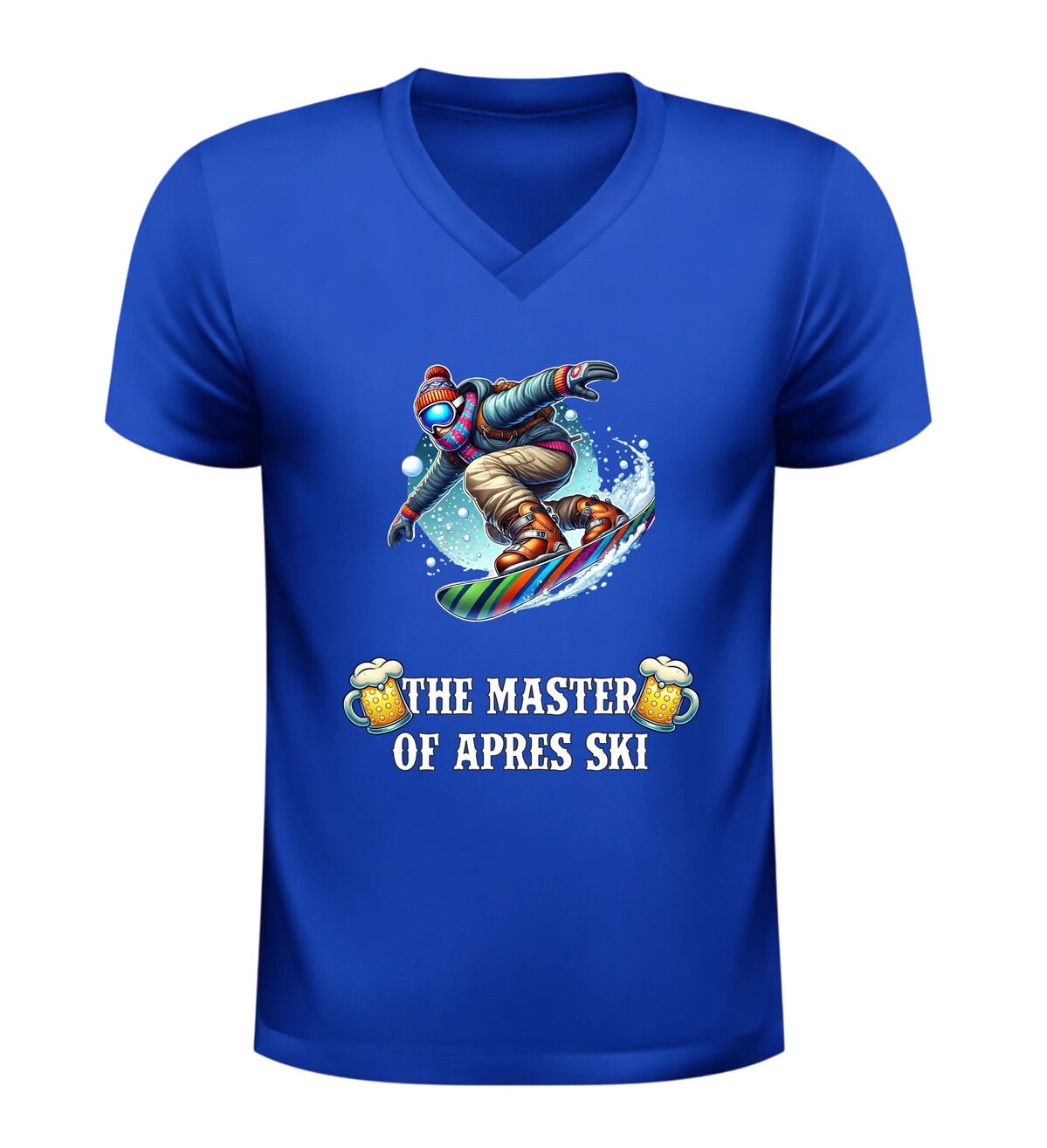 Dit V-hals shirt met de tekst “master of après ski en een feestelijke afbeelding van bier en een snowboarder is hét perfecte shirt voor iedereen die wintersport en gezelligheid moeiteloos combineert. Het ontwerp straalt humor, feest en après-ski sfeer uit en maakt het shirt ideaal voor skivakanties, après-ski feesten, wintersporttrips en gezellige avonden in de sneeuw of in de kroeg. De combinatie van de stoere tekst, het bier en de skiër laat direct zien dat jij de kunst van après-ski volledig beheerst. Dankzij de comfortabele V-hals en prettige pasvorm draagt het shirt heerlijk tijdens lange dagen op de piste en avonden vol muziek, dans en gezelligheid. Dit après-ski V-hals shirt is niet alleen leuk om zelf te dragen, maar ook een origineel cadeau voor wintersportliefhebbers en feestgangers. Met dit shirt steel je de show in de après-ski en laat je zien wie de echte master is.