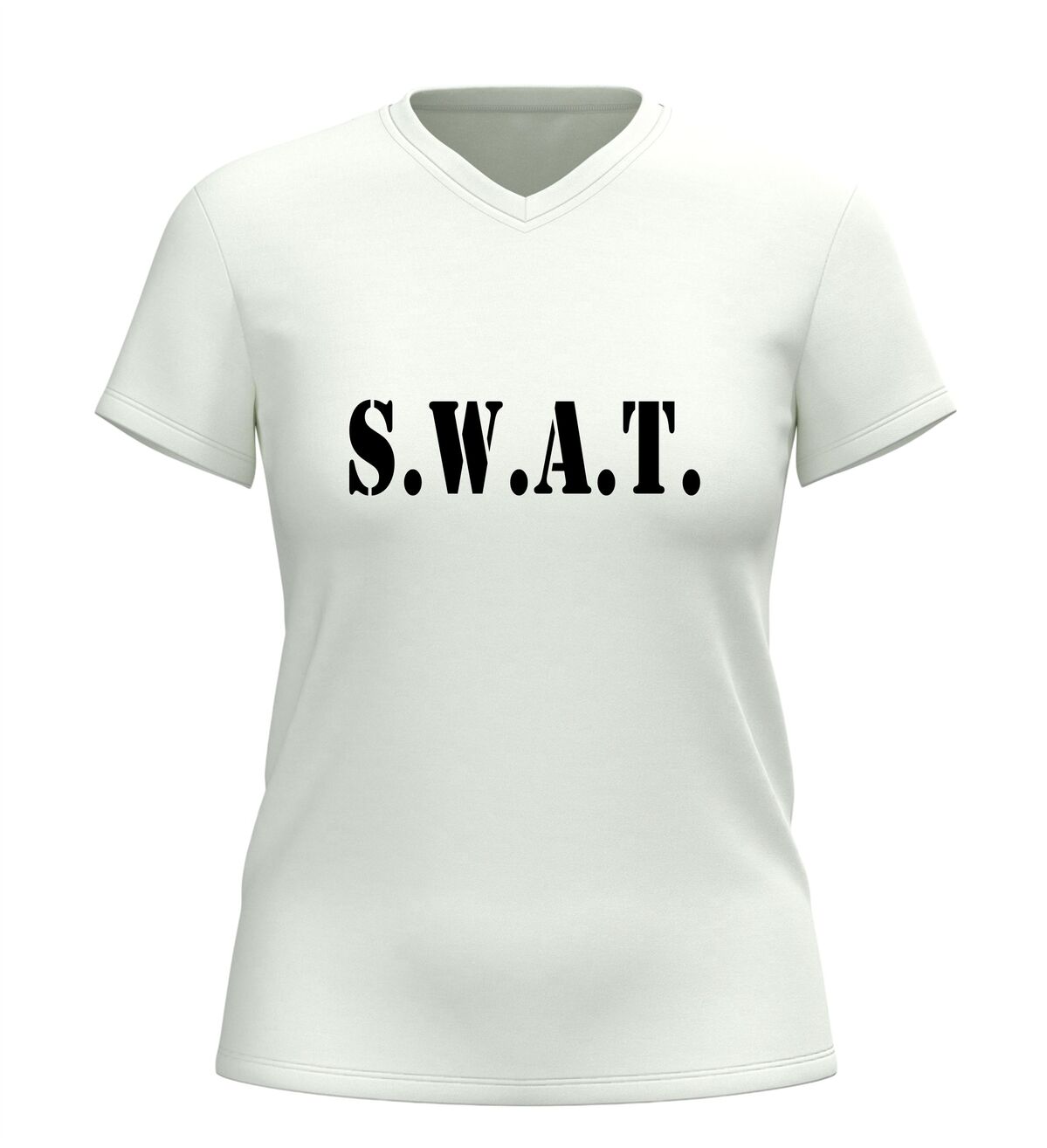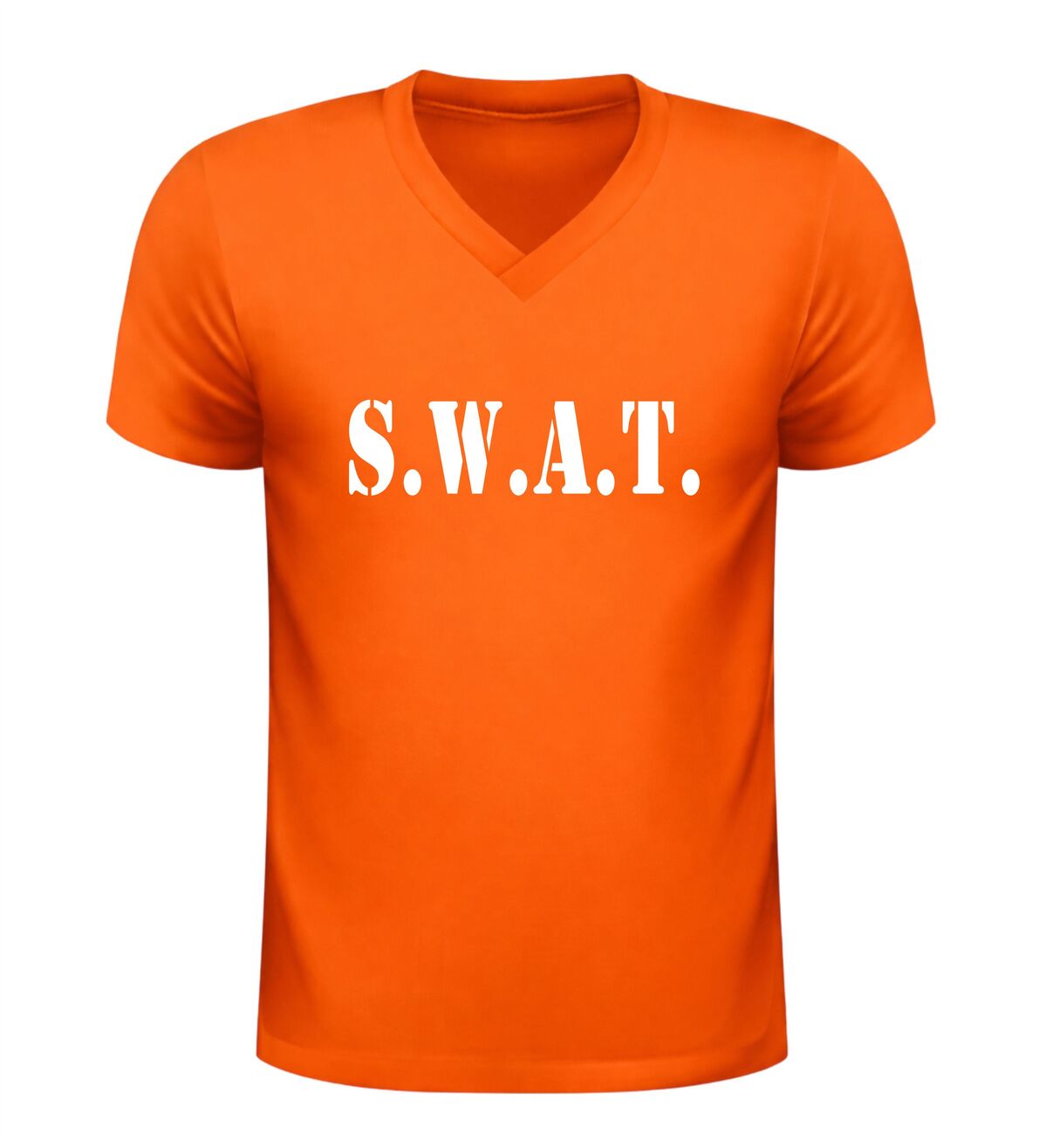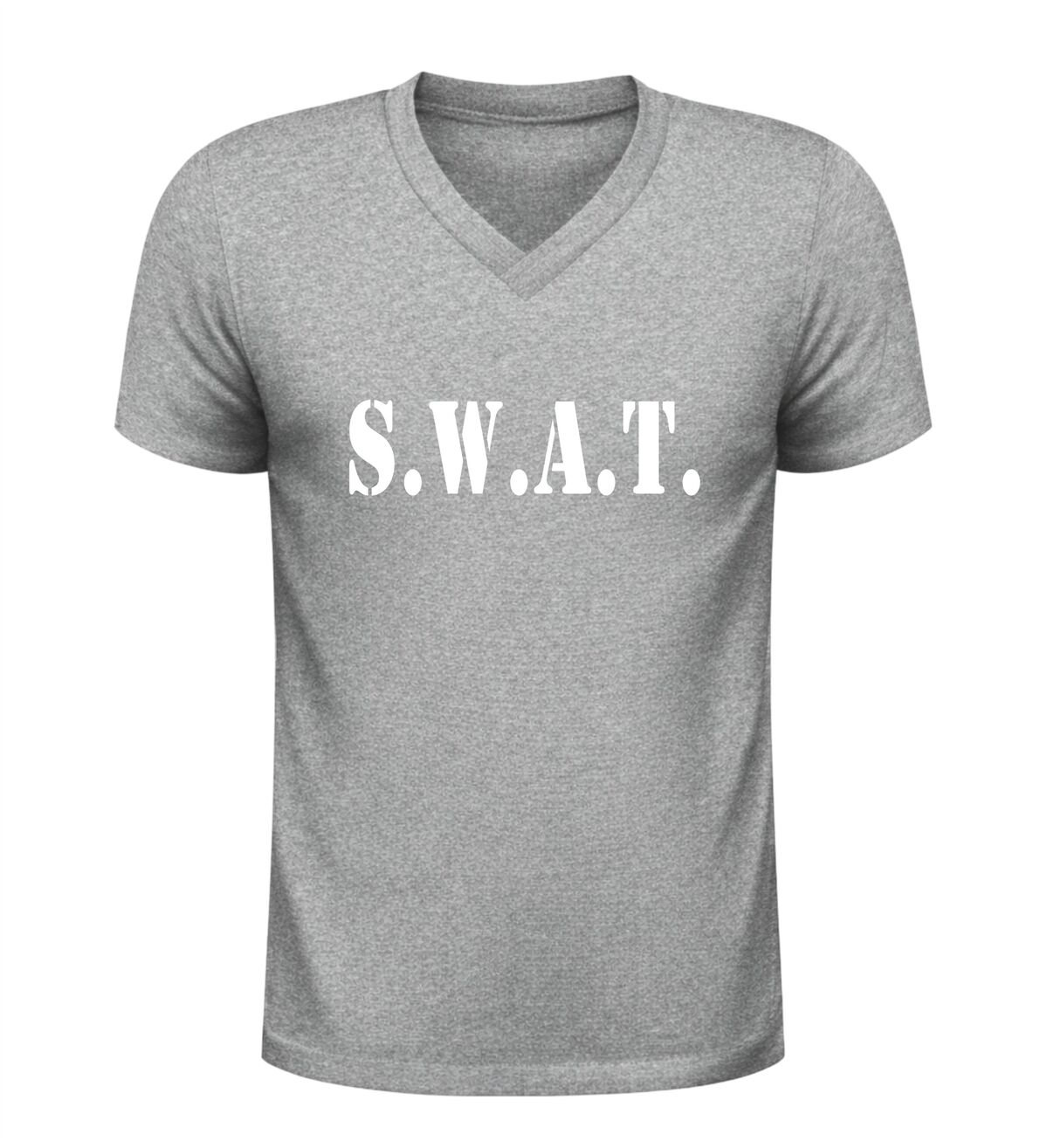 Dit S.W.A.T. V-hals shirt voor dames en heren is dé perfecte keuze voor carnaval, feestjes en party’s waar je wilt opvallen met een stoere en speelse uitstraling. Het unisex T-shirt heeft een moderne V-hals en draagt comfortabel, zelfs tijdens lange carnavalsavonden, festivals of dansfeesten. De opvallende S.W.A.T.-opdruk zorgt direct voor een herkenbare en krachtige look, waardoor het shirt ideaal is als feestoutfit, carnavalskleding of thema-kleding voor groepsfeestjes. Dankzij het luchtige en zachte materiaal blijft het shirt prettig zitten tijdens het feesten, terwijl de pasvorm geschikt is voor zowel mannen als vrouwen. Dit V-hals S.W.A.T. shirt is perfect te combineren met accessoires, petten of andere verkleeditems en past moeiteloos bij een party-, festival- of carnavalsstijl. Of je nu carnaval viert, een themafeest bezoekt of een vrijgezellenfeest hebt, met dit S.W.A.T. T-shirt kies je voor comfort, uitstraling en feestelijke impact in één.