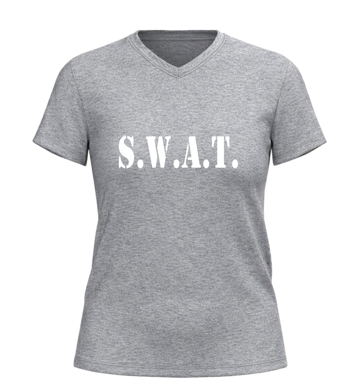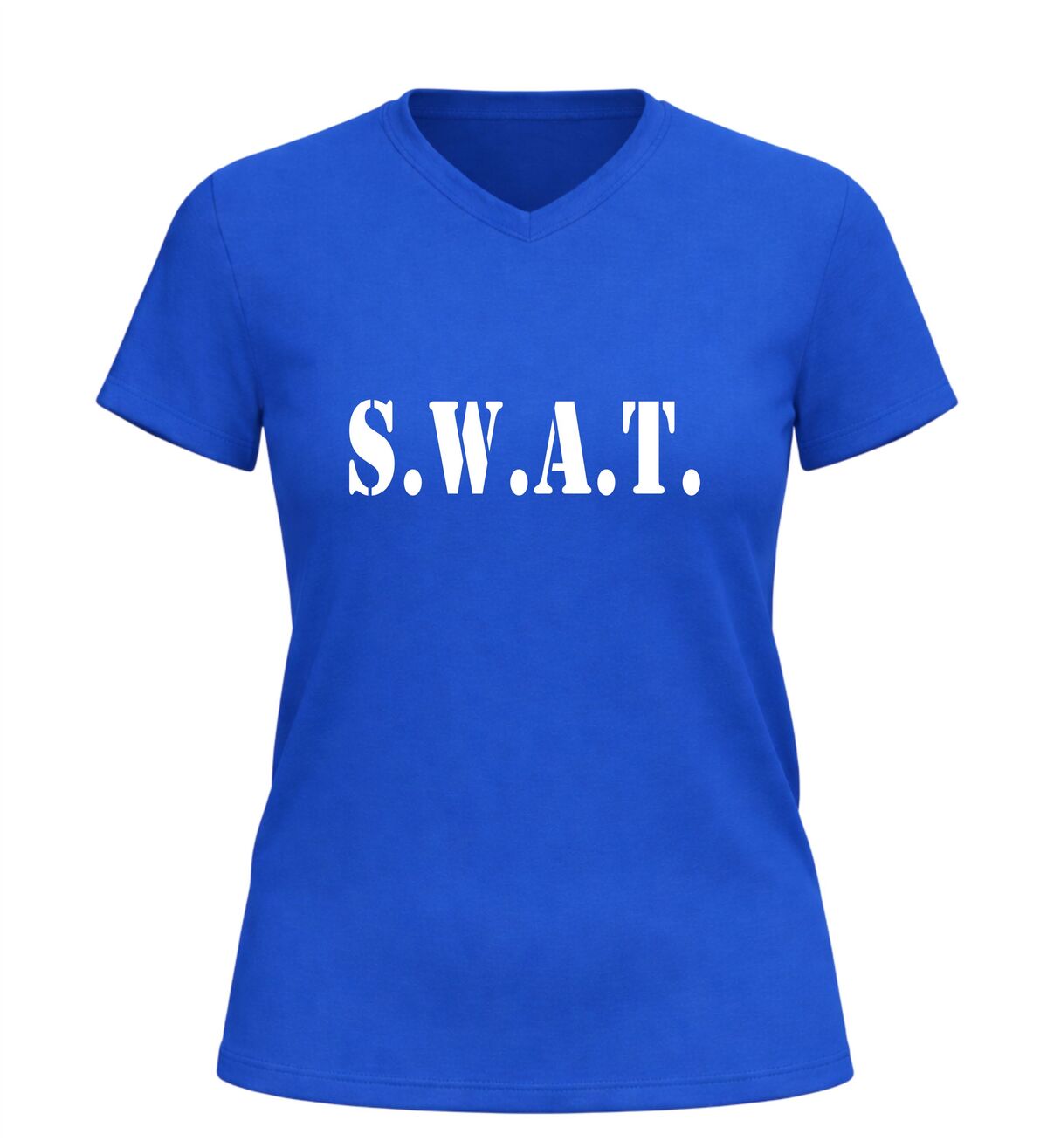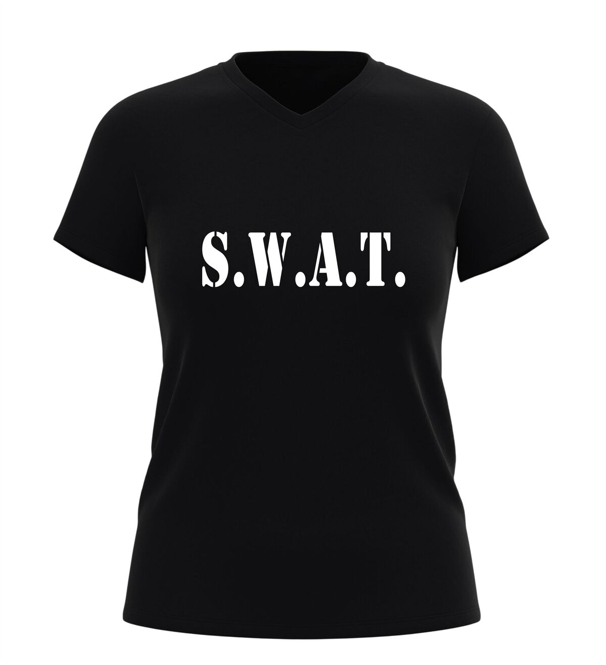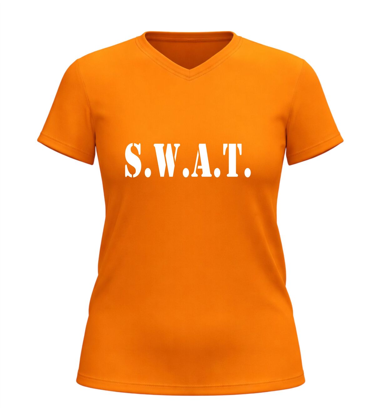 Dit S.W.A.T. V-hals shirt voor dames en heren is dé perfecte keuze voor carnaval, feestjes en party’s waar je wilt opvallen met een stoere en speelse uitstraling. Het unisex T-shirt heeft een moderne V-hals en draagt comfortabel, zelfs tijdens lange carnavalsavonden, festivals of dansfeesten. De opvallende S.W.A.T.-opdruk zorgt direct voor een herkenbare en krachtige look, waardoor het shirt ideaal is als feestoutfit, carnavalskleding of thema-kleding voor groepsfeestjes. Dankzij het luchtige en zachte materiaal blijft het shirt prettig zitten tijdens het feesten, terwijl de pasvorm geschikt is voor zowel mannen als vrouwen. Dit V-hals S.W.A.T. shirt is perfect te combineren met accessoires, petten of andere verkleeditems en past moeiteloos bij een party-, festival- of carnavalsstijl. Of je nu carnaval viert, een themafeest bezoekt of een vrijgezellenfeest hebt, met dit S.W.A.T. T-shirt kies je voor comfort, uitstraling en feestelijke impact in één.