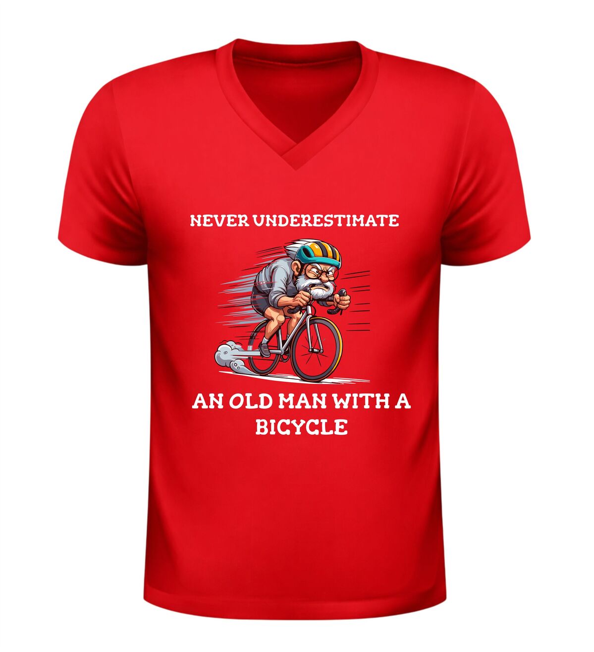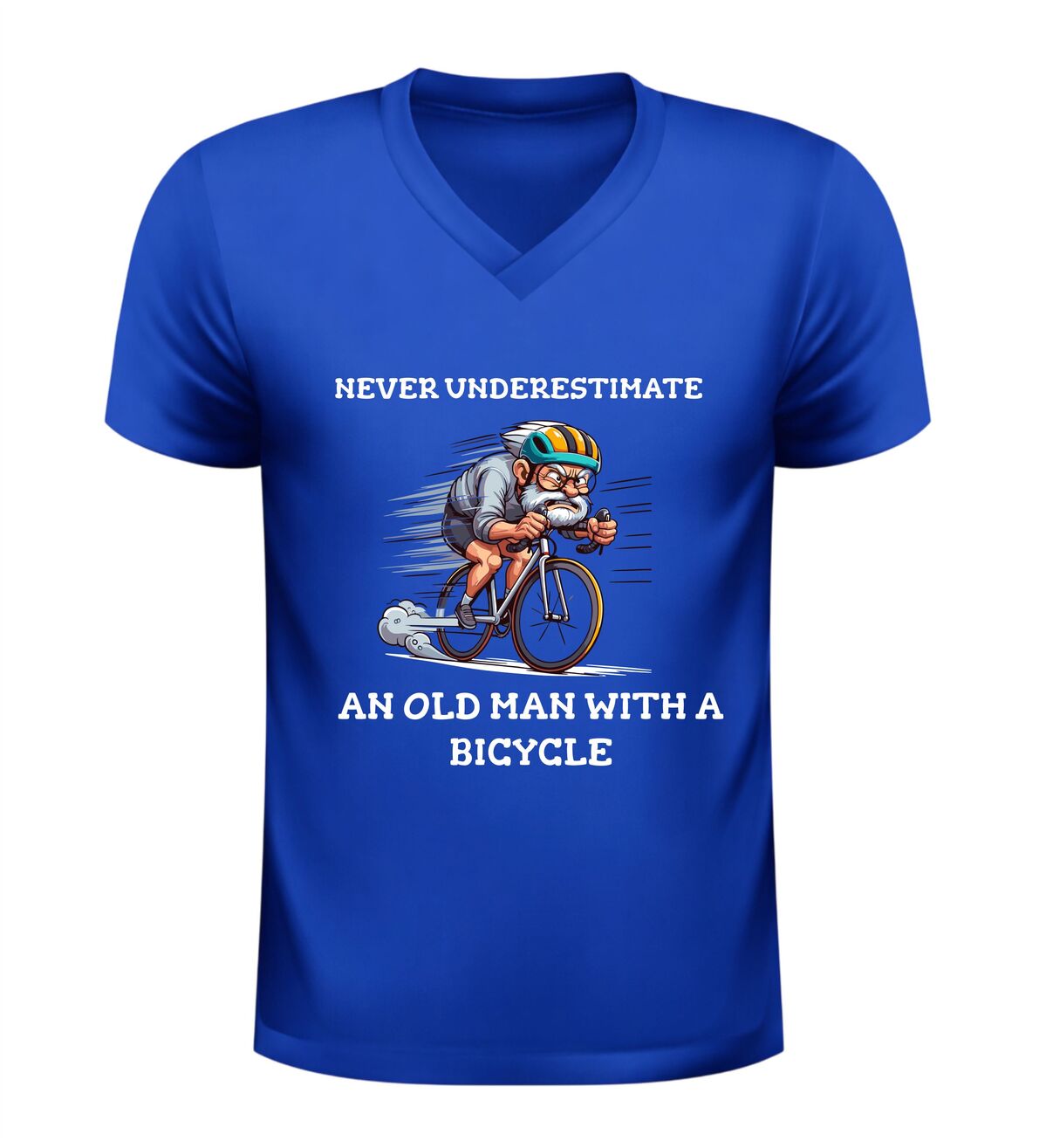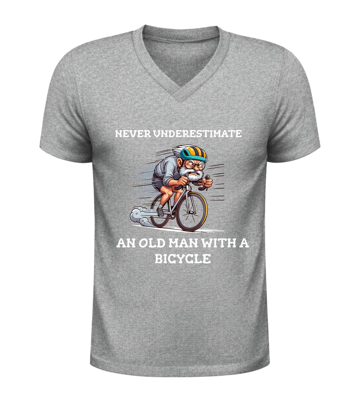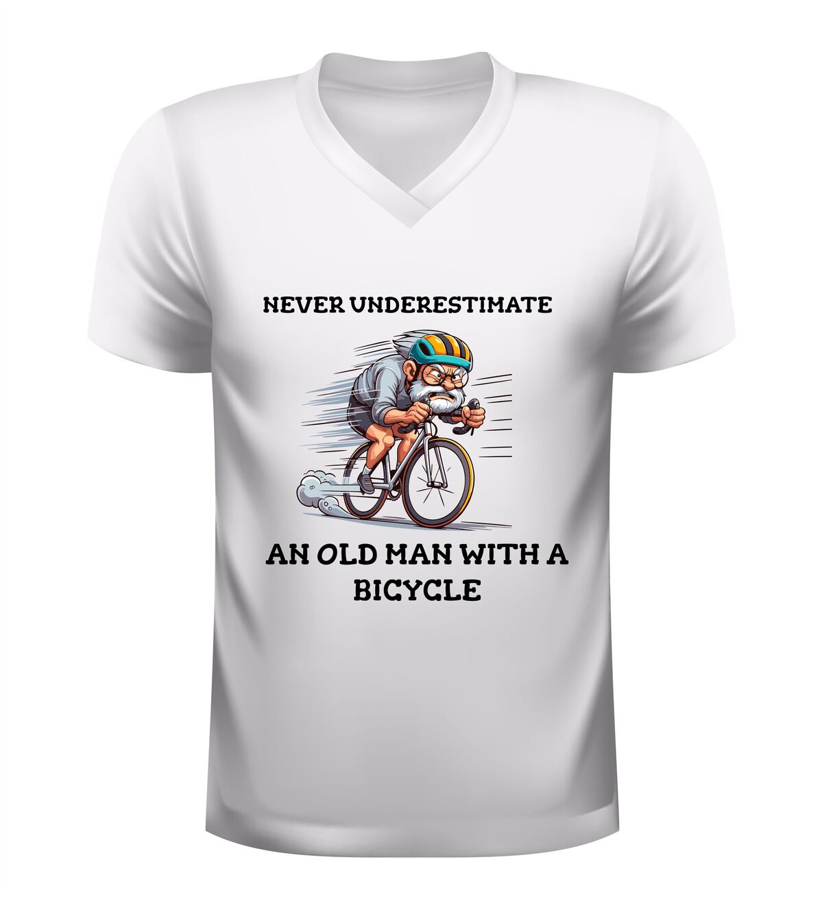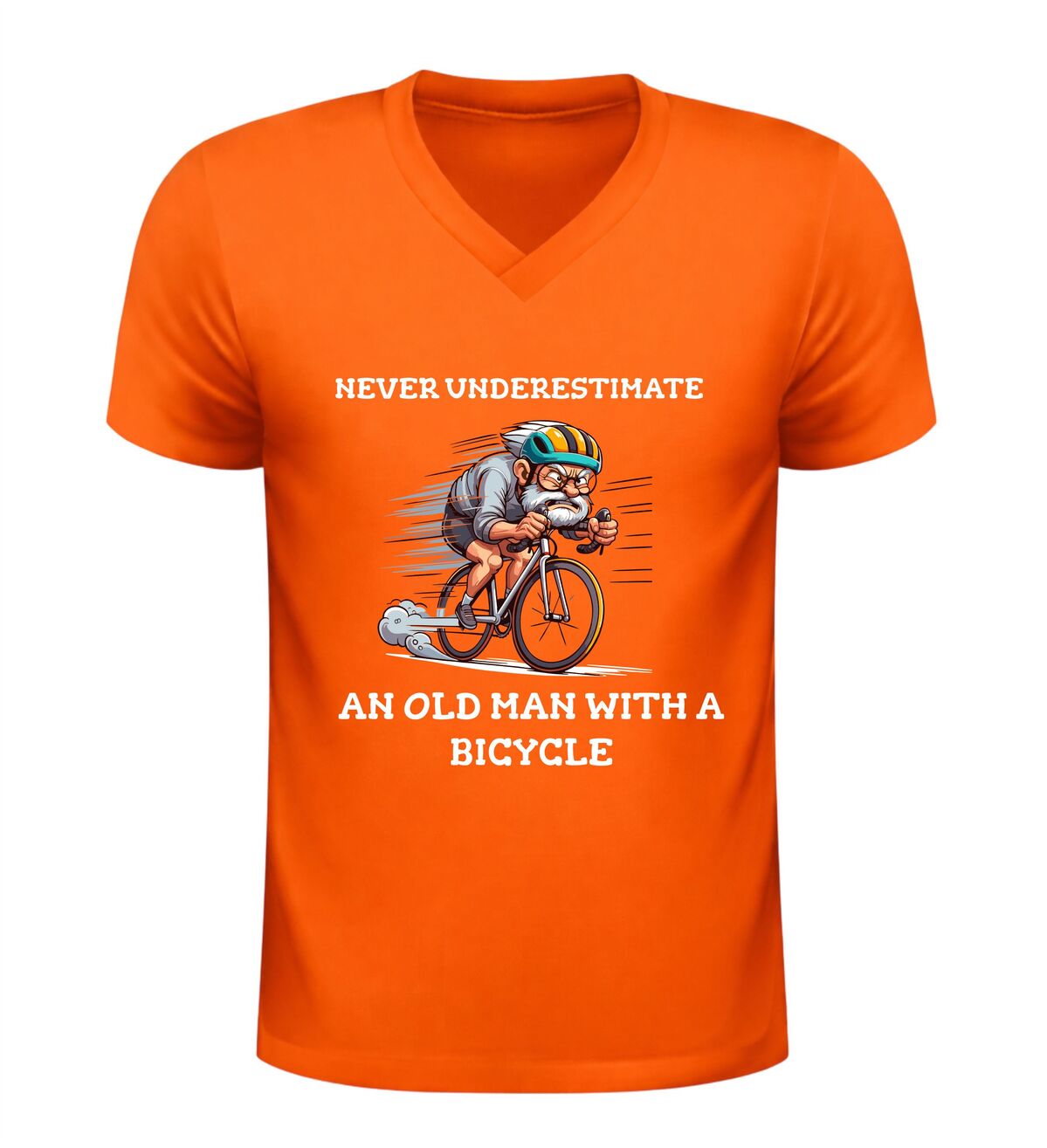 Dit V-hals shirt met de tekst never underestimate an old man with a bicycle en de afbeelding van een wielrenner is gemaakt voor iedereen die bewijst dat leeftijd niets zegt op de fiets. De humoristische tekst sluit perfect aan bij de mentaliteit van fanatieke wielrenners die al jaren in het zadel zitten en nog altijd met plezier en kracht hun rondjes rijden. Dankzij de comfortabele V-hals en fijne pasvorm is dit shirt ideaal om te dragen na het fietsen, op het terras na de training of gewoon in het dagelijks leven. Dit shirt is een leuk cadeau voor wielerliefhebbers, sportieve vaders, opa’s of ervaren renners die trots zijn op hun passie voor wielrennen. Perfect voor wie zoekt naar een origineel wielren shirt met tekst, een grappig fiets T-shirt, of een sportief cadeau met een knipoog voor echte liefhebbers van de koers.