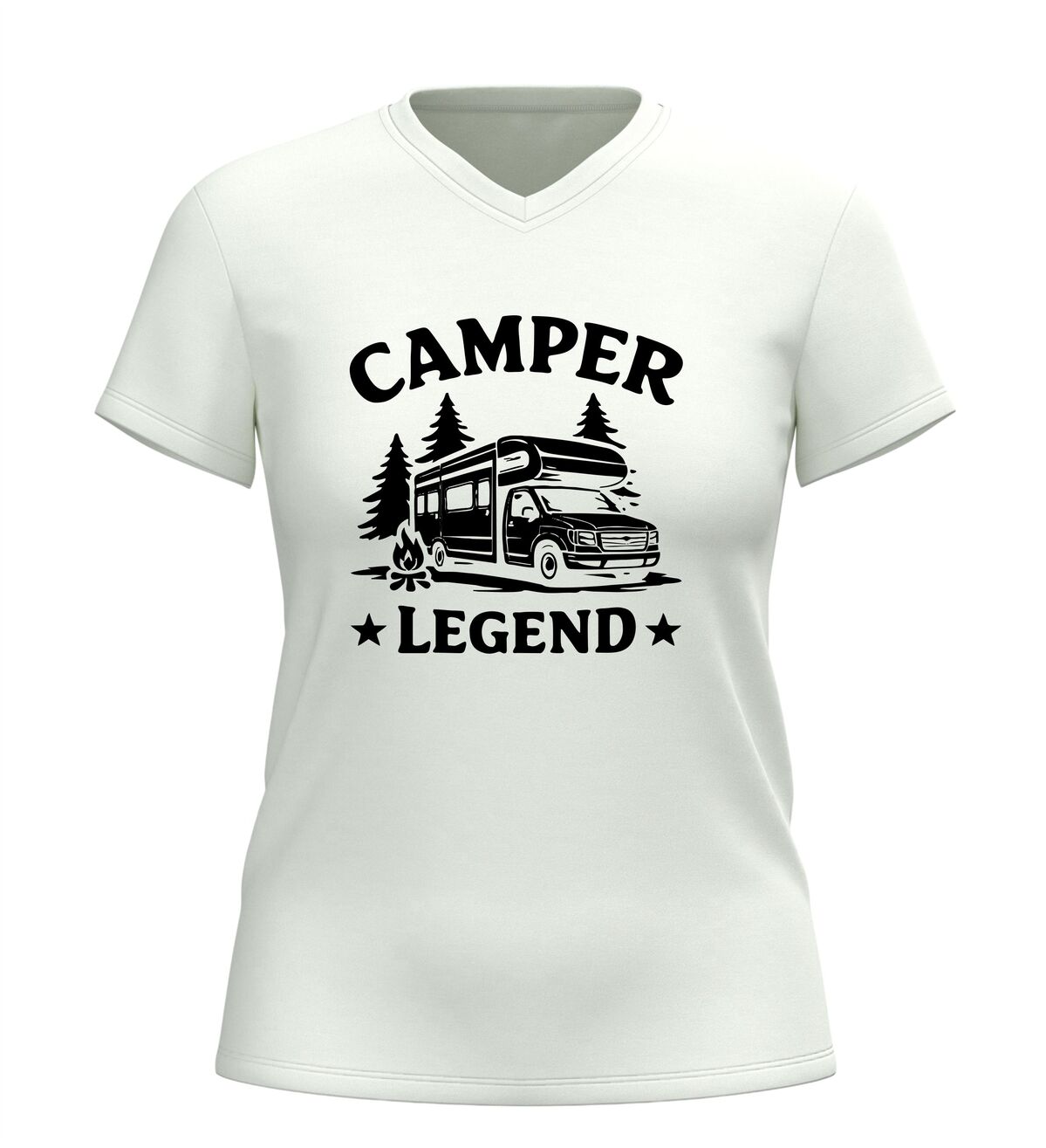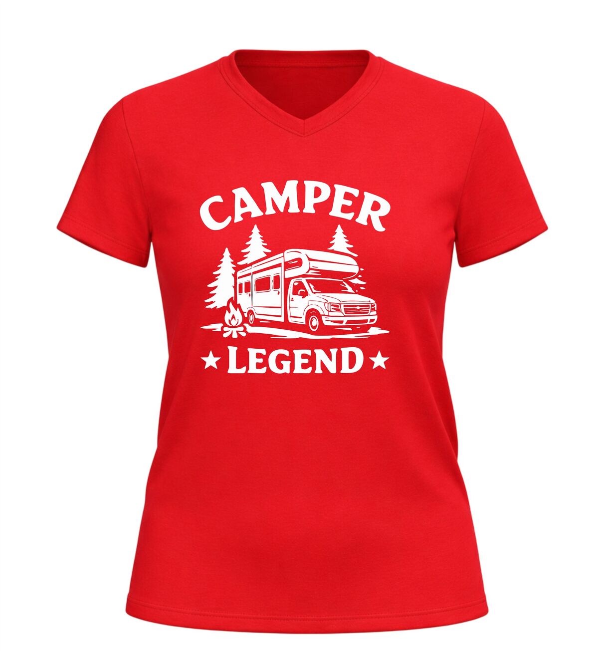 Heb je een camper? Ga dan in stijl naar de camping met dit V-hals camper legend shirt! Ook leuk om kado te geven!