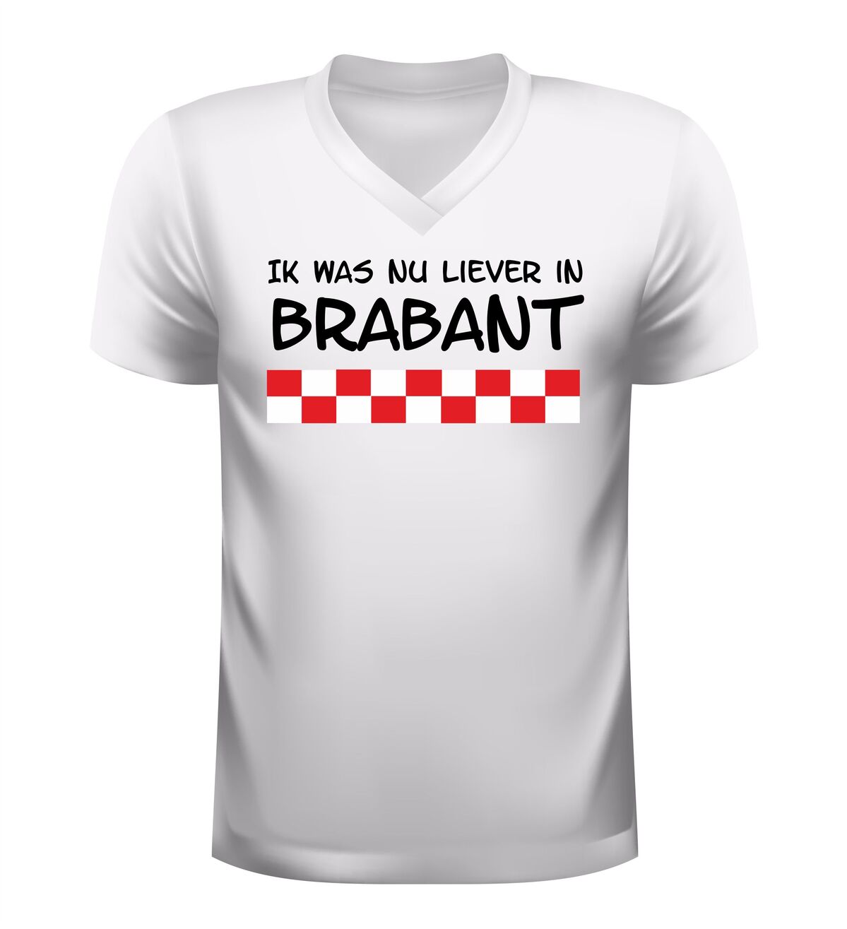 V-hals shirtje Ik was nu liever in Brabant! Te gek om te dragen als echte Brabander die niet thuis is in zijn Brabant.