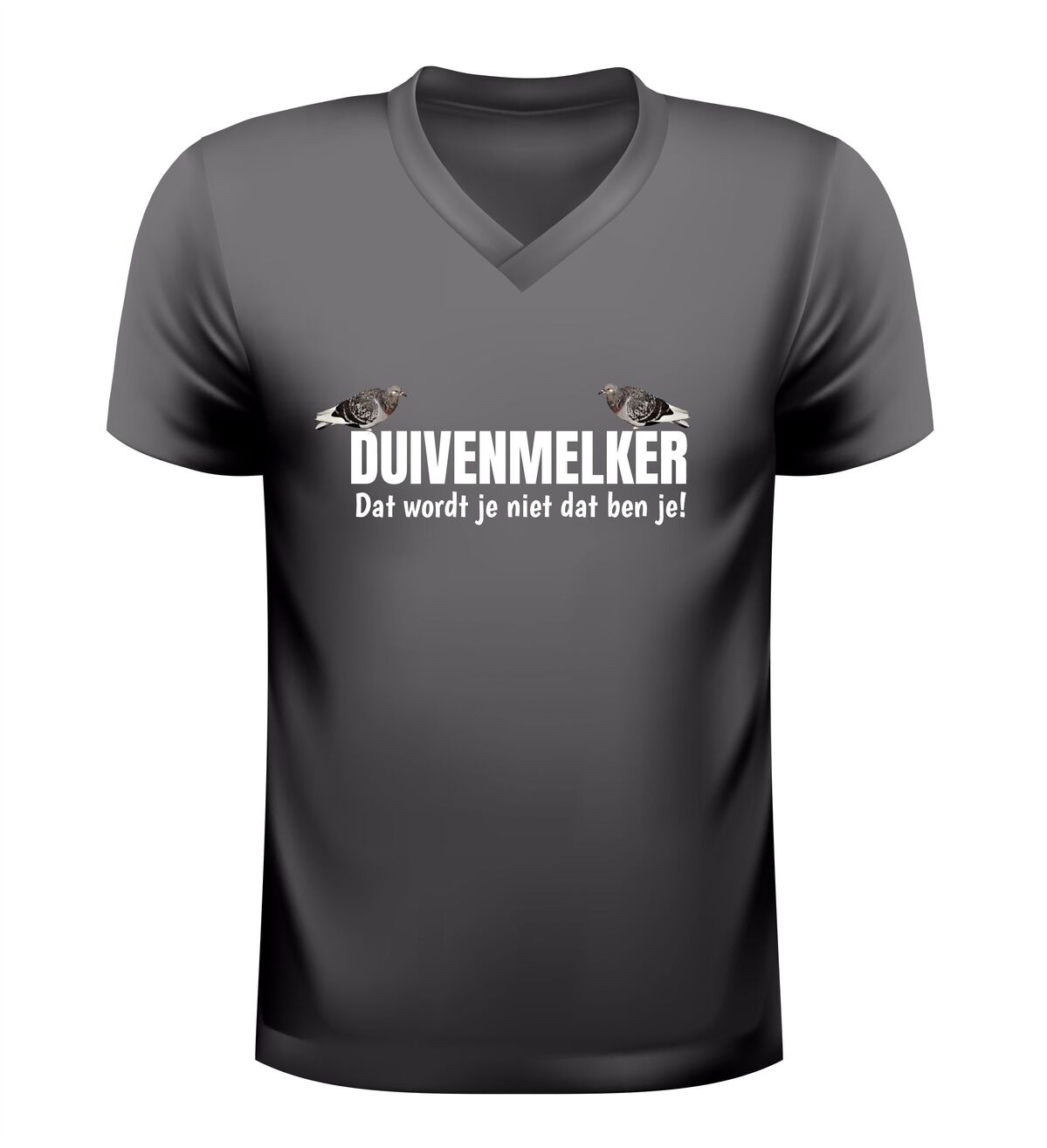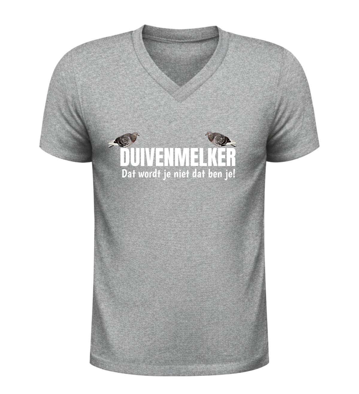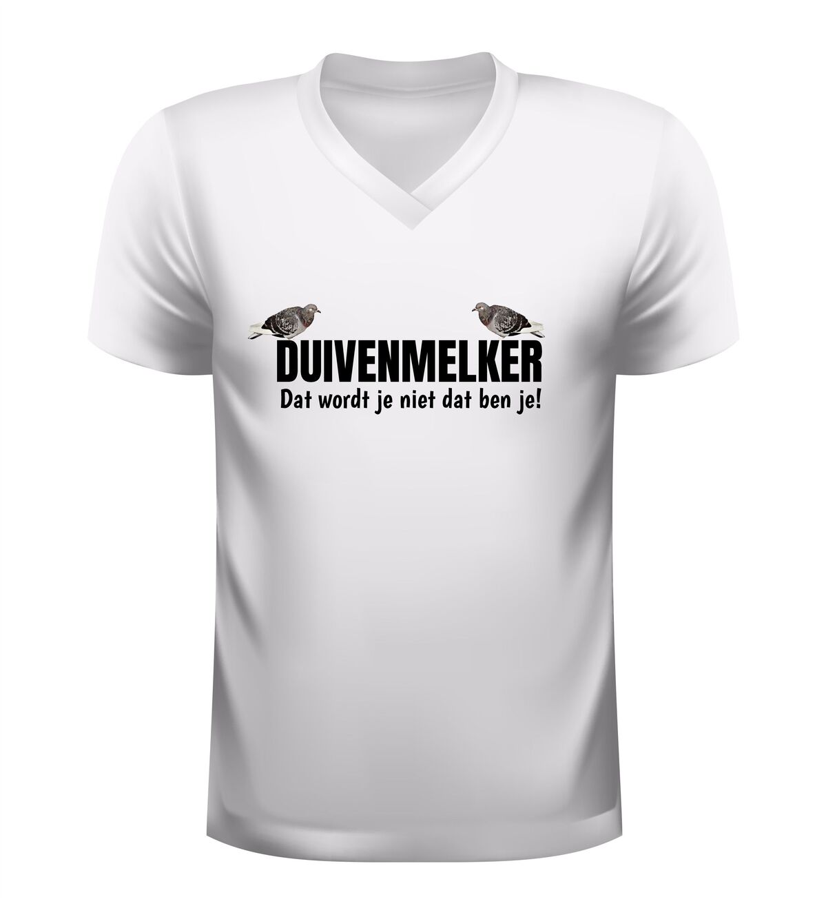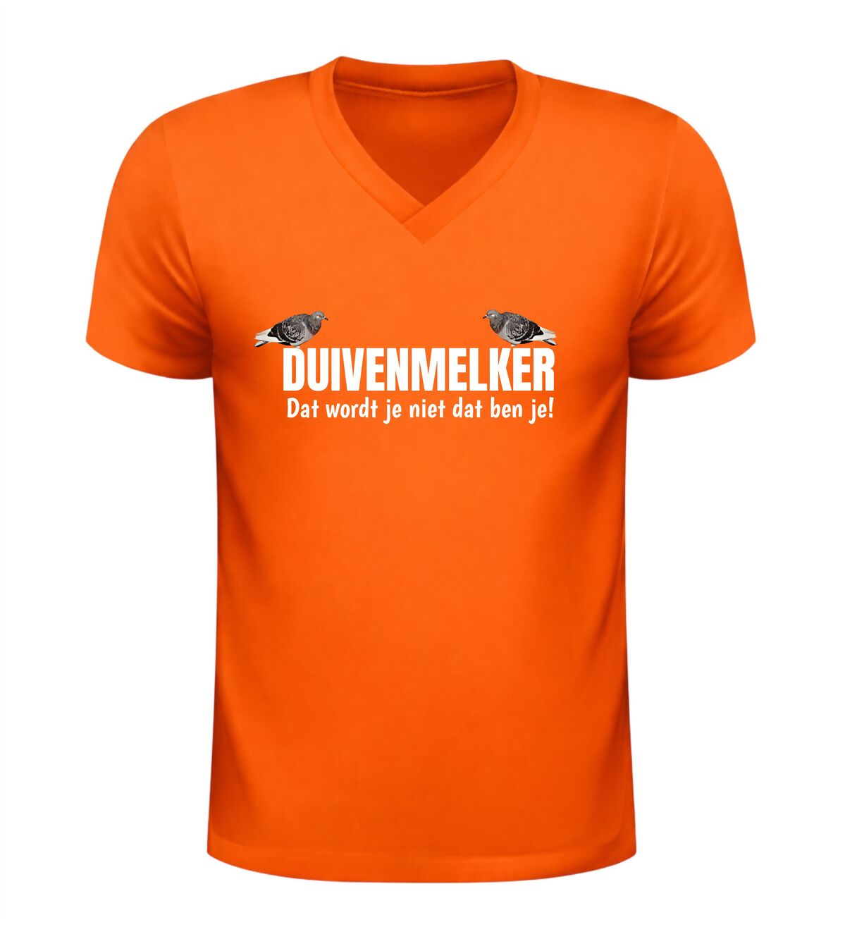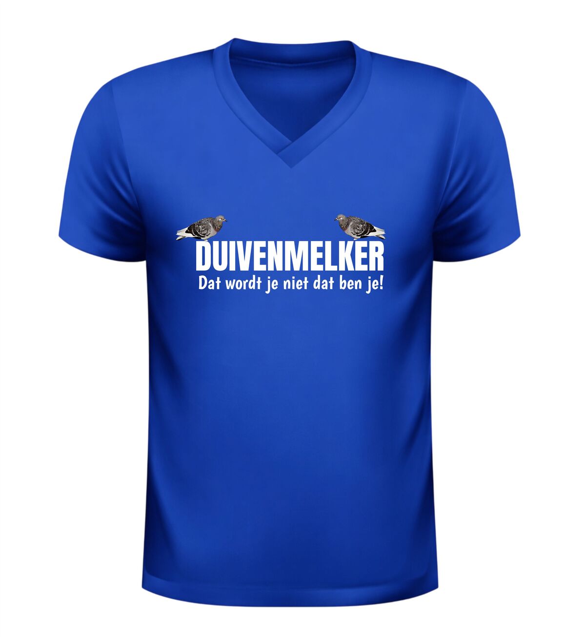 Dit V-hals T-shirt met de tekst duivenmelker, dat word je niet, dat ben je is gemaakt voor mensen bij wie het duivenmelken in het hart zit. De krachtige tekst in combinatie met de afbeelding van duiven laat direct zien dat het hier niet om zomaar een hobby gaat, maar om een echte passie en levensstijl. Dit duivenmelker shirt is perfect om te dragen bij het duivenhok, op de vereniging, tijdens wedstrijden of gewoon in de vrije tijd. Dankzij de comfortabele V-hals en fijne pasvorm draagt dit duivenmelker V-hals shirt prettig, zowel tijdens het verzorgen van de duiven als daarbuiten. Het shirt is ook een origineel cadeau voor een trotse duivenmelker die zijn liefde voor de sport graag laat zien.