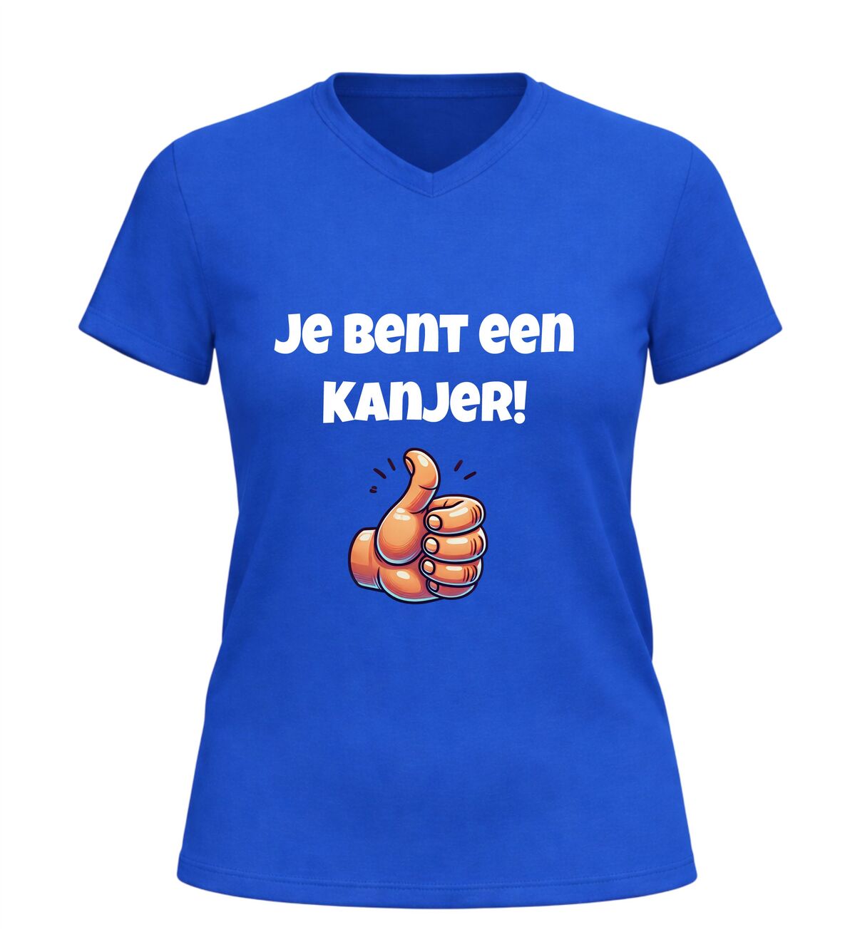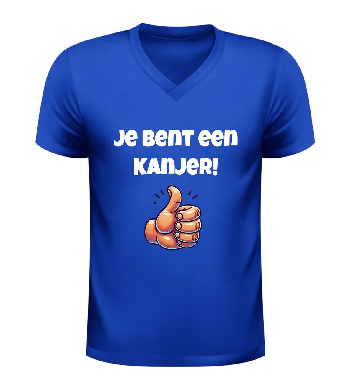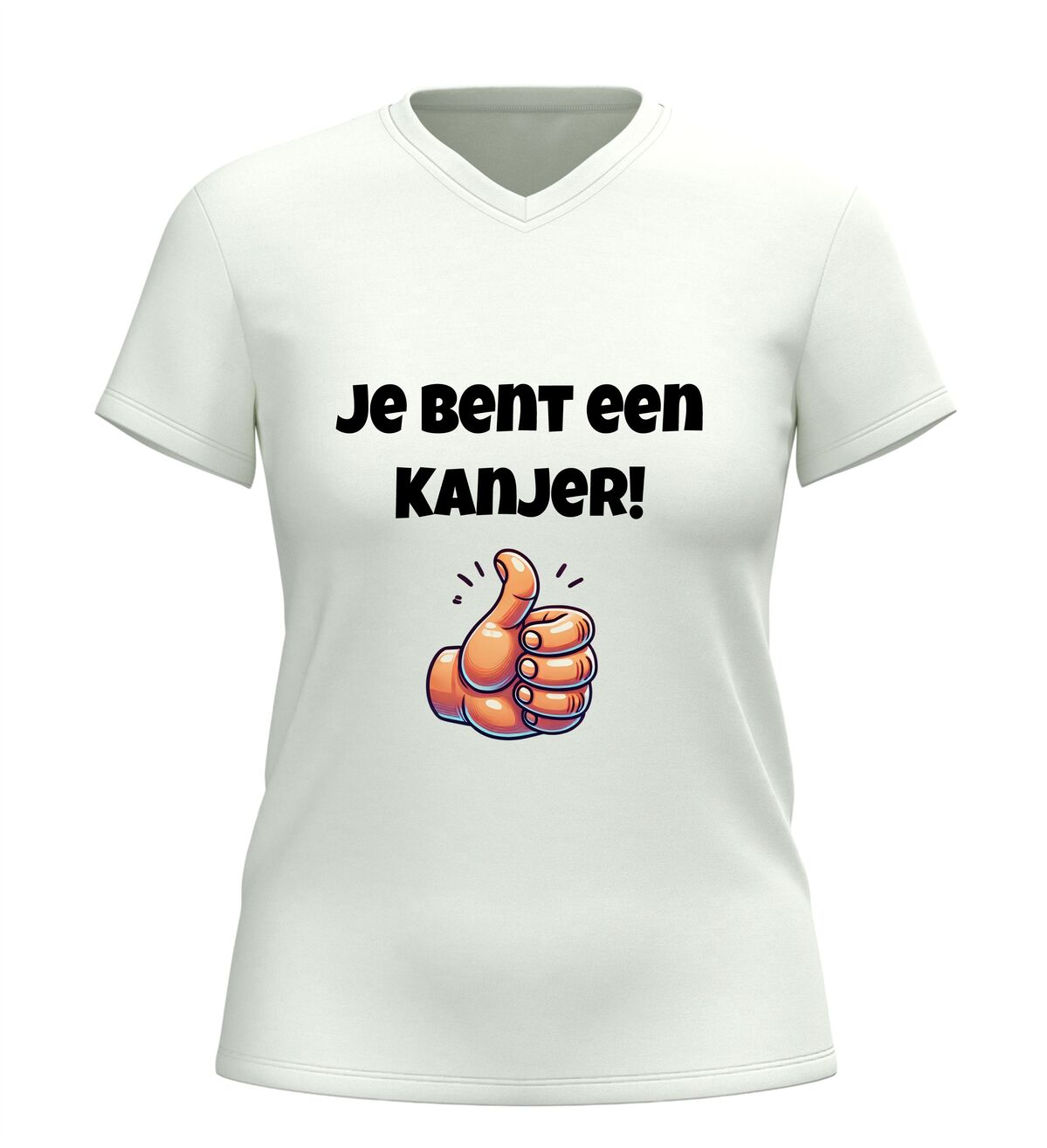 Het jij bent een kanjer v-hals t-shirt is ideaal als cadeau van waardering voor collega’s, vrienden, familie, leerkrachten of zorgmedewerkers. Steeds meer mensen zoeken naar een compliment shirt of motiverend T-shirt met een positieve boodschap, en dit ontwerp sluit daar perfect op aan. De duim omhoog afbeelding versterkt het compliment en maakt het shirt in één oogopslag begrijpelijk.