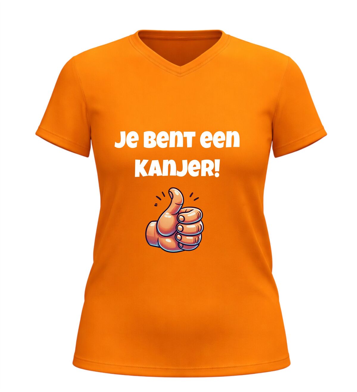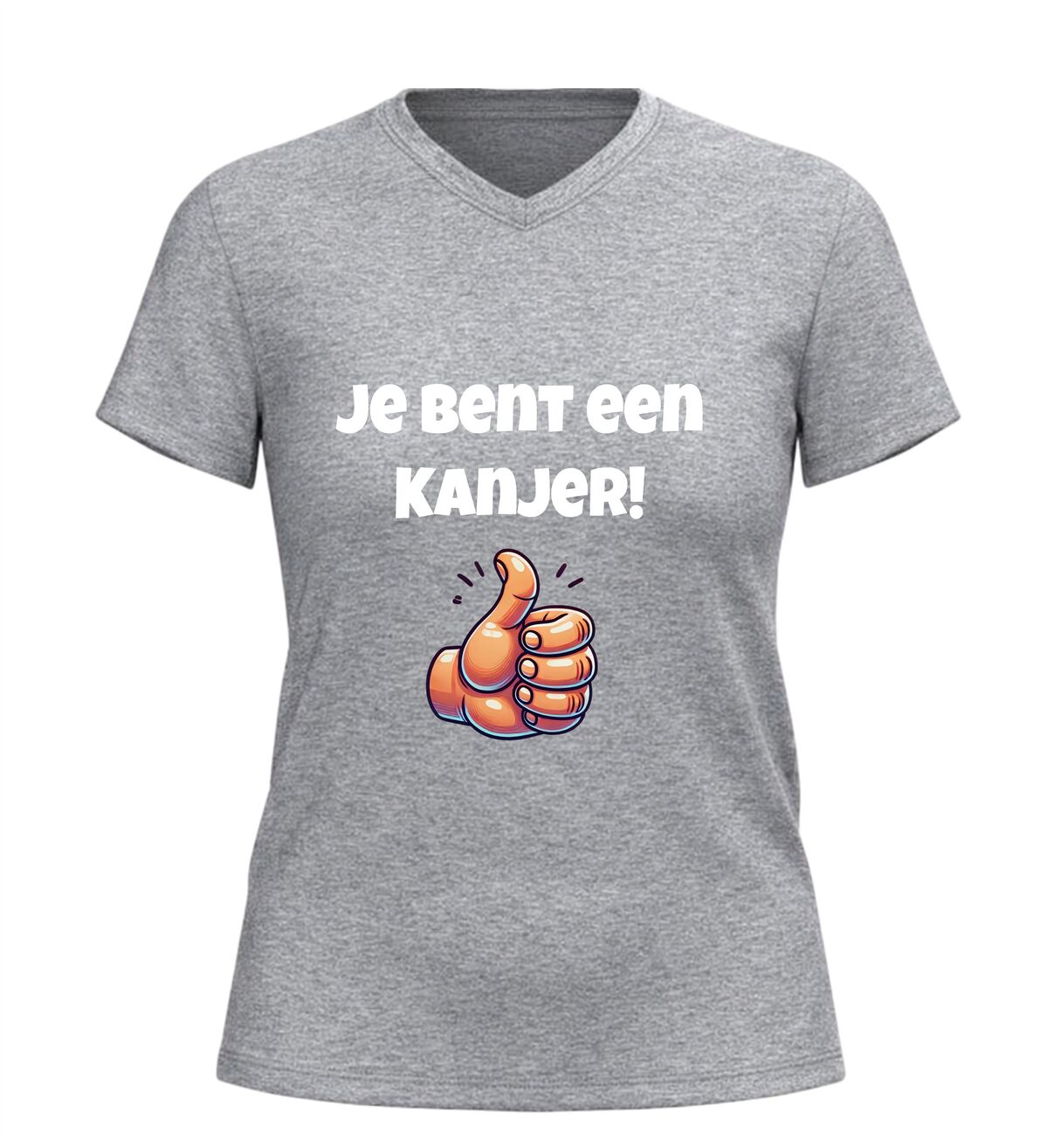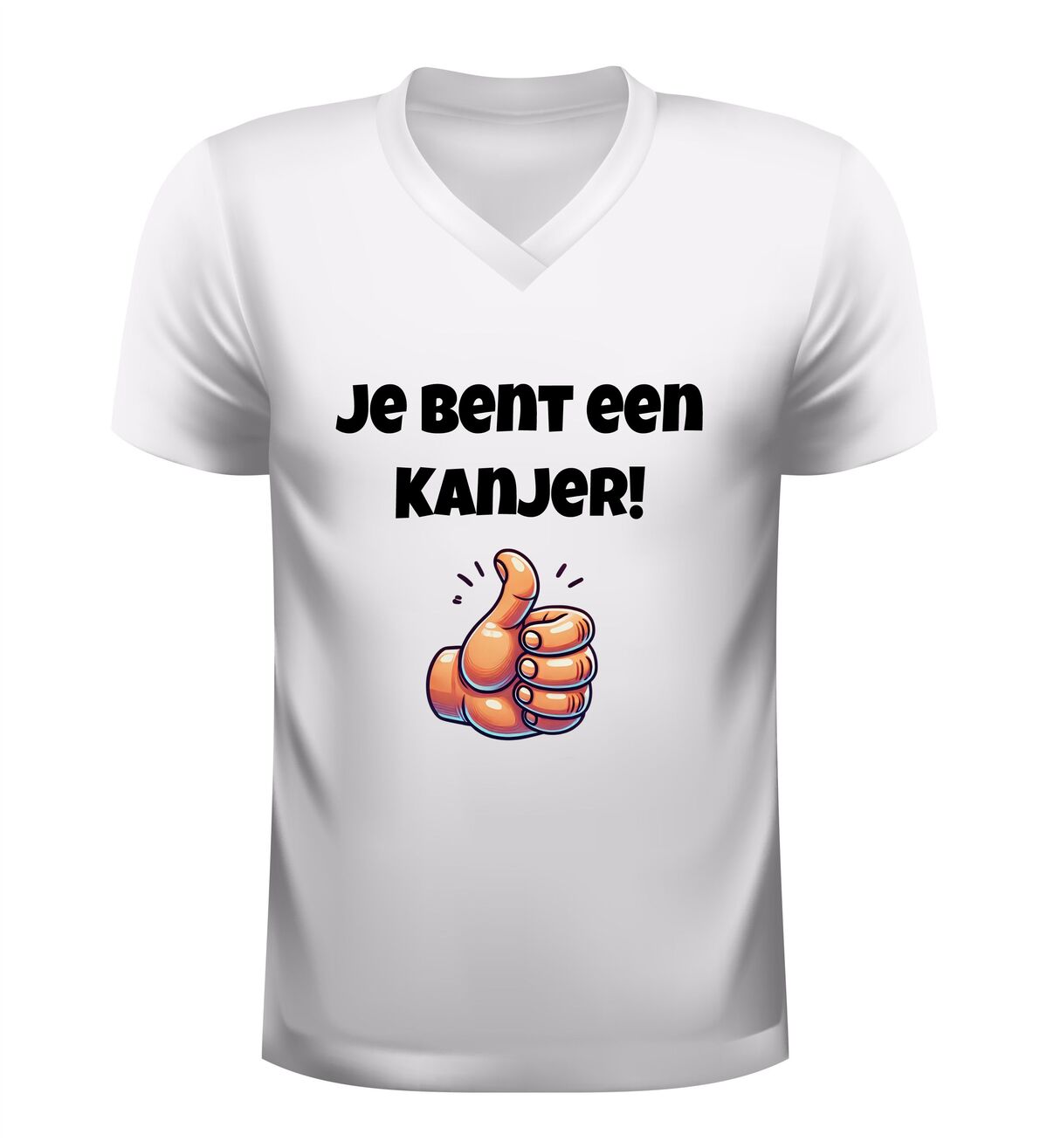 Het jij bent een kanjer v-hals t-shirt is ideaal als cadeau van waardering voor collega’s, vrienden, familie, leerkrachten of zorgmedewerkers. Steeds meer mensen zoeken naar een compliment shirt of motiverend T-shirt met een positieve boodschap, en dit ontwerp sluit daar perfect op aan. De duim omhoog afbeelding versterkt het compliment en maakt het shirt in één oogopslag begrijpelijk.
