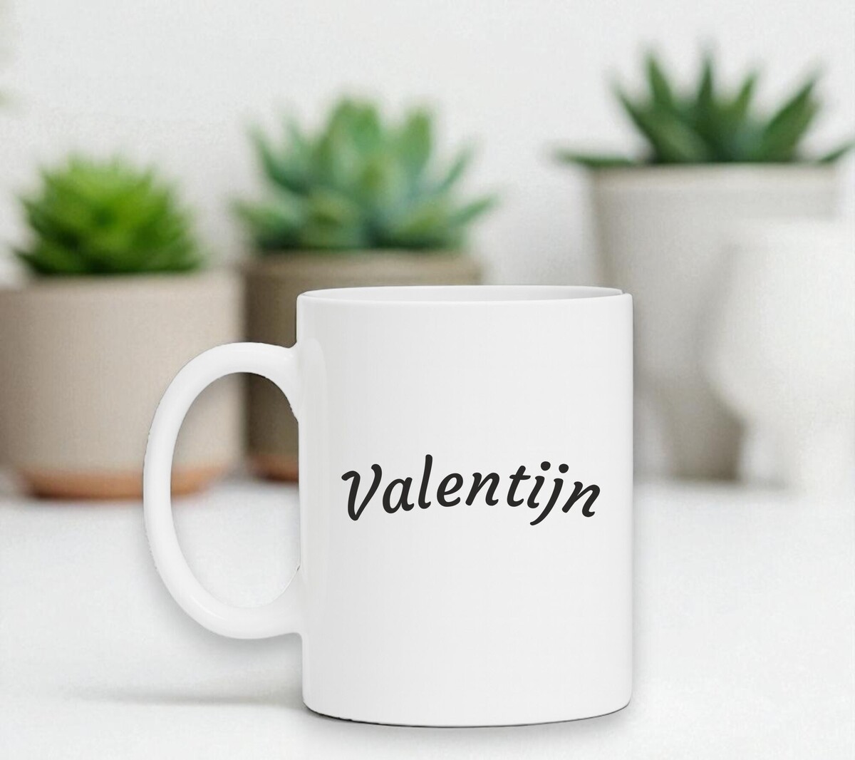 Witte Valentijn mok. Een mooi mok met de tekst Valentijn. De mok is vaatwasserbestendig, microgolfbestendig en heeft een hoogte van 96mm en een diameter van 80mm.