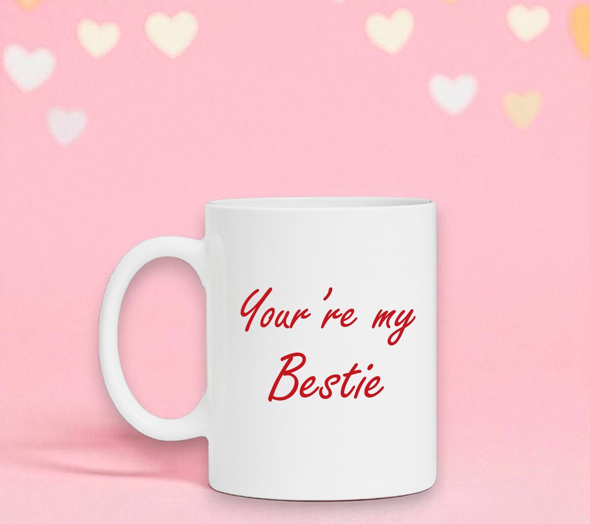 Valentijnscadeau witte mok you're my Bestie. De witte koffie of thee mok is vaatwasserbestendig en magnetronbestendig. De mok heeft een hoogte van 96mm en een diameter van 80mm.