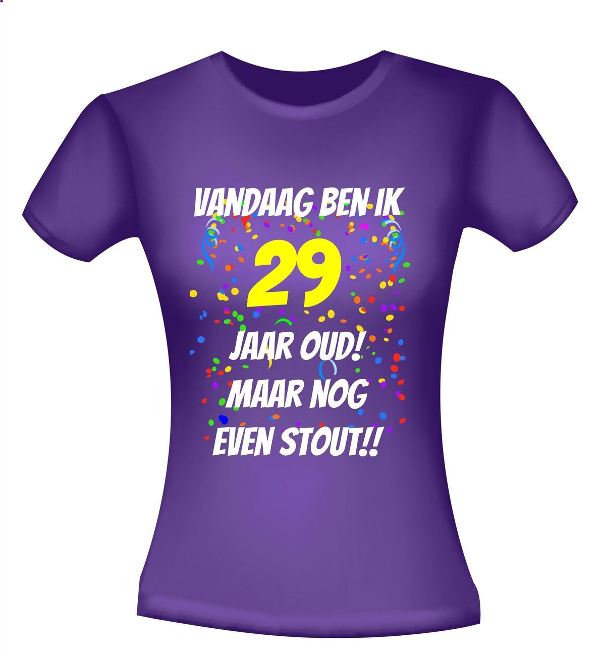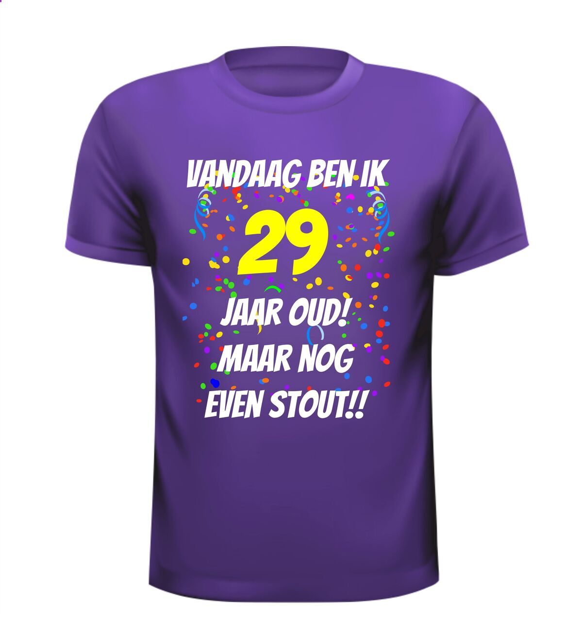 Dit orginele fun t-shirt is erg grappig om cadeau te doen voor een 29e verjaardag. Op dit leeftijd shirt staat de tekst: Vandaag ben ik 29 jaar oud en nog even stout. wanneer je andere verjaardag shirts zoekt, ben je ook bij ons in de goede feest en fun webwinkel beland.