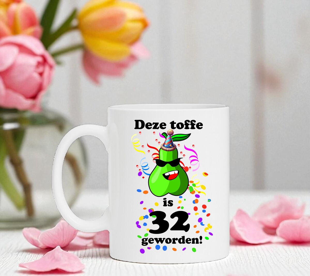 Deze mok is een erg orgineel en grappig kado om te geven en te krijgen tijdens een 32e verjaardag.